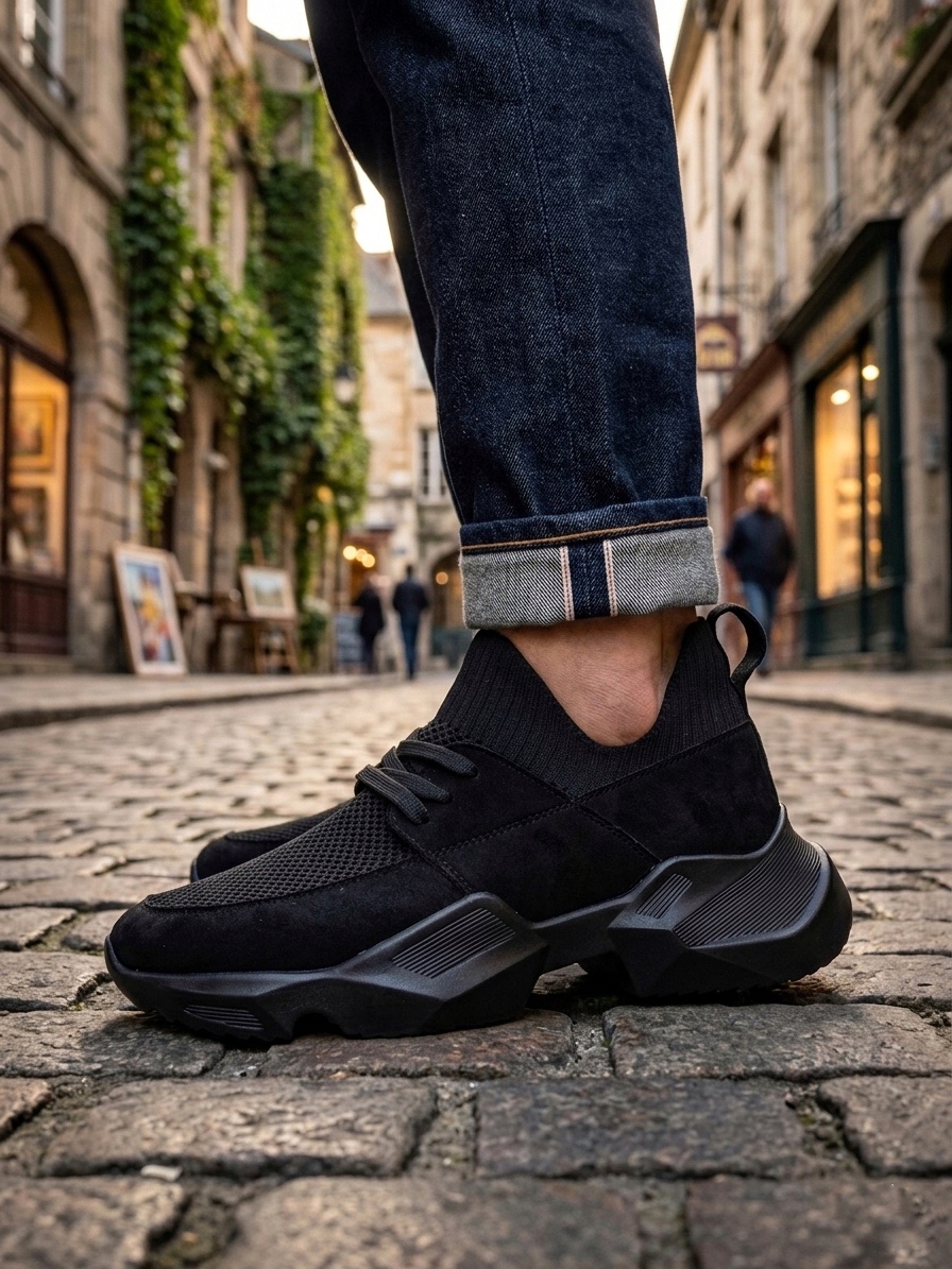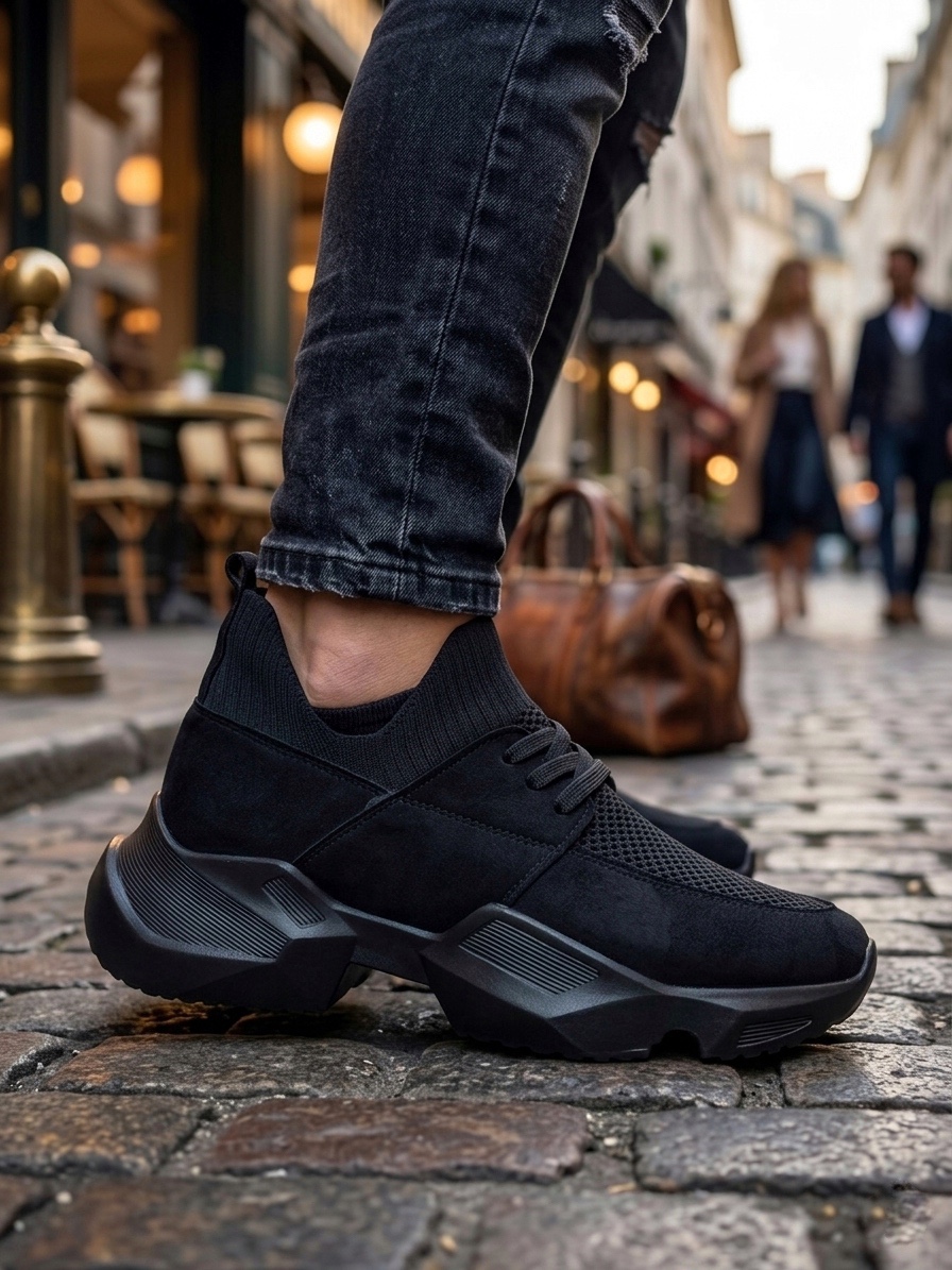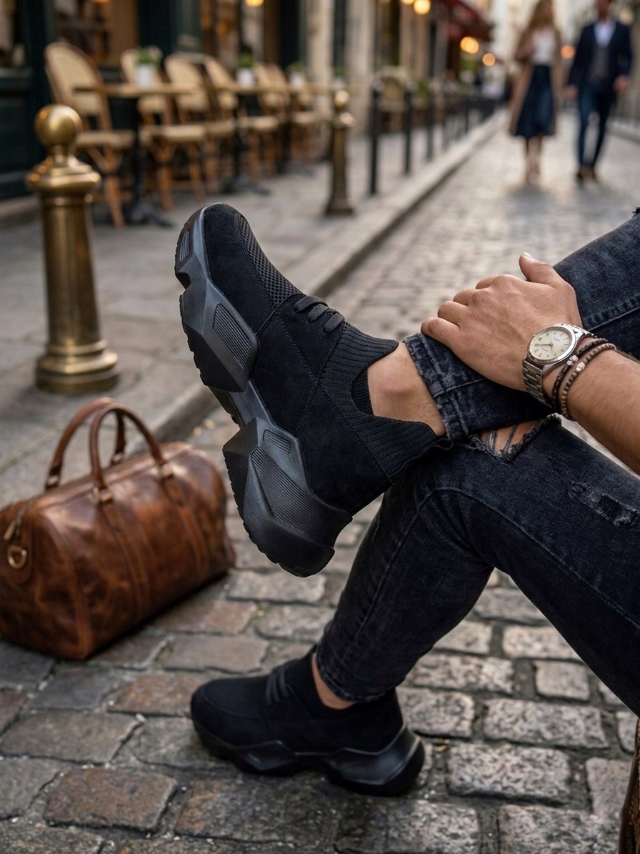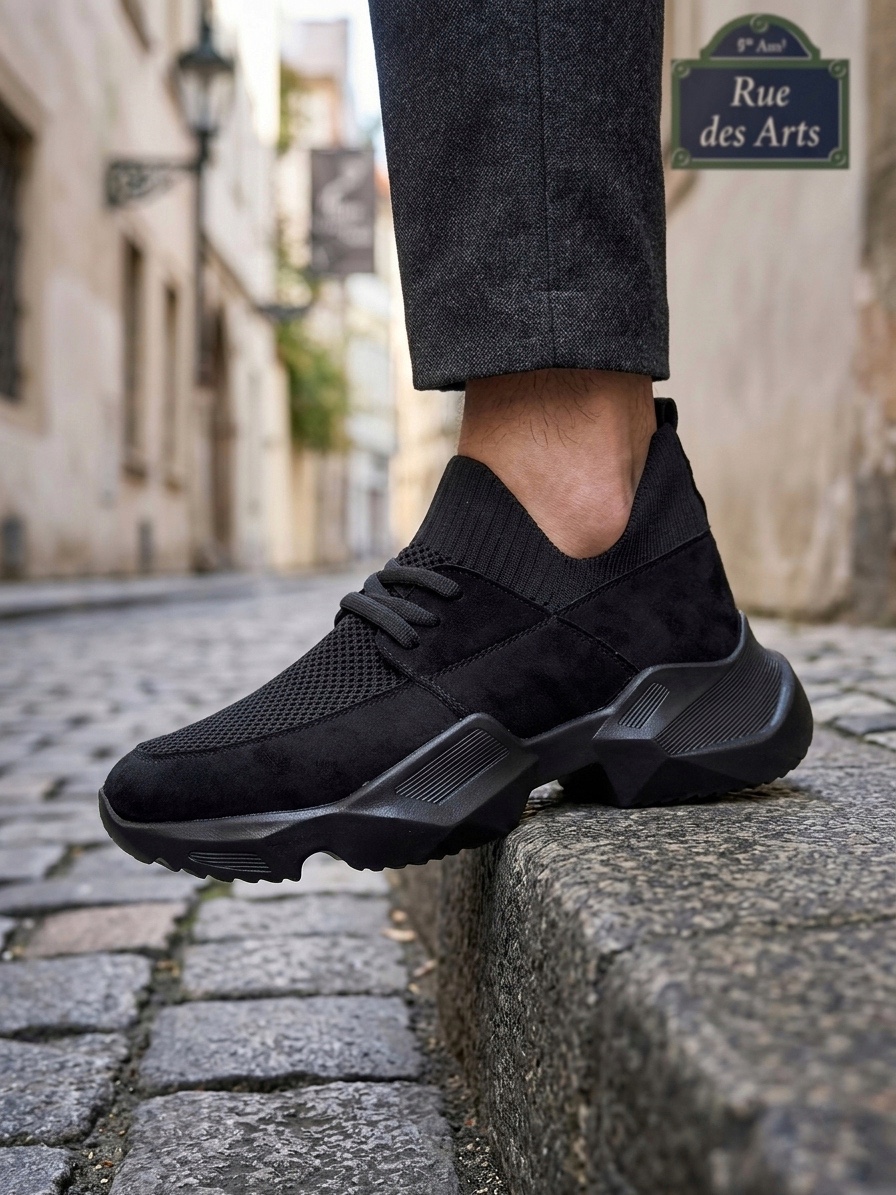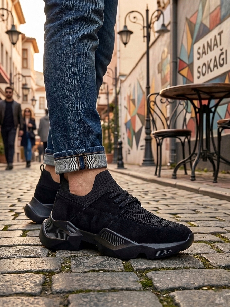 403 Yumuşak Triko Dokulu Yüksek Taban Siyah Spor Ayakkabı