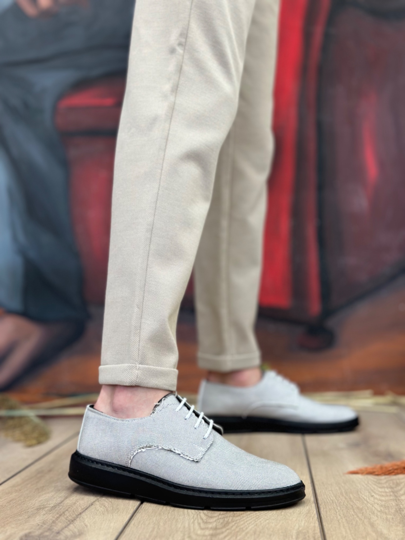 • AHN0003 Bağcıklı Klasik Spor Gri Renk Siyah Taban Keten Yüksek Taban Casual Erkek Ayakkabı