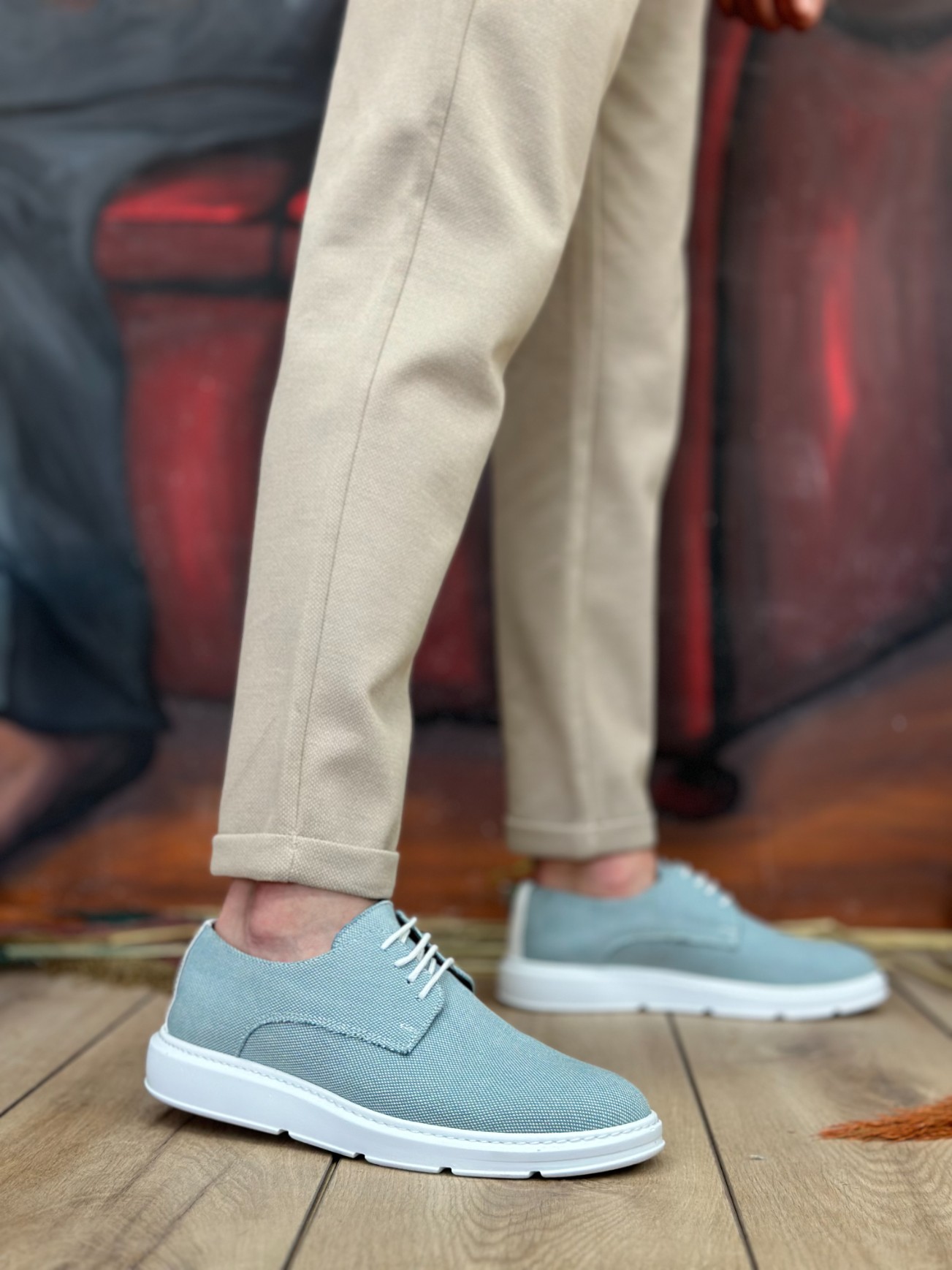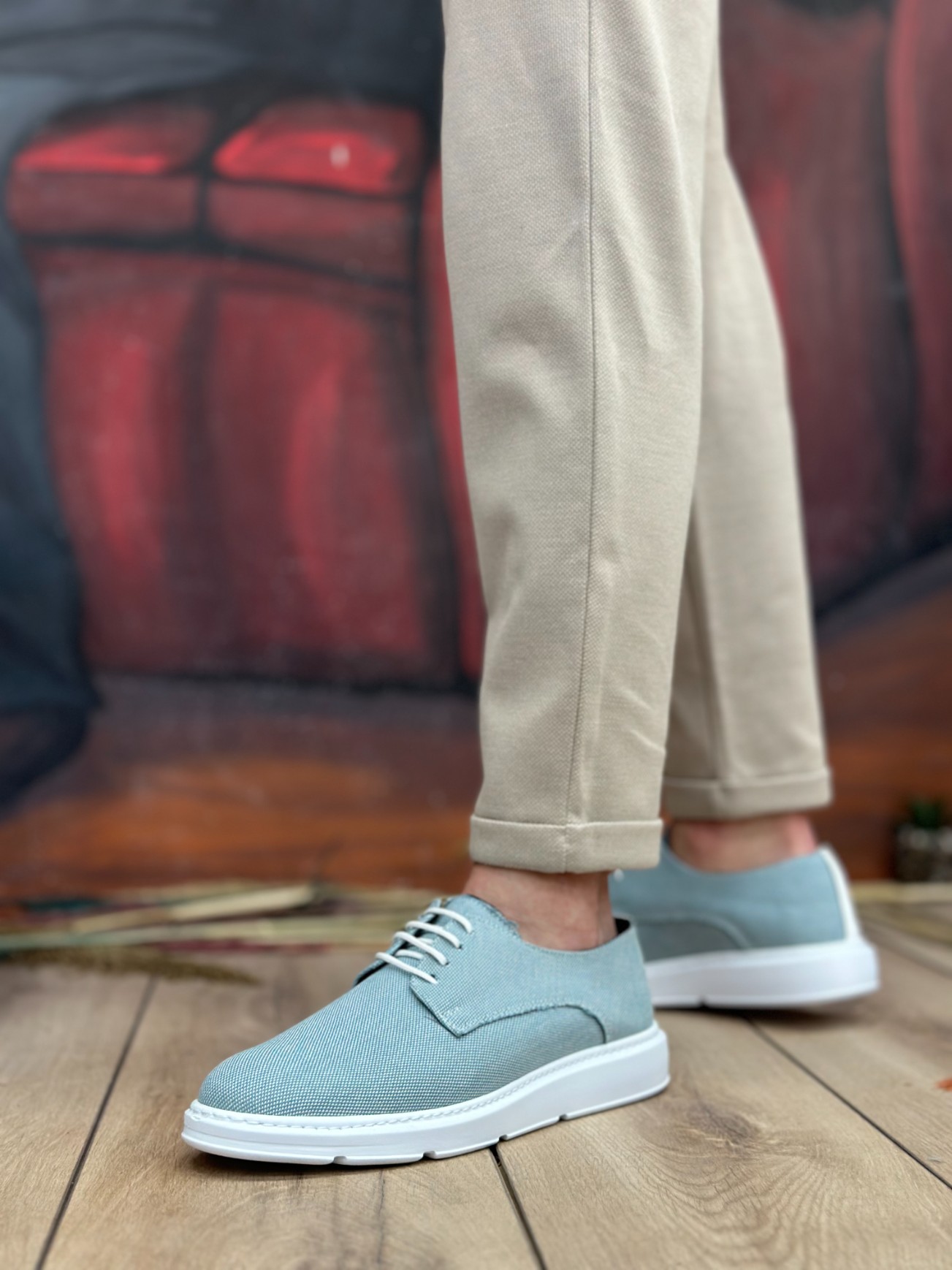 • AHN0003 Bağcıklı Klasik Spor Keten Turkuaz Yüksek Taban Casual Erkek Ayakkabı