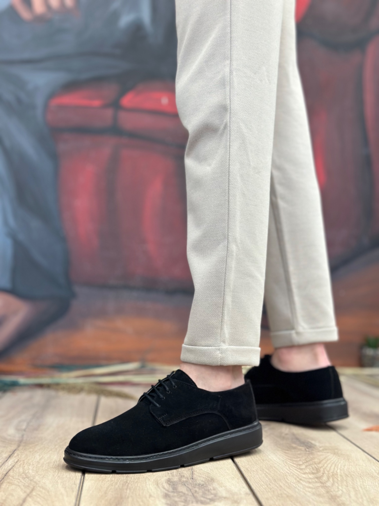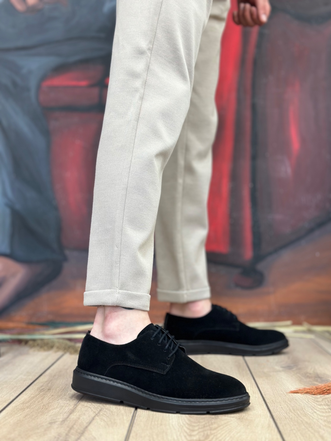 • AHN0003 Bağcıklı Süet Klasik Siyah Yüksek Taban Casual Erkek Ayakkabı
