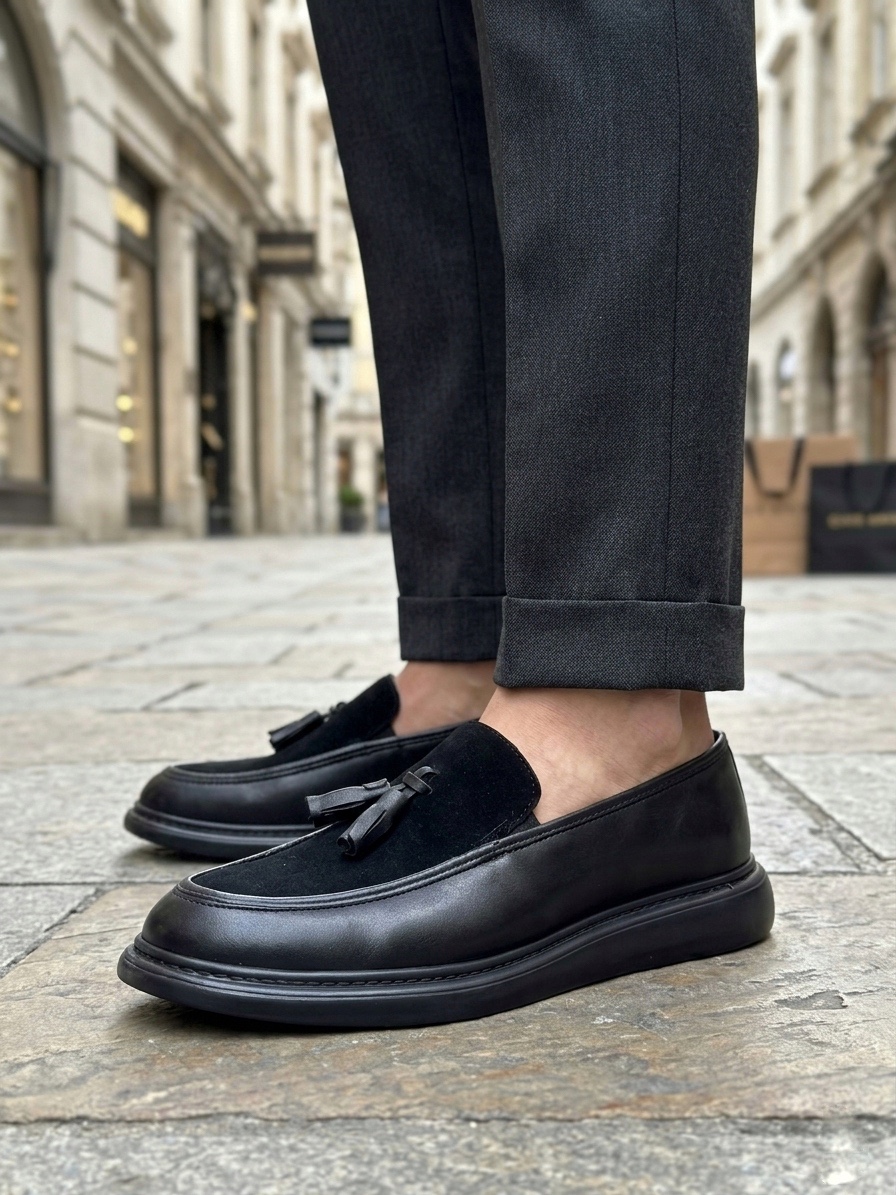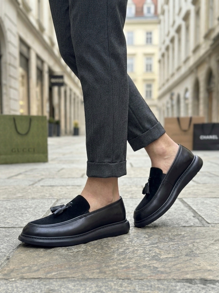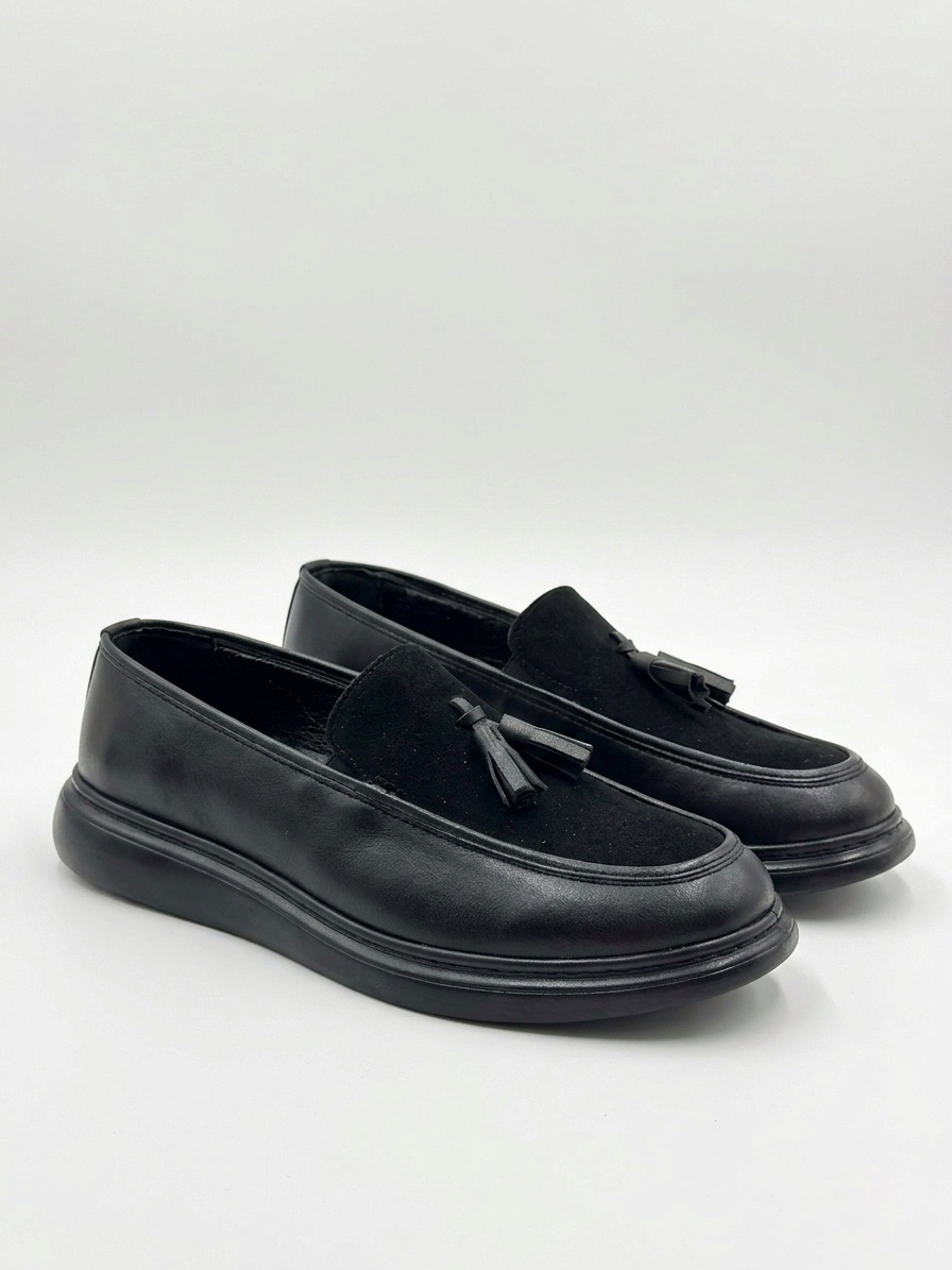 • AHN0005 Yeni Sezon Kalın Tabanlı Siyah Süet Makosen Ayakkabı