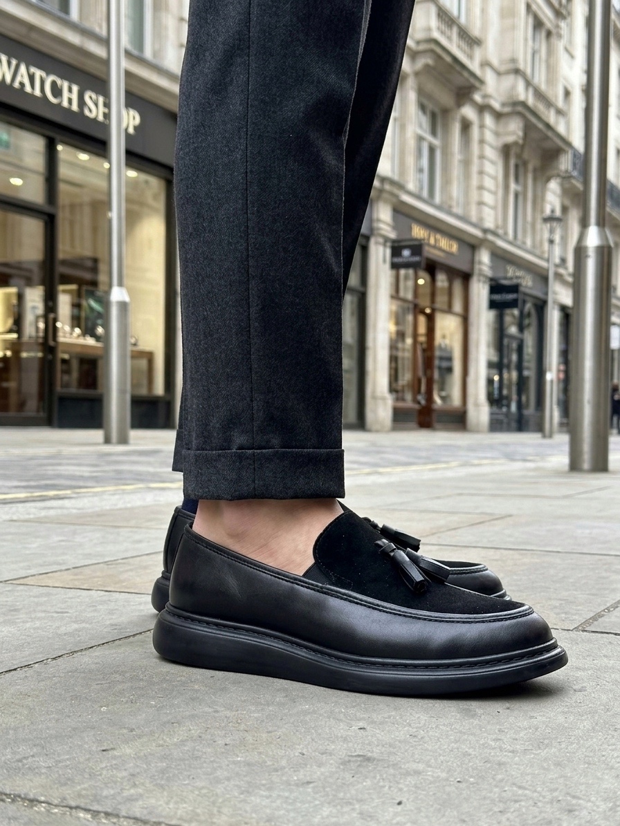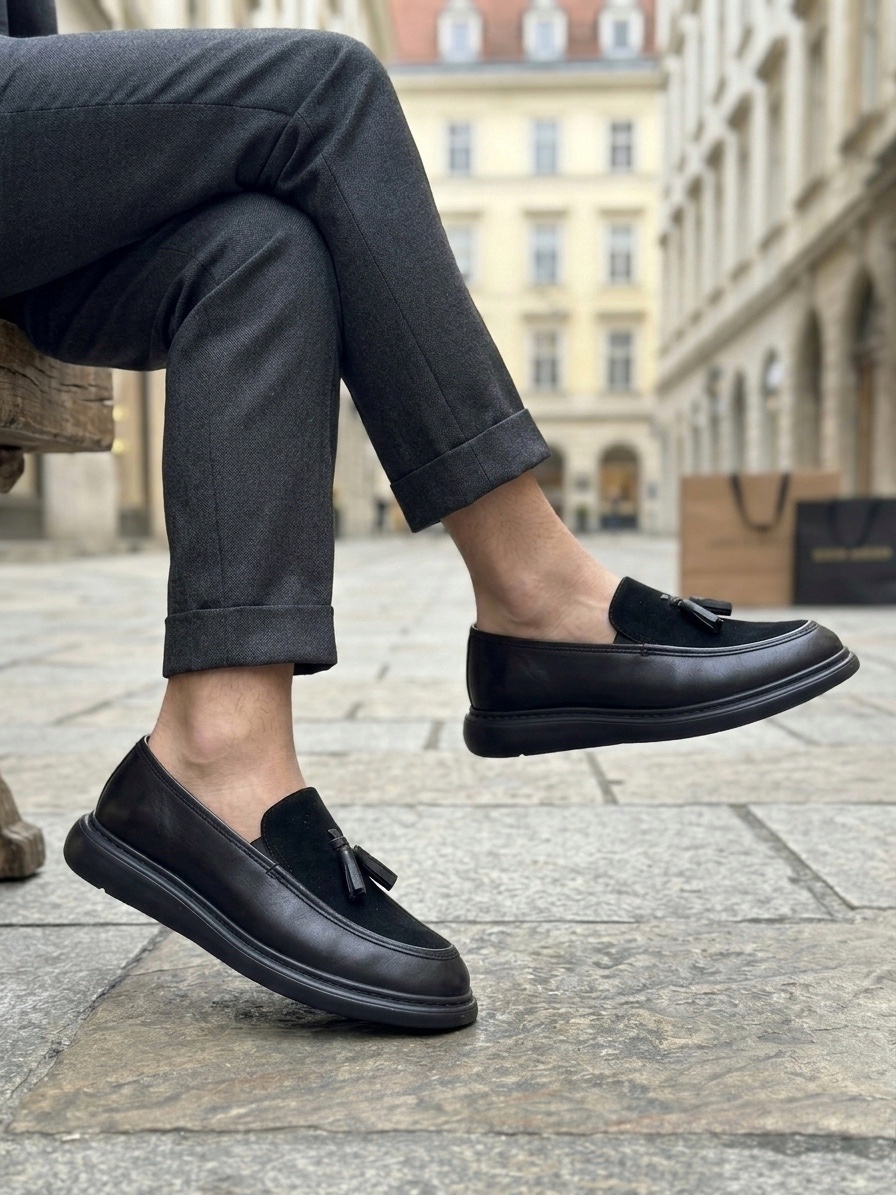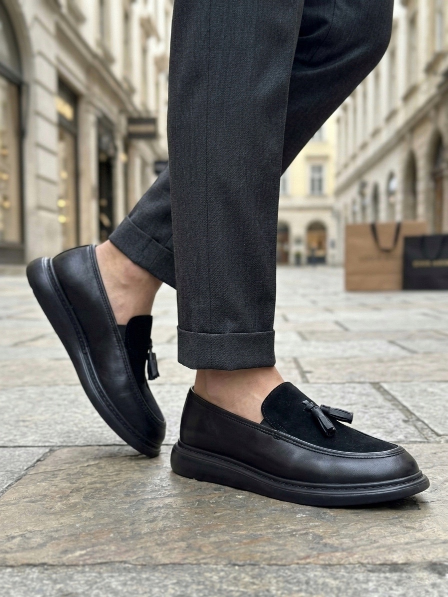 • AHN0005 Yeni Sezon Kalın Tabanlı Siyah Süet Makosen Ayakkabı