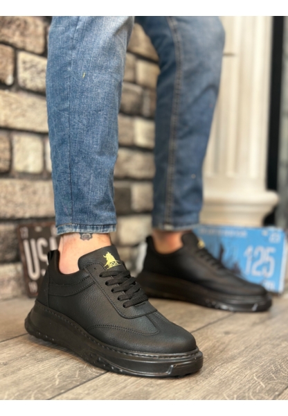 • AHN0150 Bağcıksız Erkek Yüksek Taban Cilt Siyah Beyaz Spor Bot