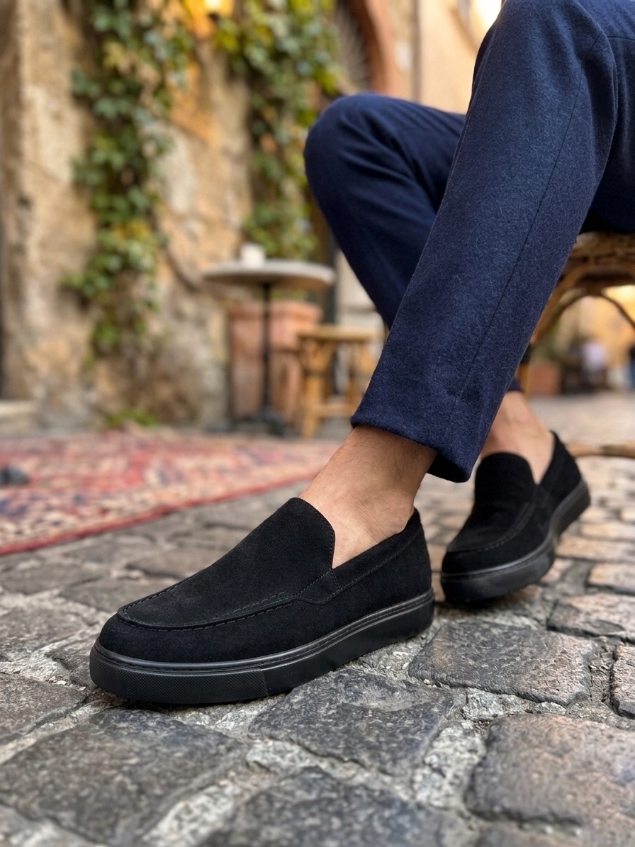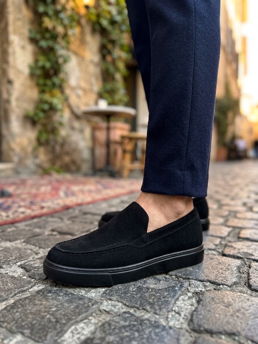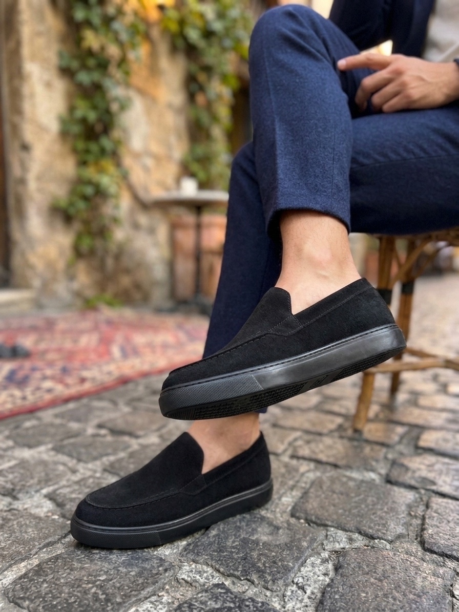 • AHN0241 Bağcıksız Yüksek Siyah Taban Süet Erkek Ayakkabı