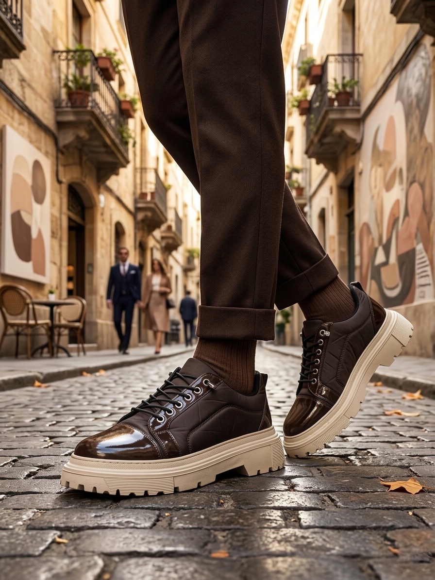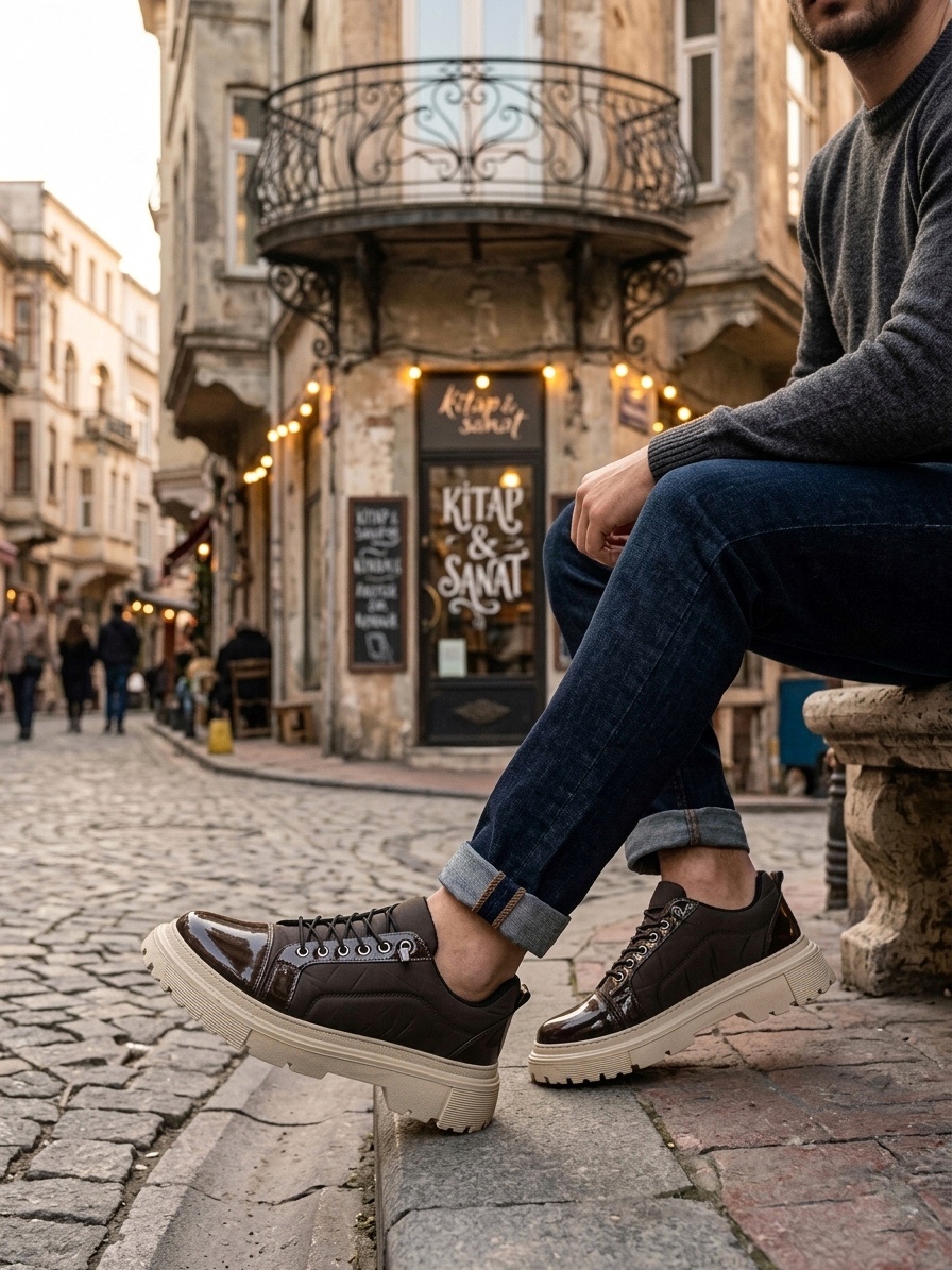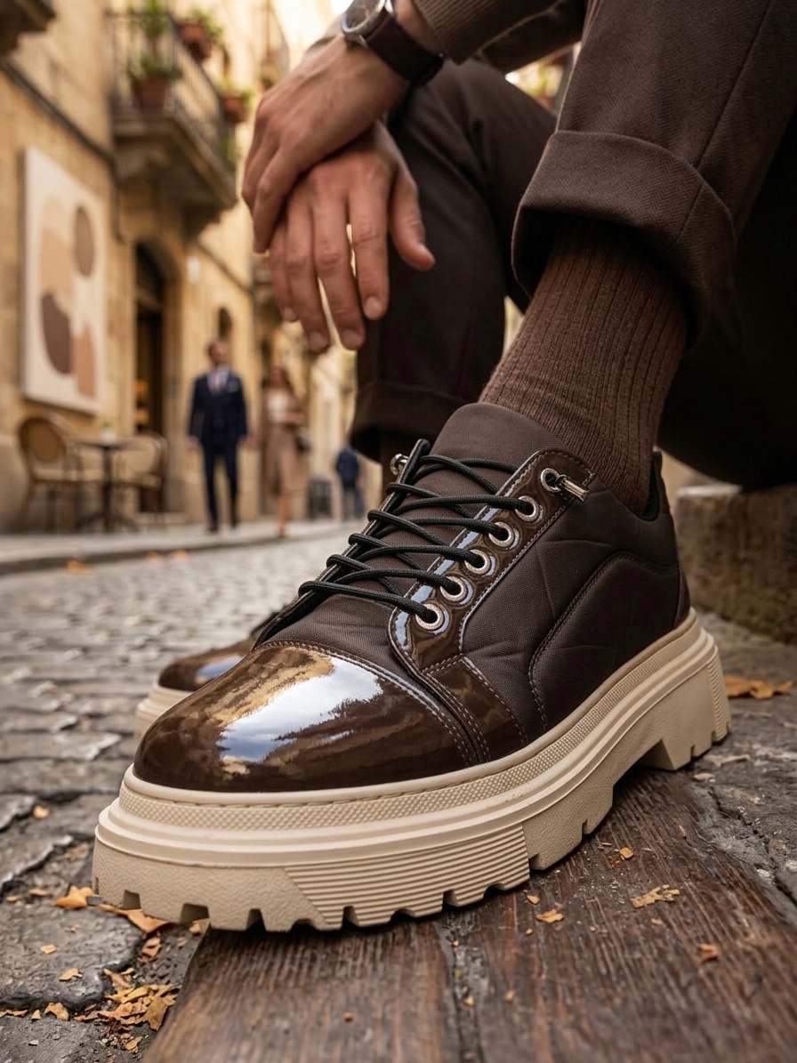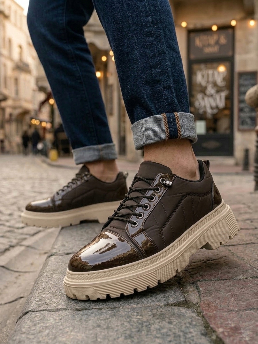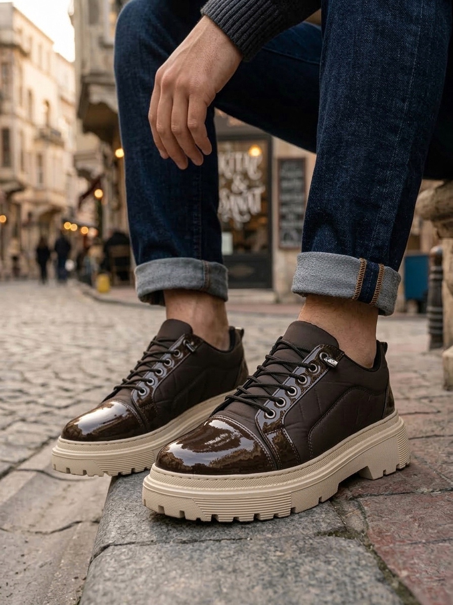 • AHN0245 Kahverengi Rugan Paraşüt Detaylı Akıllı Lastik Bağcık Yüksek Bej Taban Günlük Erkek Ayakkabı