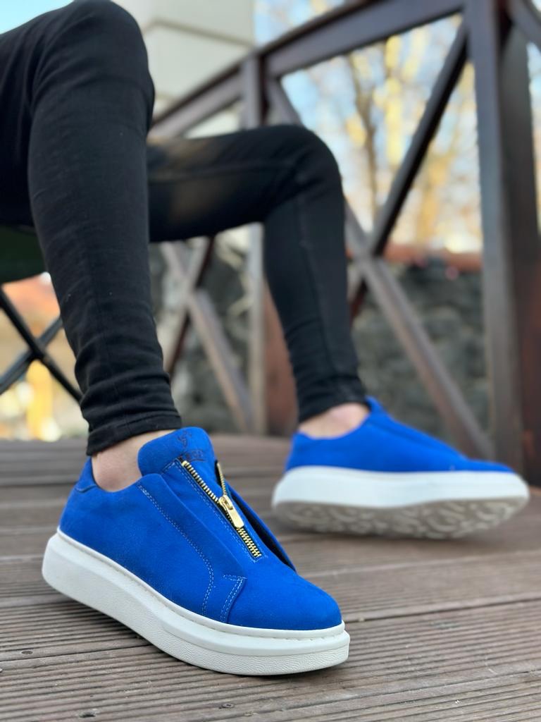 • AHN0310 AHN Kalın Süet Yüksek Taban Fermuarlı Mavi Erkek Ayakkabı