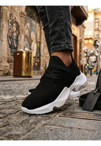• AHN0548 AHN Kalın Yüksek Siyah Taban Siyah Bağcıklı Spor Erkek Ayakkabı