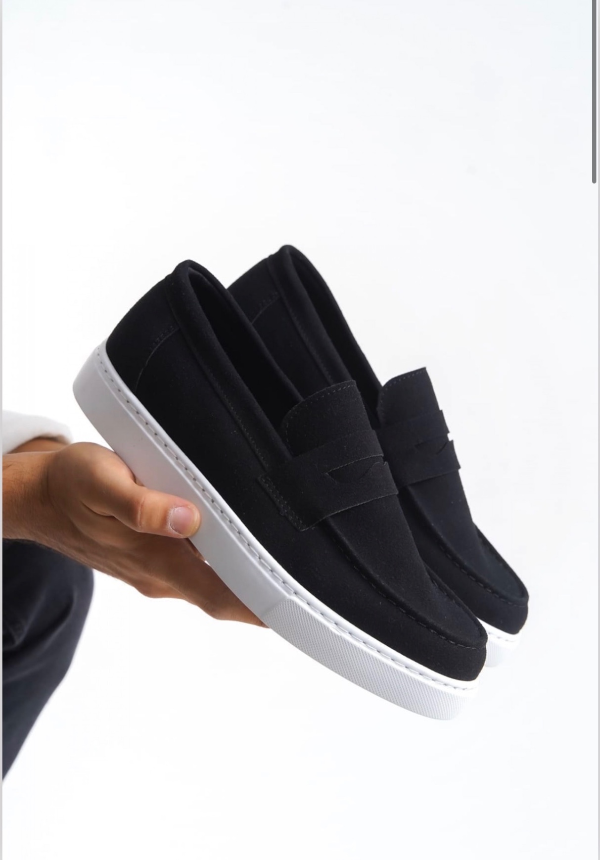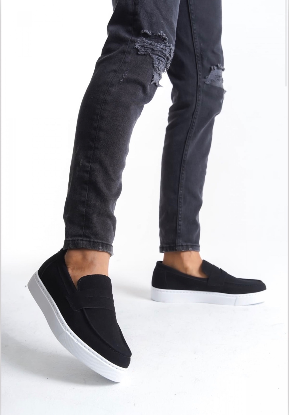• AHN0580 Bağcıksız Kuşaklı Yüksek Süet Siyah Beyaz Taban Erkek Ayakkabı