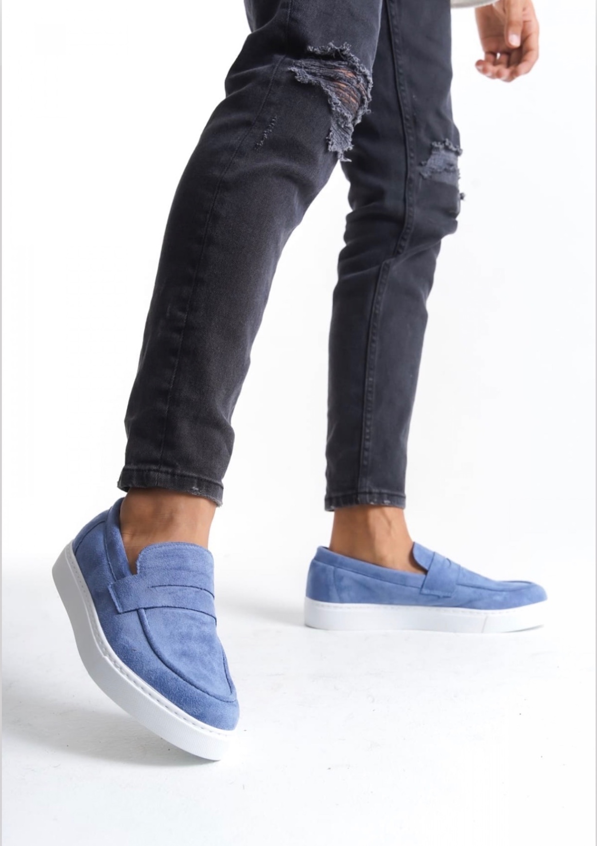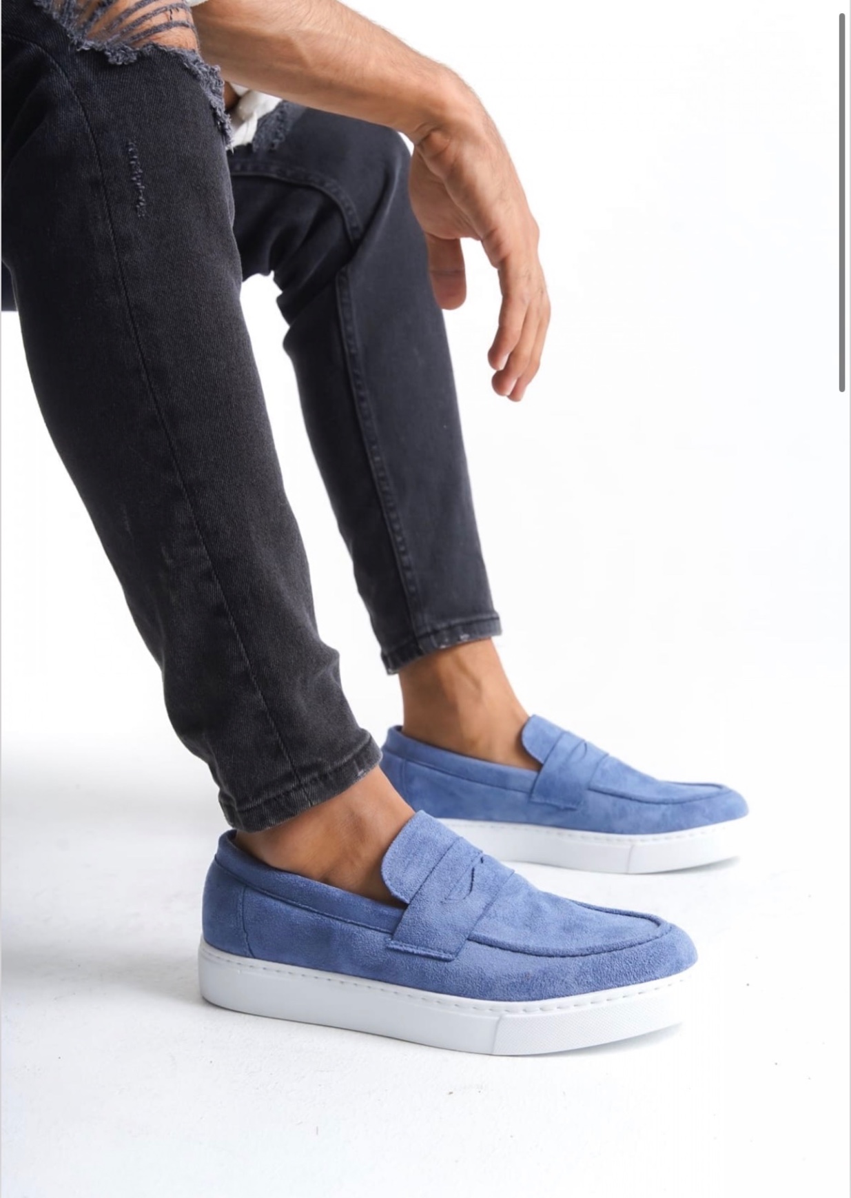 • AHN0580 Bağcıksız Kuşaklı Yüksek Taban Mavi Süet Erkek Ayakkabı