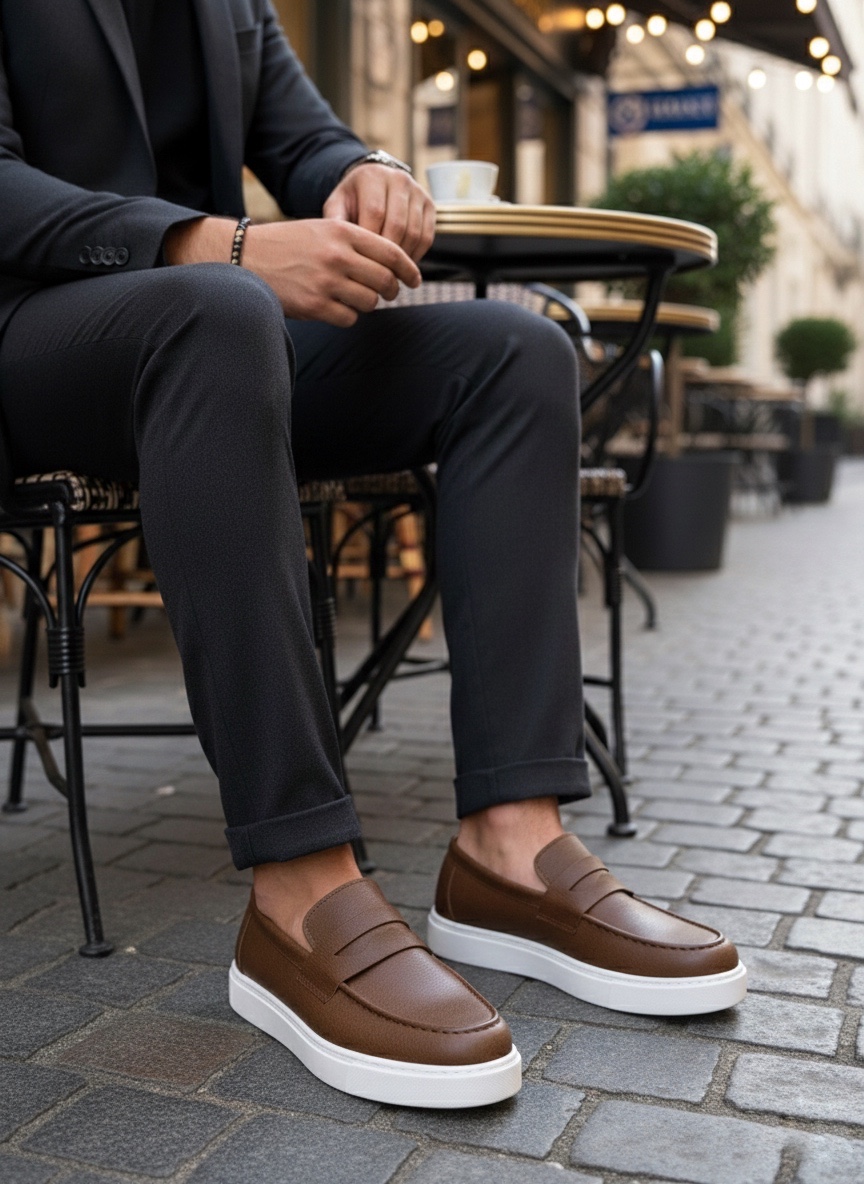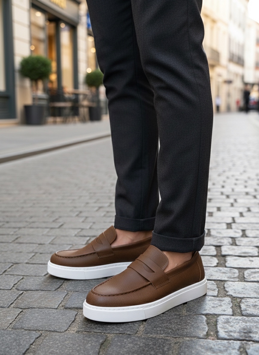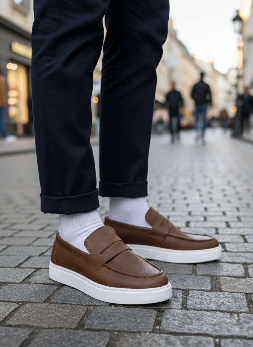 • AHN0580 Bağcıksız Kuşaklı Yüksek Taban Taba Cilt Erkek Ayakkabı
