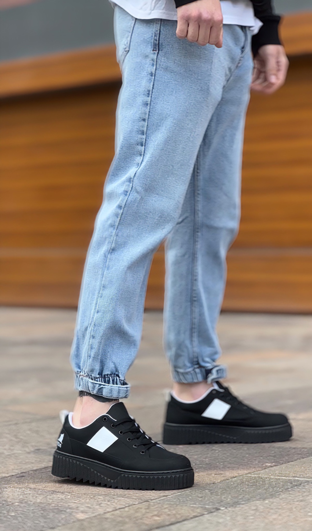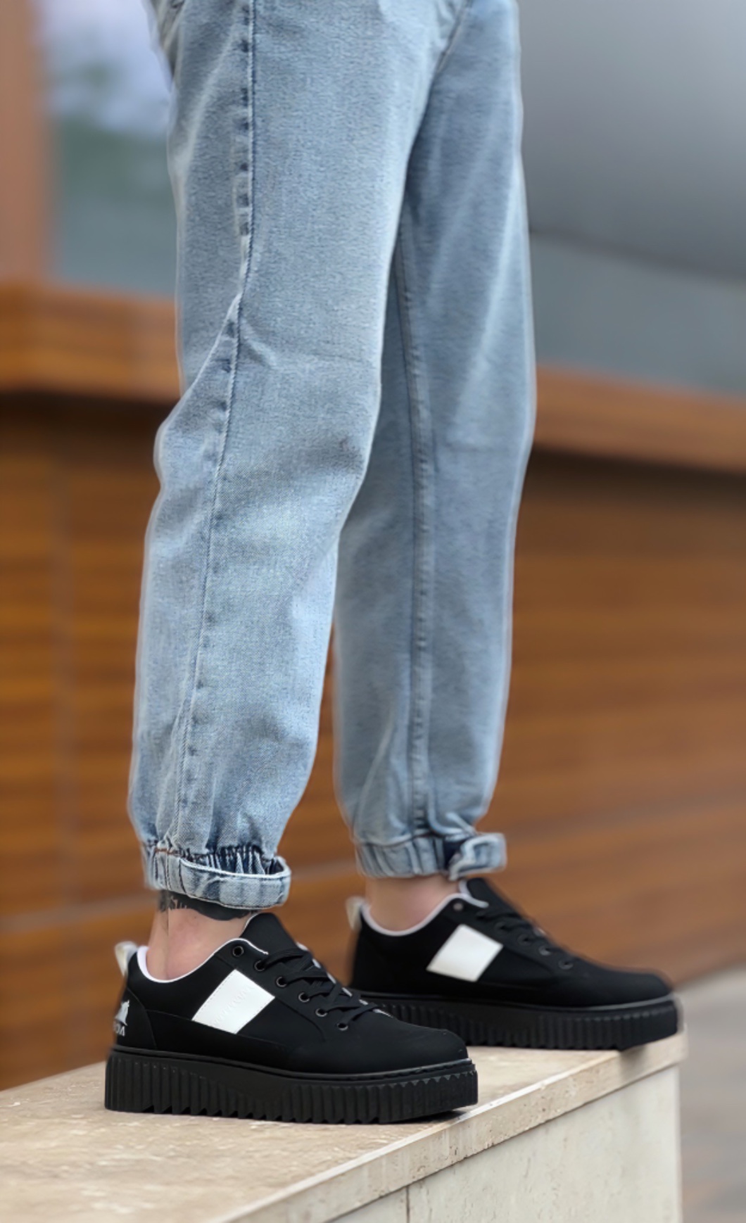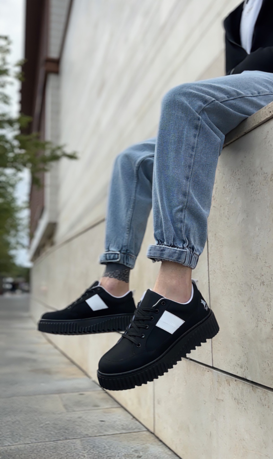 • AHN0804 AHN Yüksek Siyah Taban Beyaz Detaylı Bağcıklı Erkek Ayakkabı