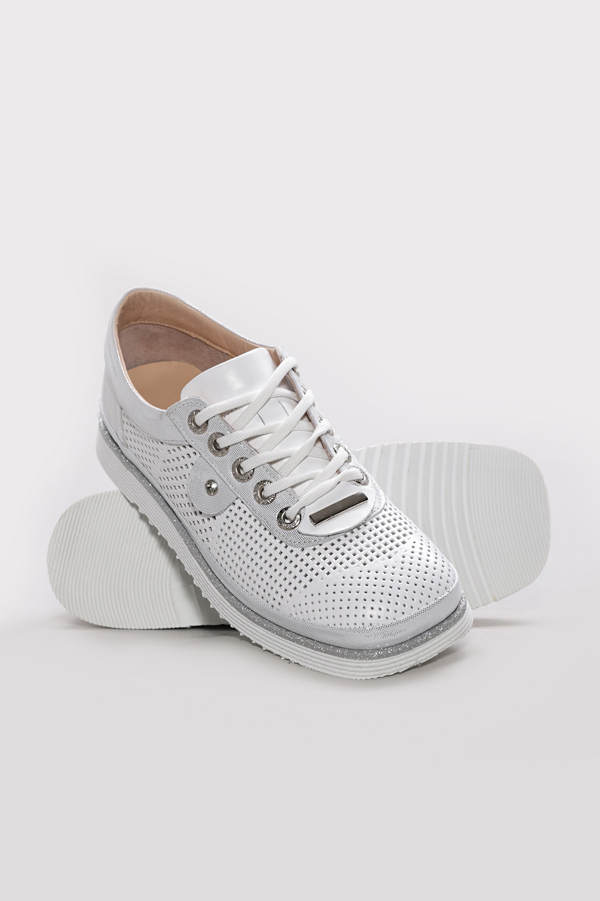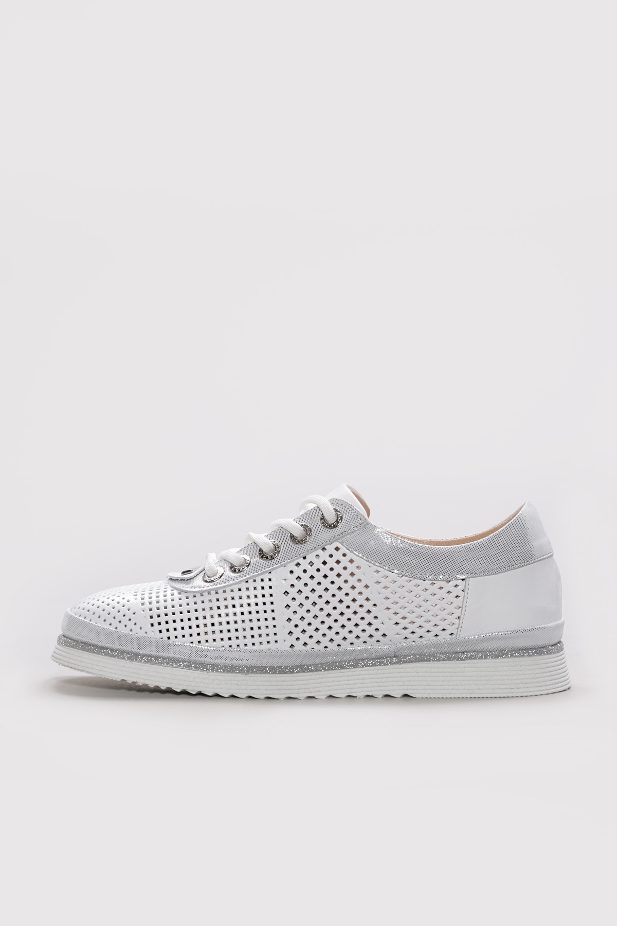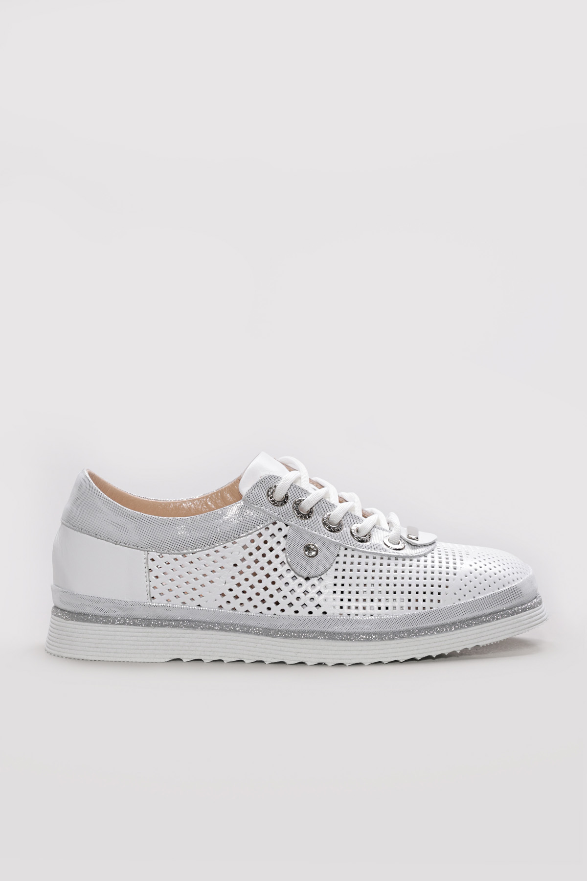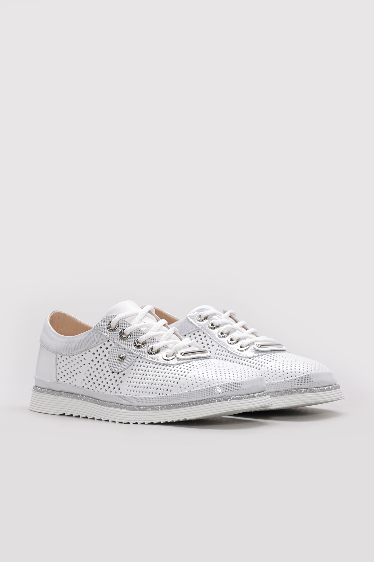 • Ayakkabıhane Hakiki Deri Beyaz Simli Kadın Casual Ayakkabı AH07256ZA770