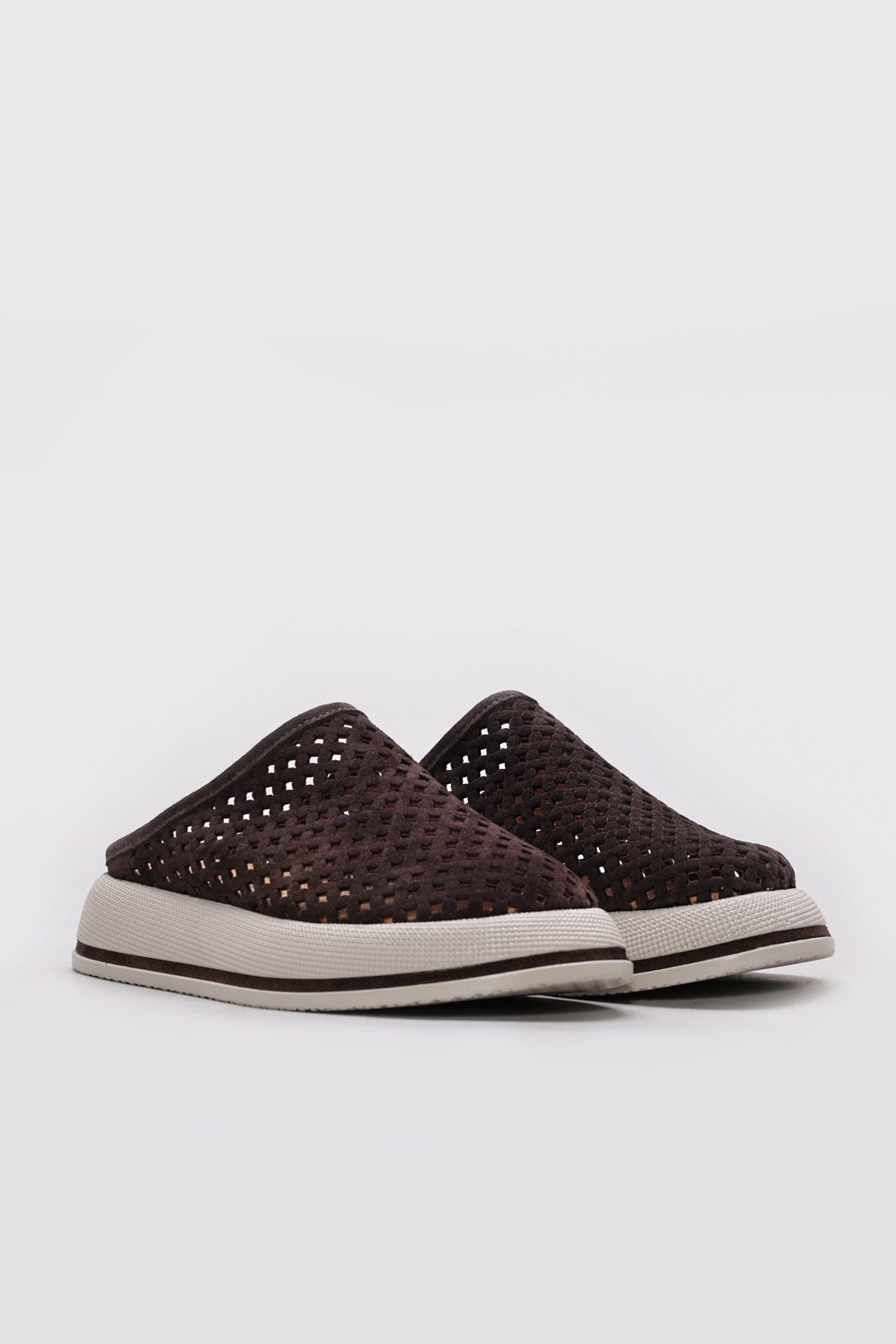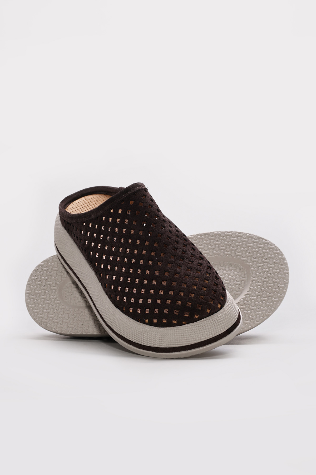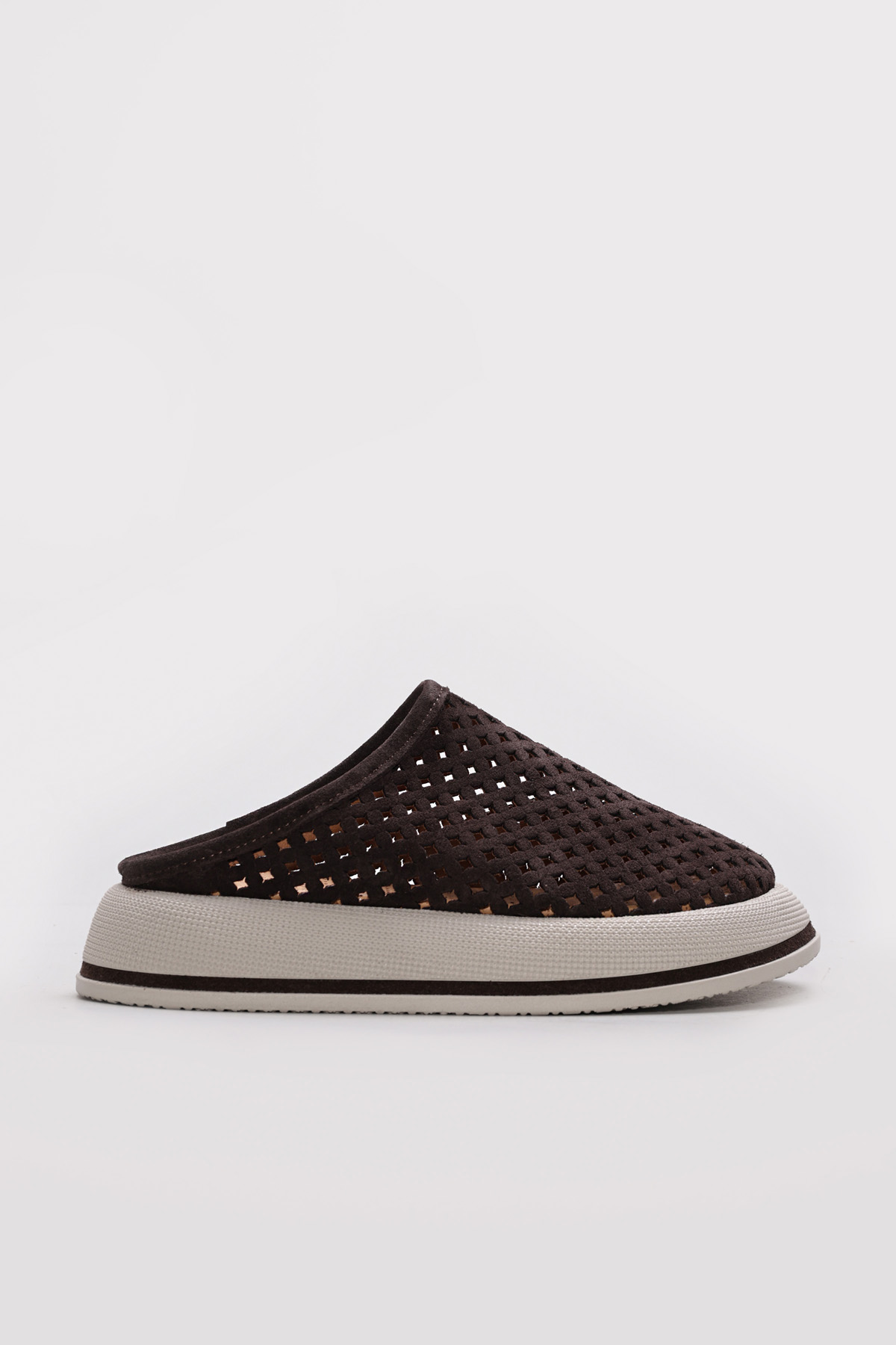 Ayakkabıhane Hakiki Deri Kahve Süet Kadın Dolgu Topuk Terlik AH07411ZA1106
