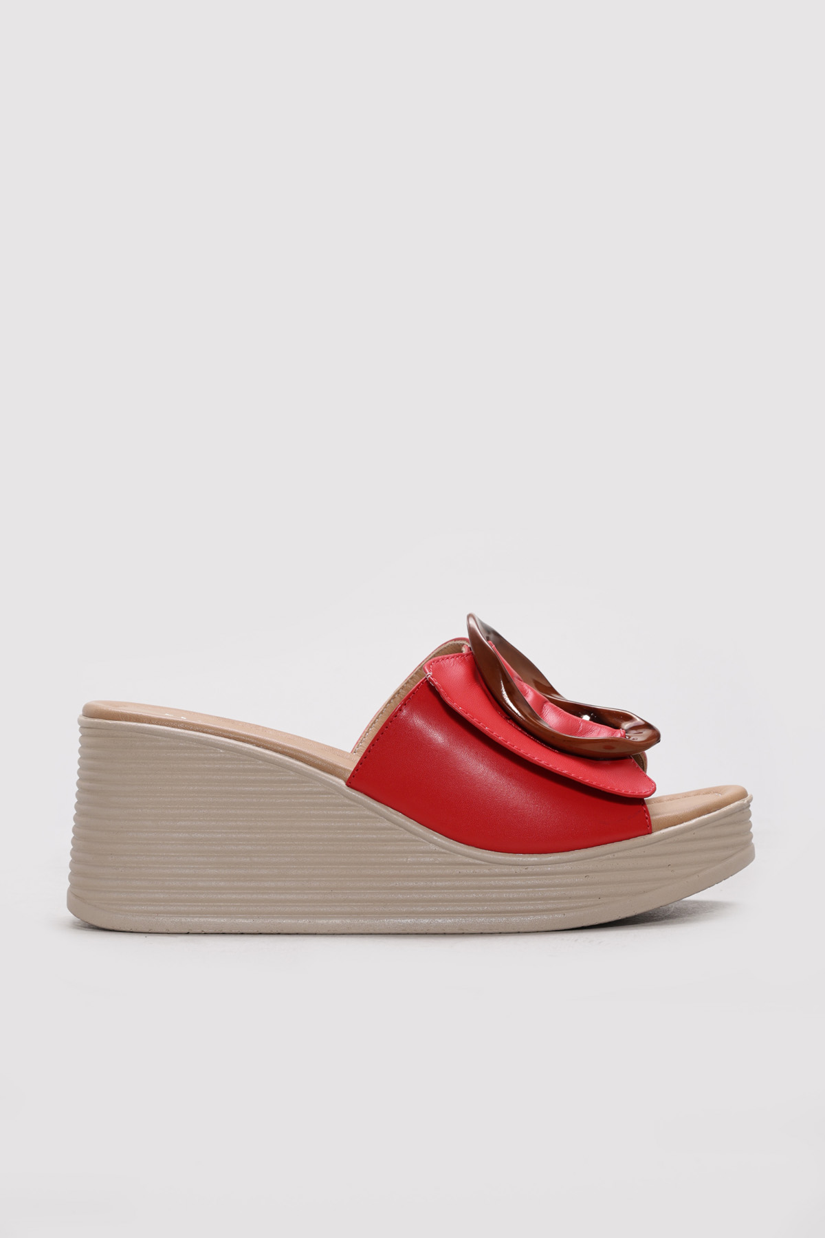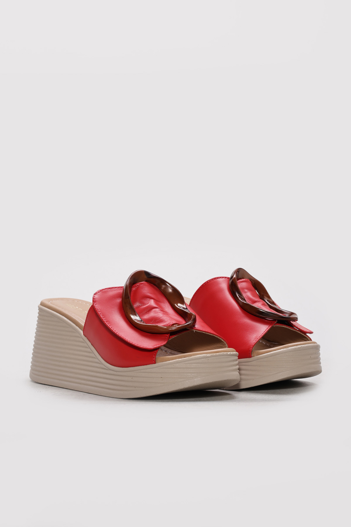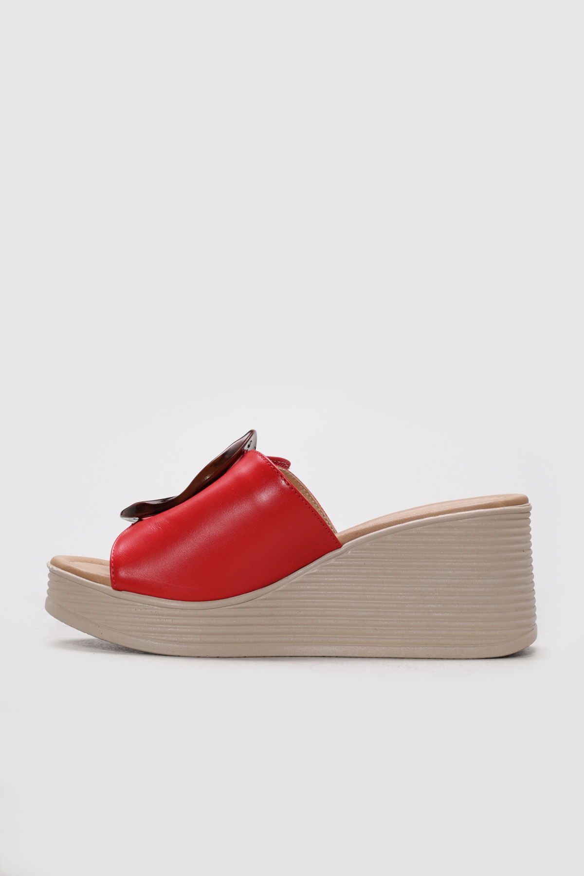 • Ayakkabıhane Hakiki Deri Kırmızı Kadın Dolgu Topuk Terlik AH07275ZA2039DLG