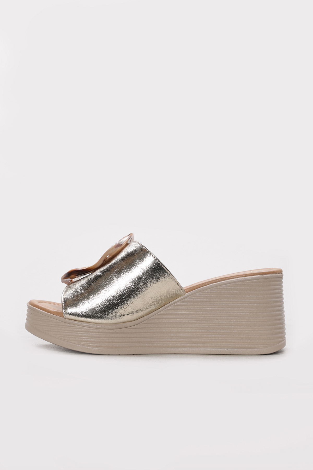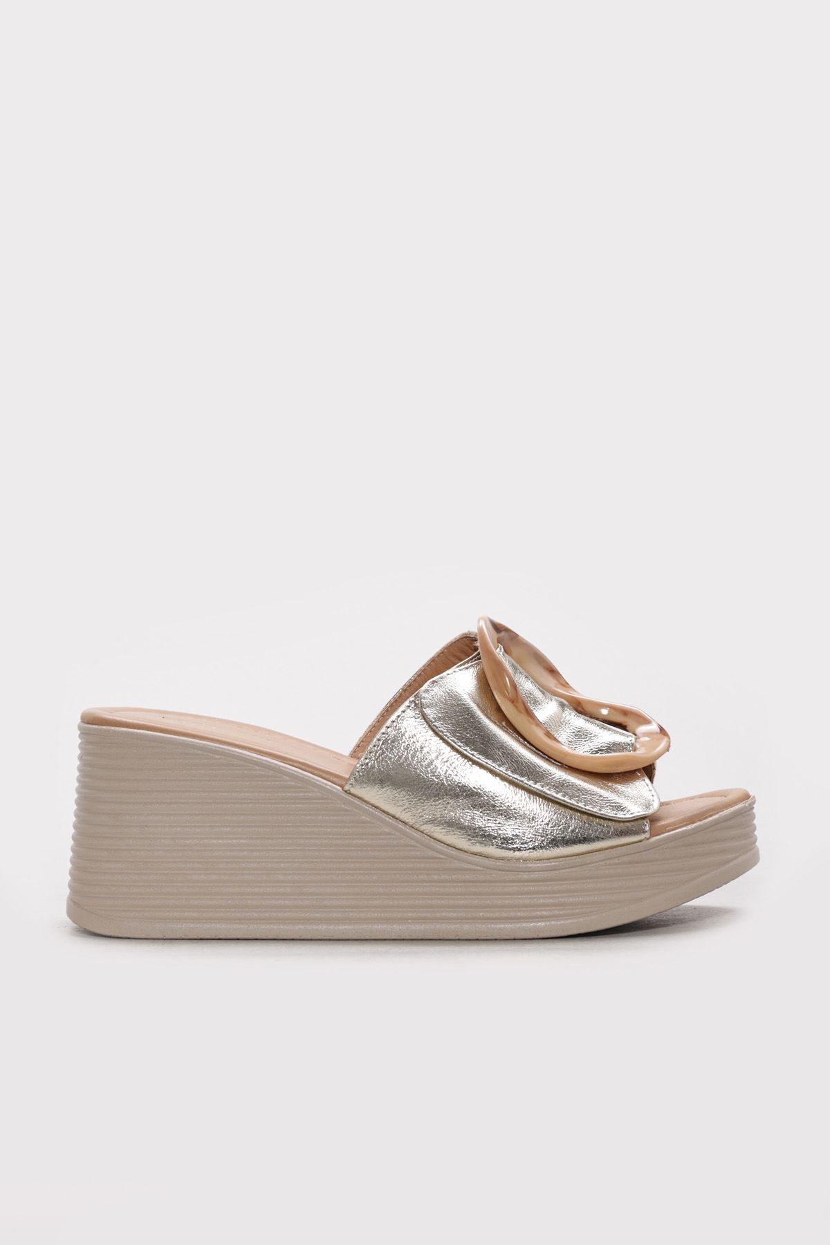 Ayakkabıhane İçi Dışı Hakiki Deri Altın Kadın Dolgu Topuklu Terlik AH0827526120394232