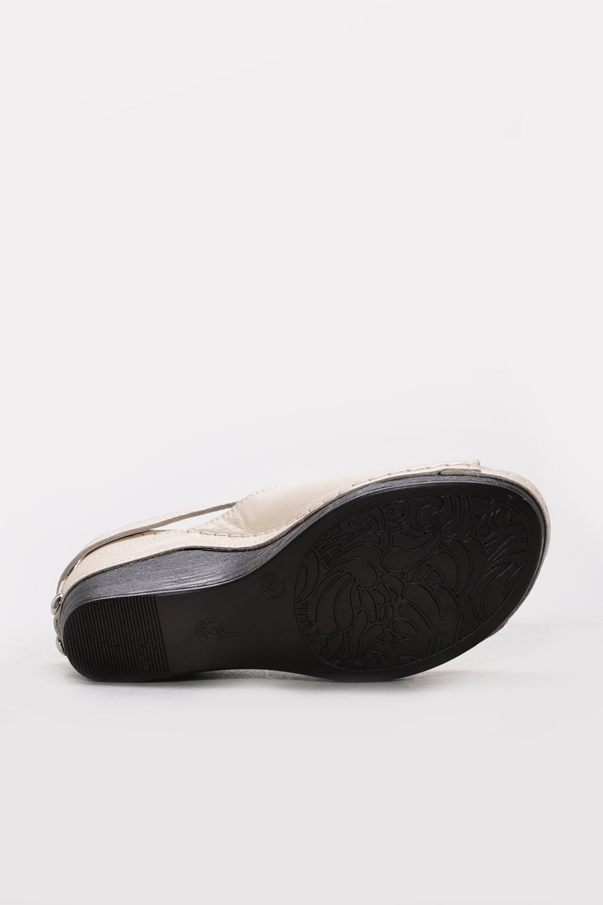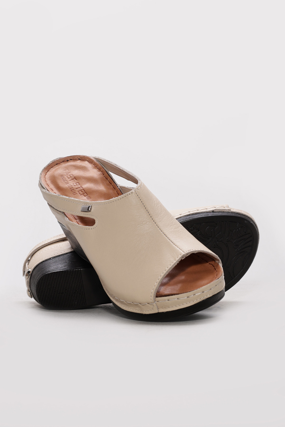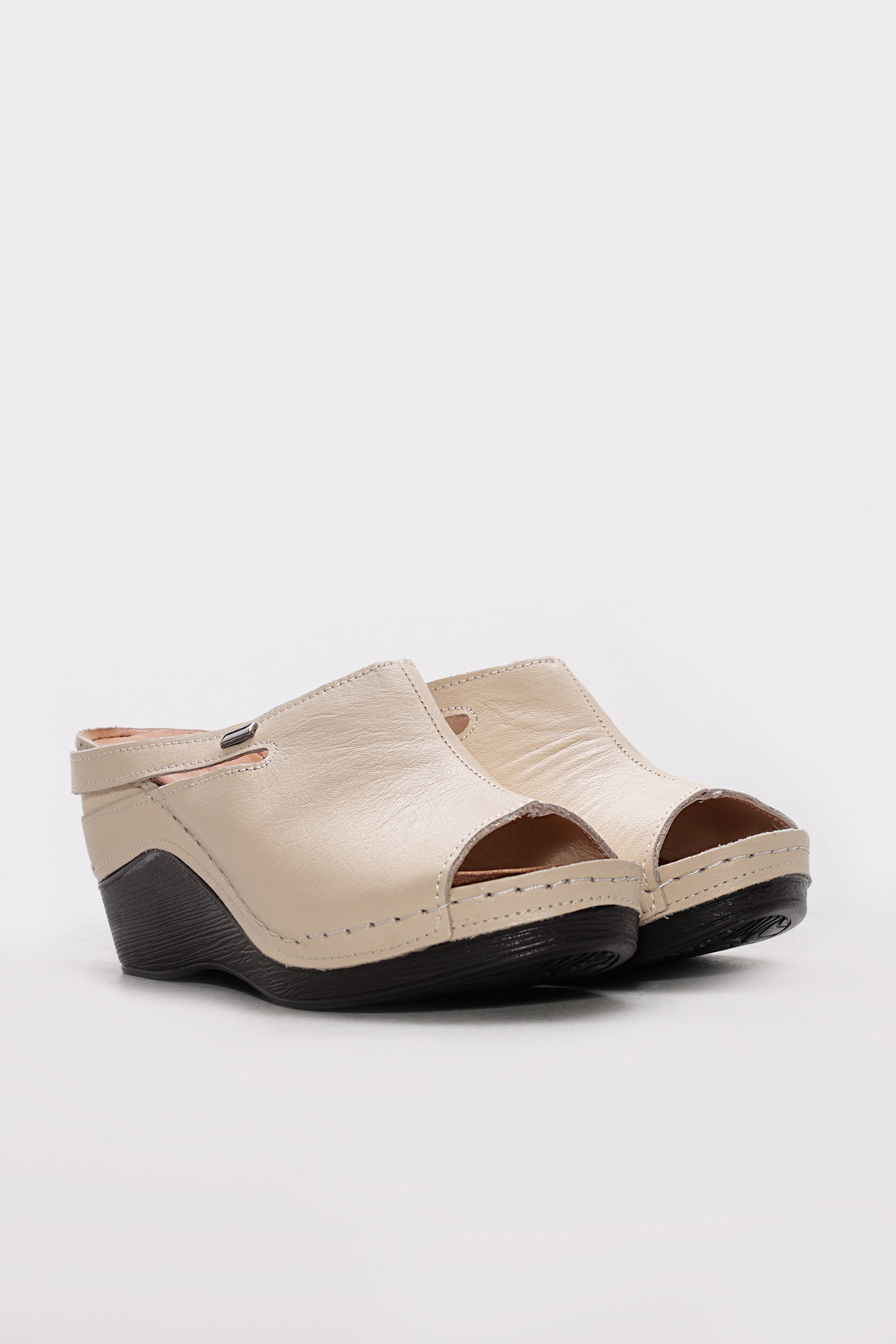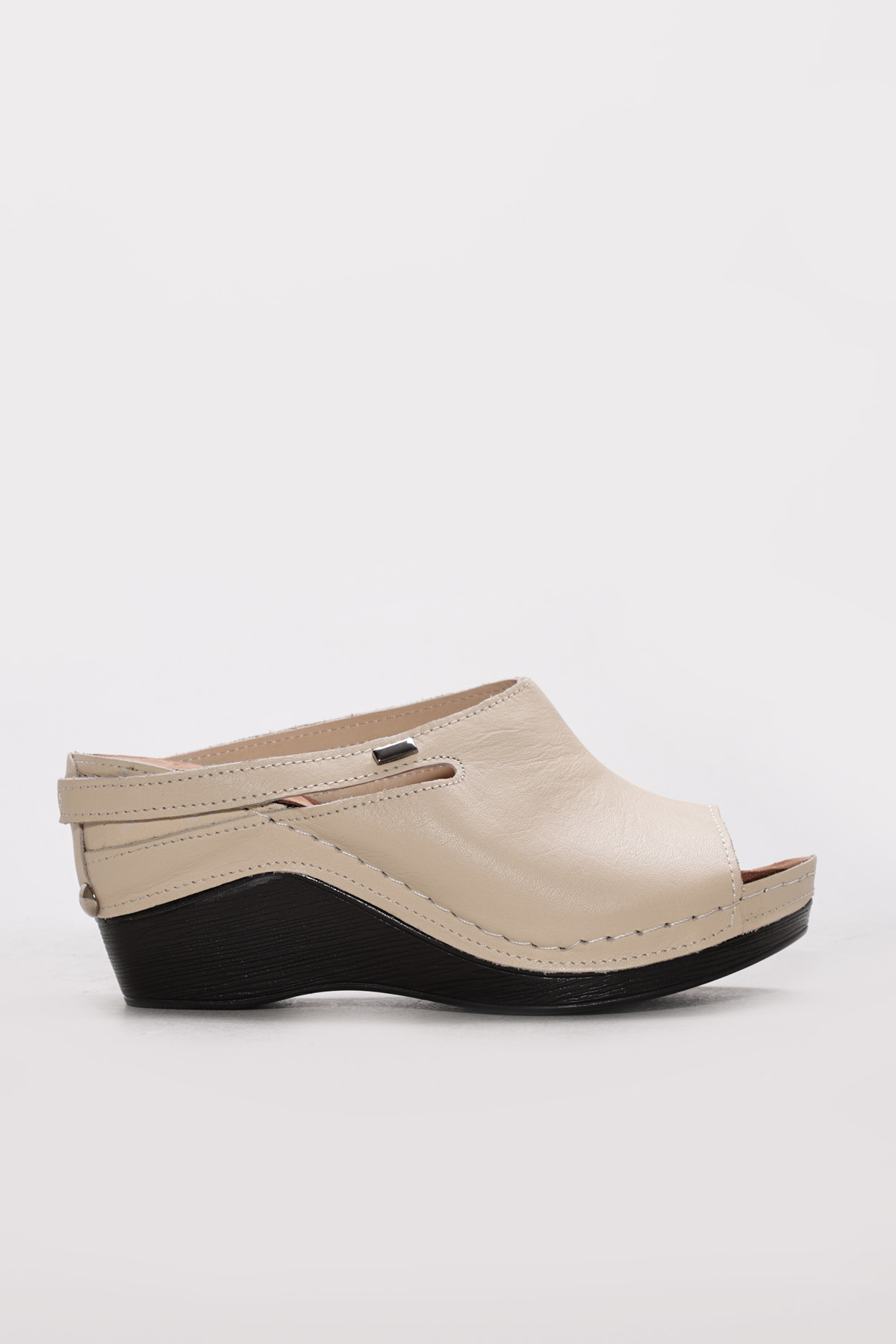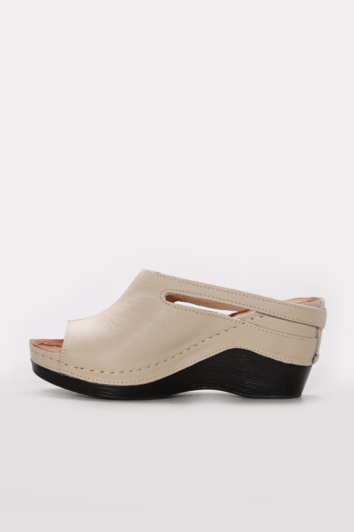 Ayakkabıhane İçi Dışı Hakiki Deri Bej Kadın Dolgu Topuklu Terlik AH089722611106