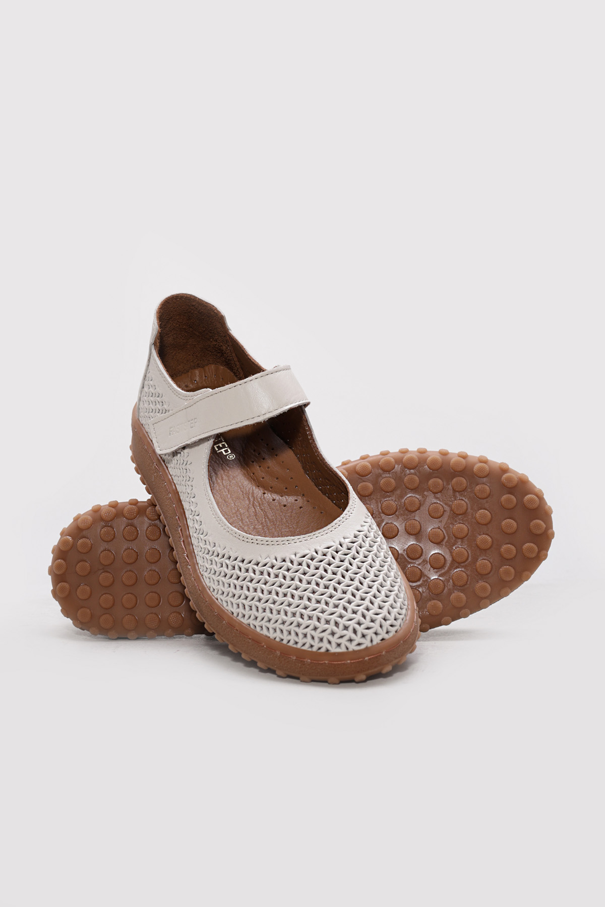 • Ayakkabıhane İçi Dışı Hakiki Deri Bej Şık Kadın Babet Ayakkabı AH082402612215