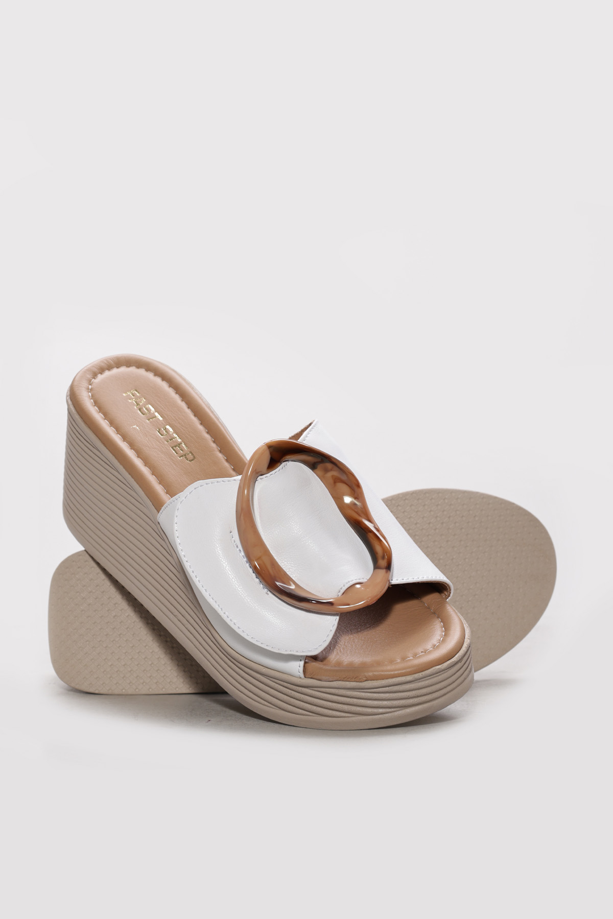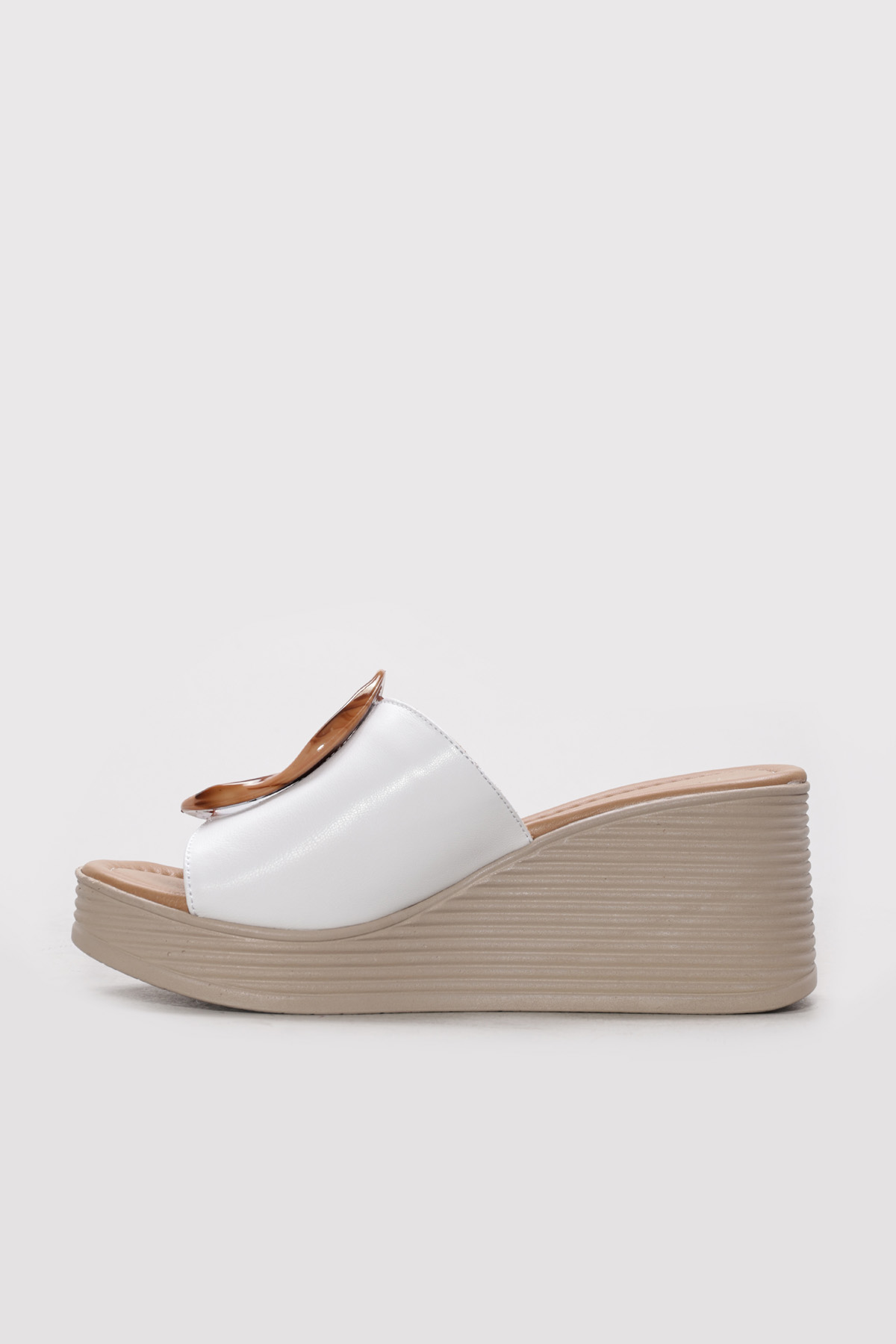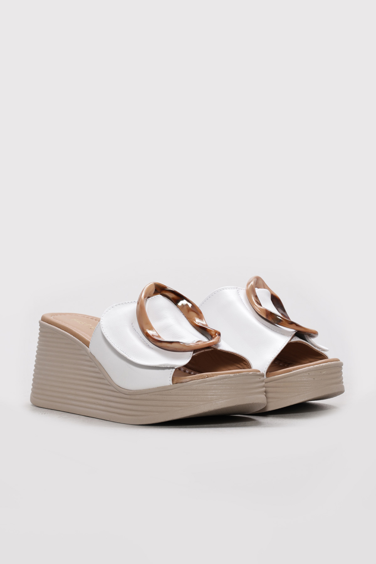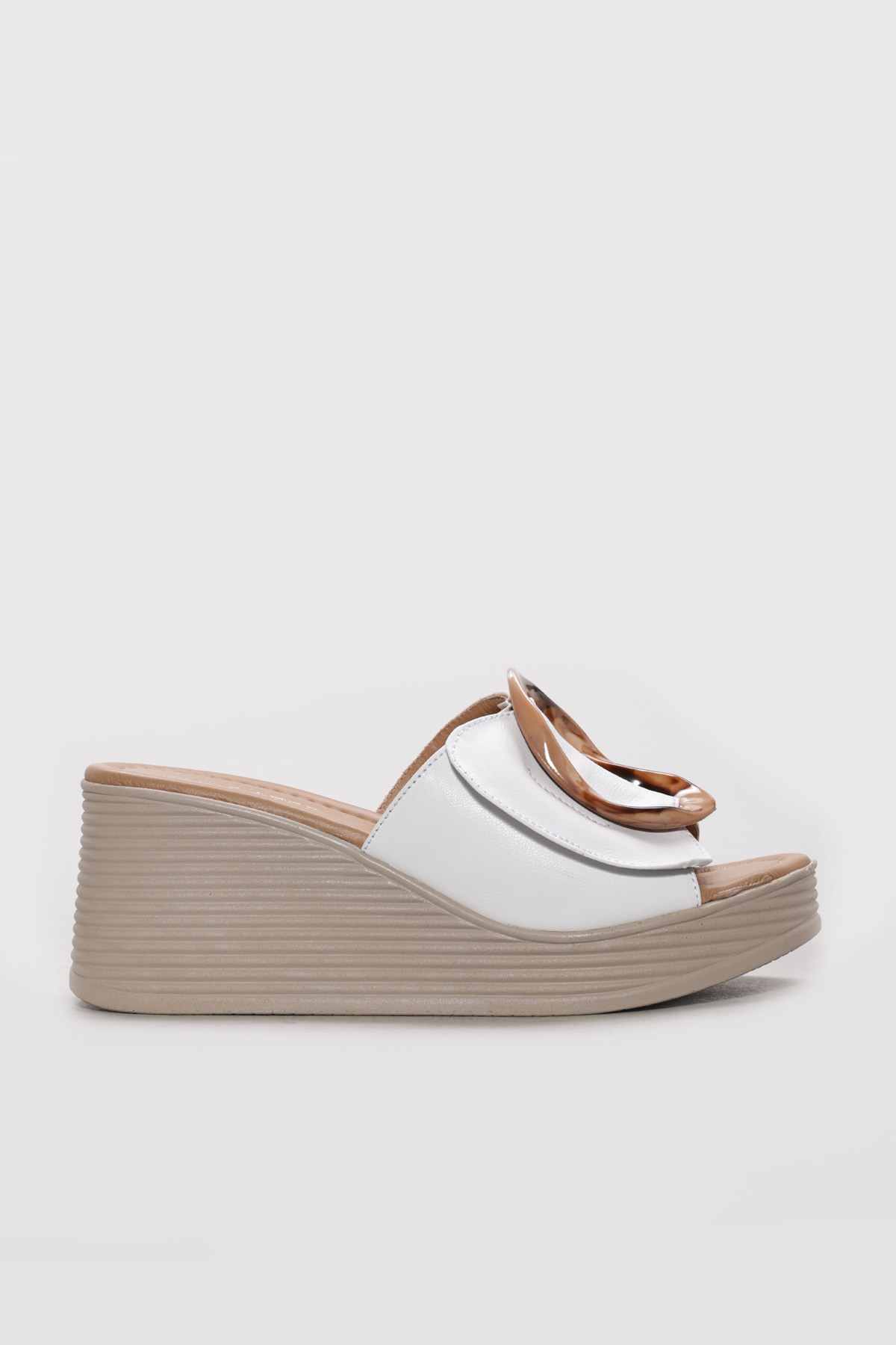 • Ayakkabıhane İçi Dışı Hakiki Deri Beyaz Kadın Dolgu Topuklu Terlik AH0827526120394232