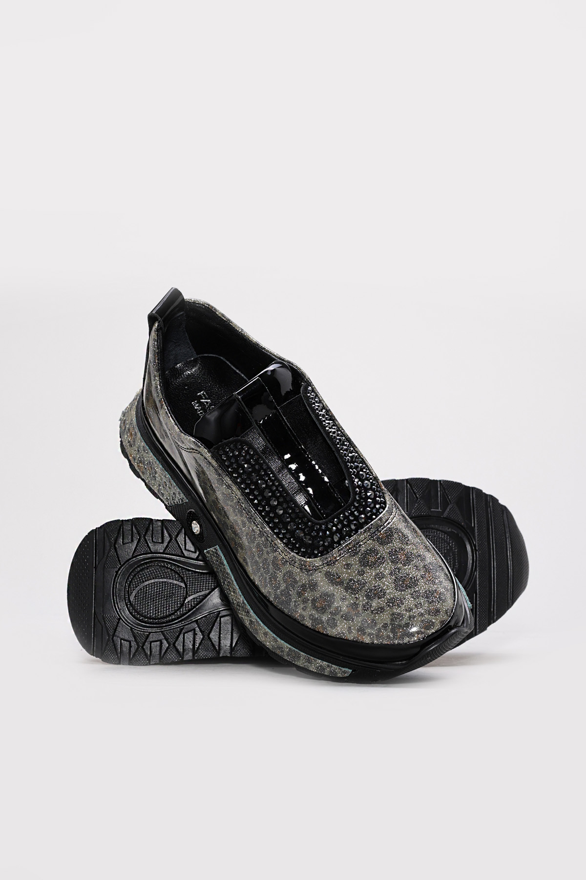Ayakkabıhane İçi Dışı Hakiki Deri Haki Leopar Kadın Casual Ayakkabı AH08254261278