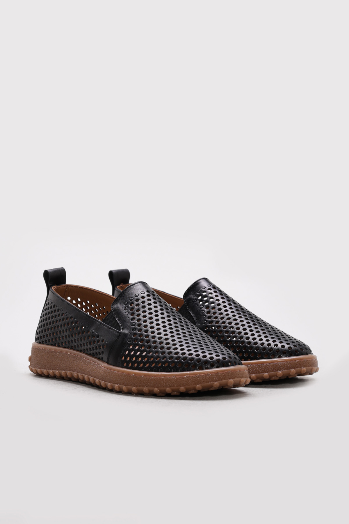 • Ayakkabıhane İçi Dışı Hakiki Deri Siyah Delikli Kadın Casual Ayakkabı AH082402612216