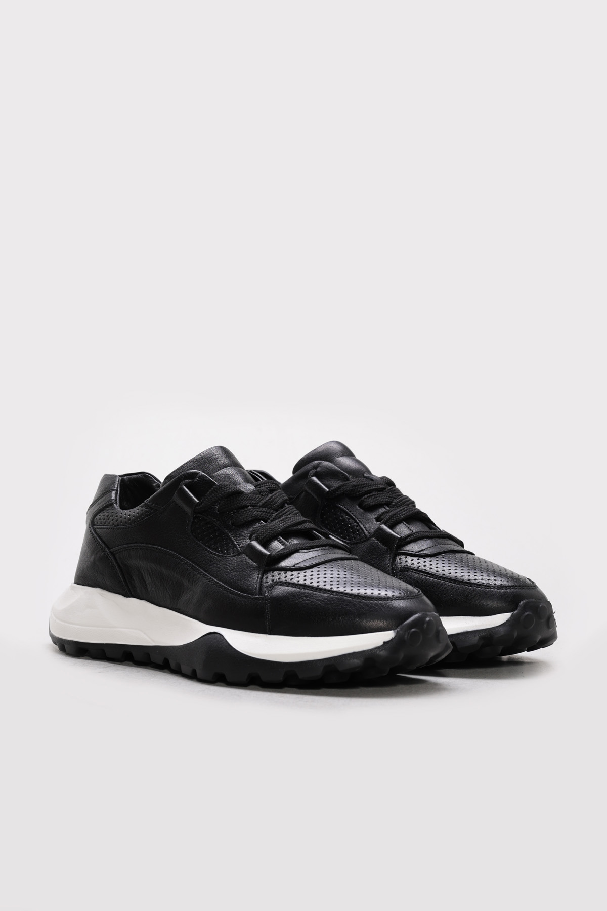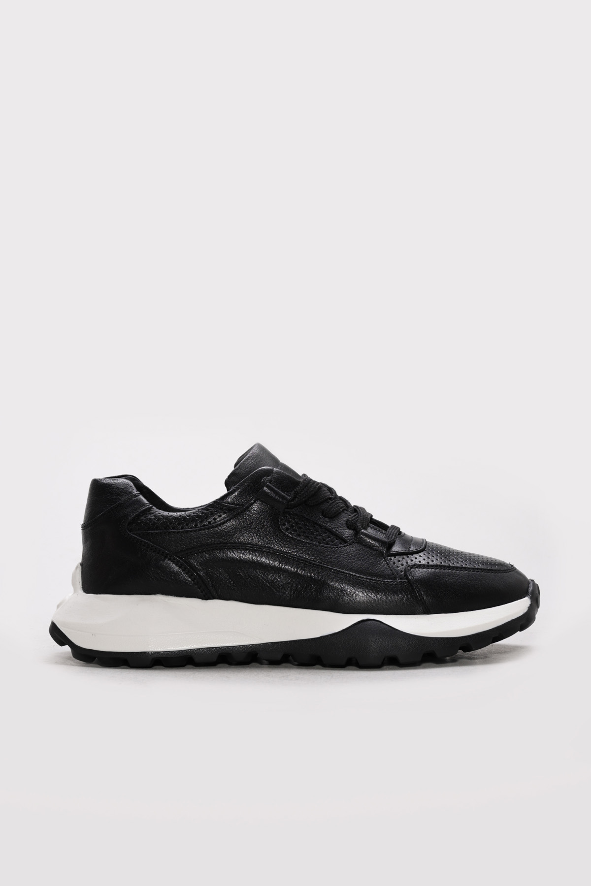 Ayakkabıhane İçi Dışı Hakiki Deri Siyah EVA Erkek Spor Sneaker Ayakkabı AH08311131107