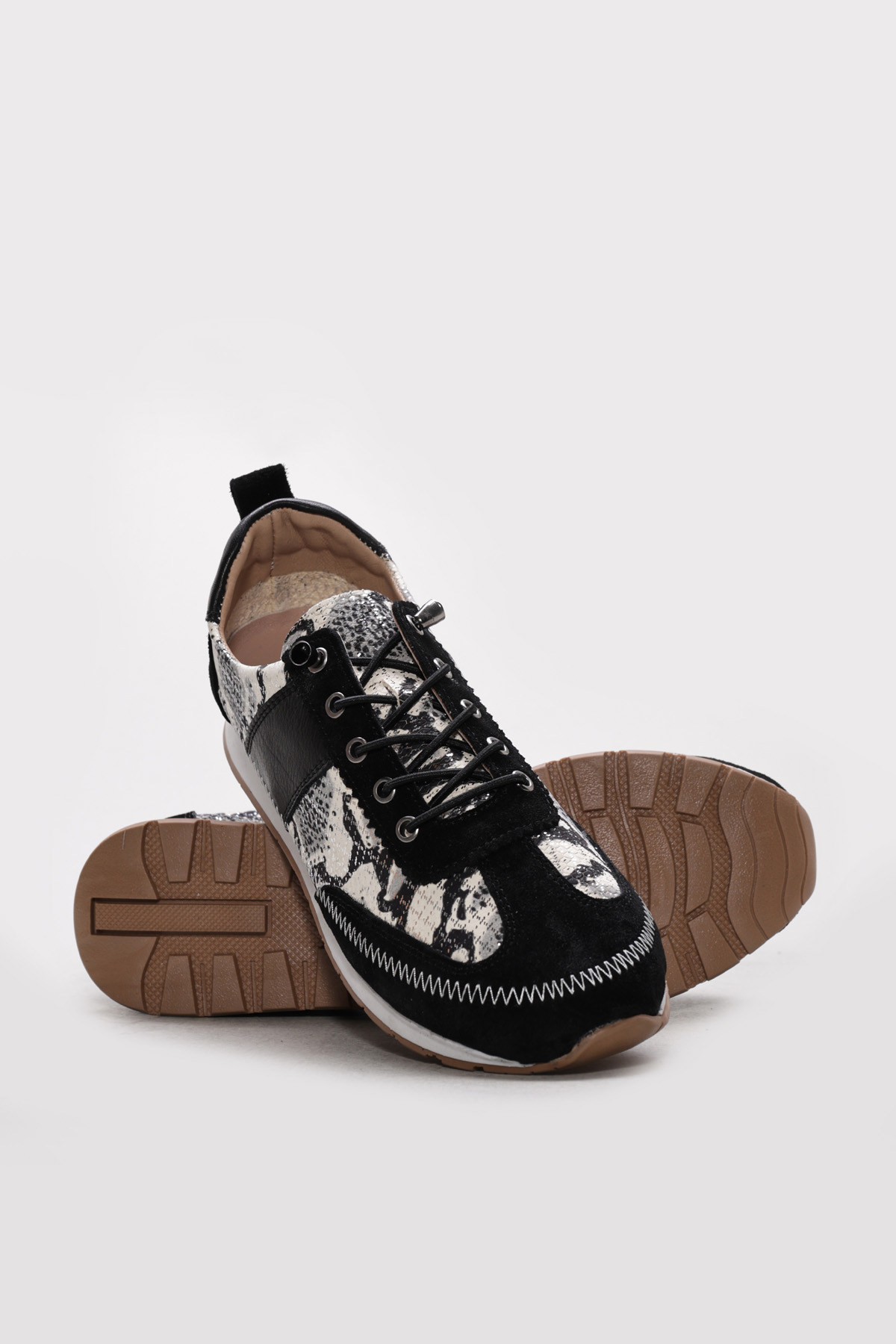 • Ayakkabıhane İçi Dışı Hakiki Deri Siyah Yılan Kadın Casual Ayakkabı AH0830426197526