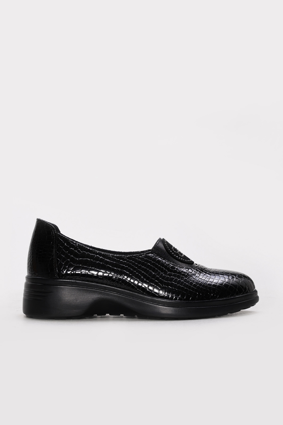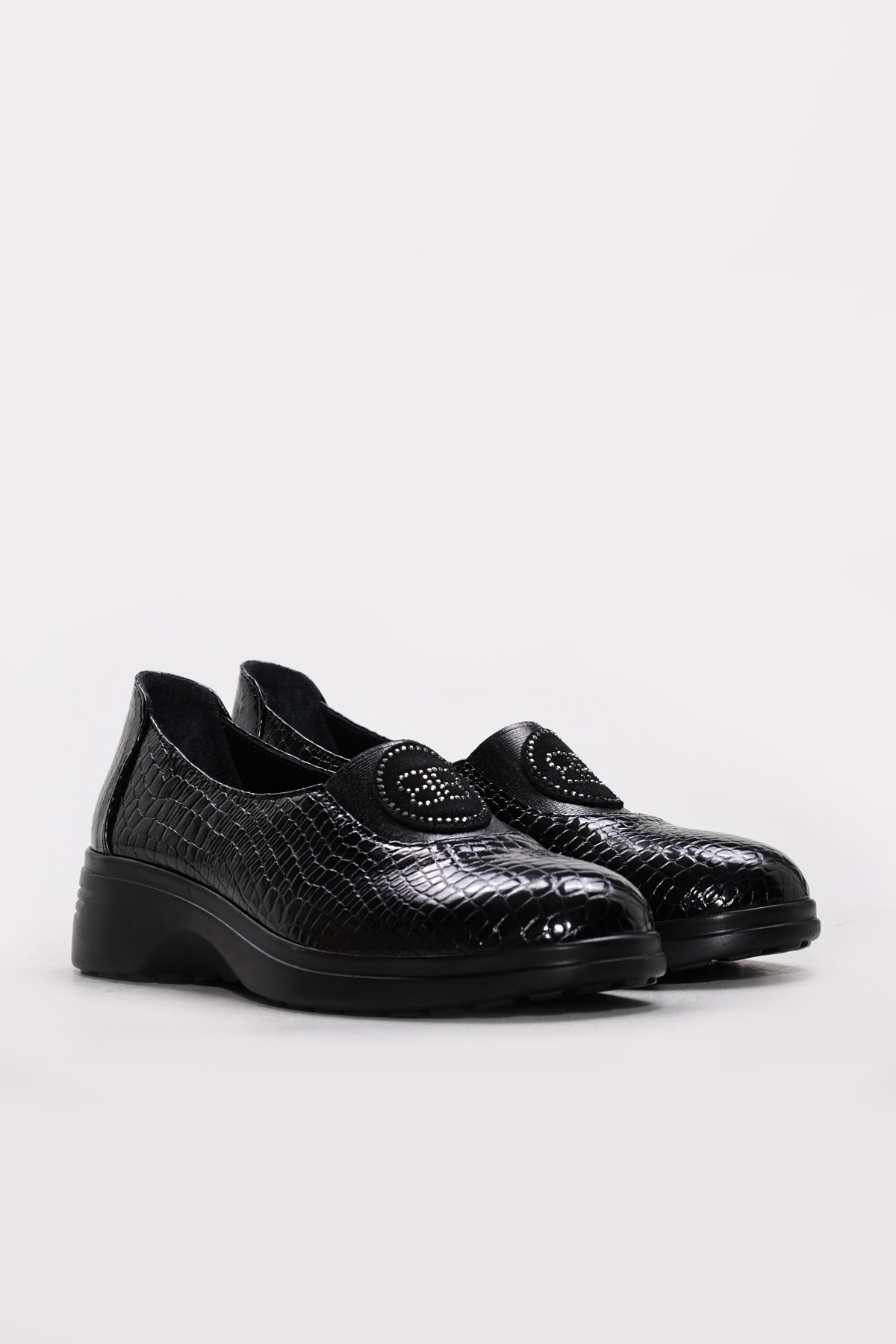• Ayakkabıhane İçi Dışı Hakiki Kroko Deri Siyah Kadın Casual Ayakkabı AH083172618252631