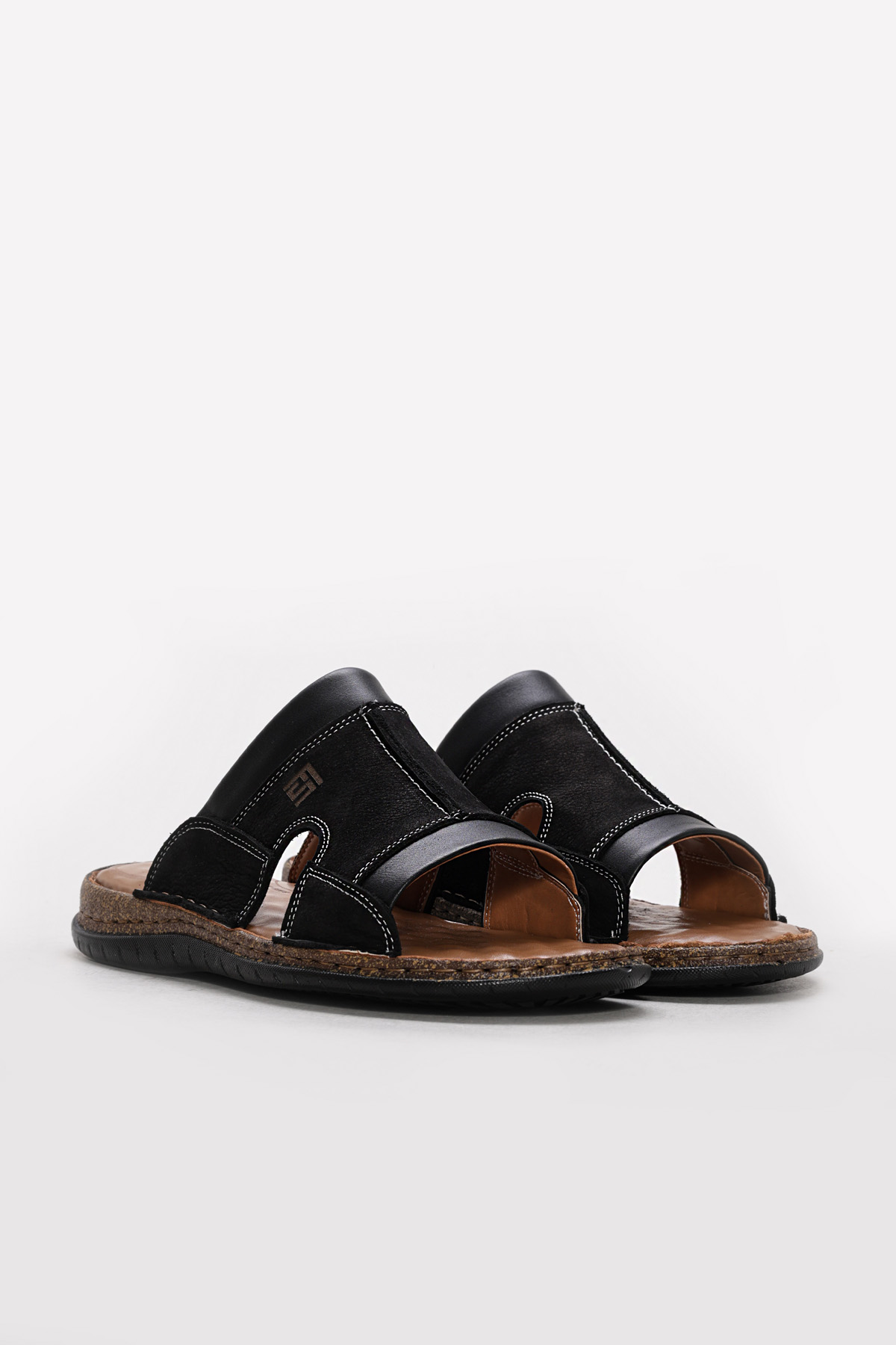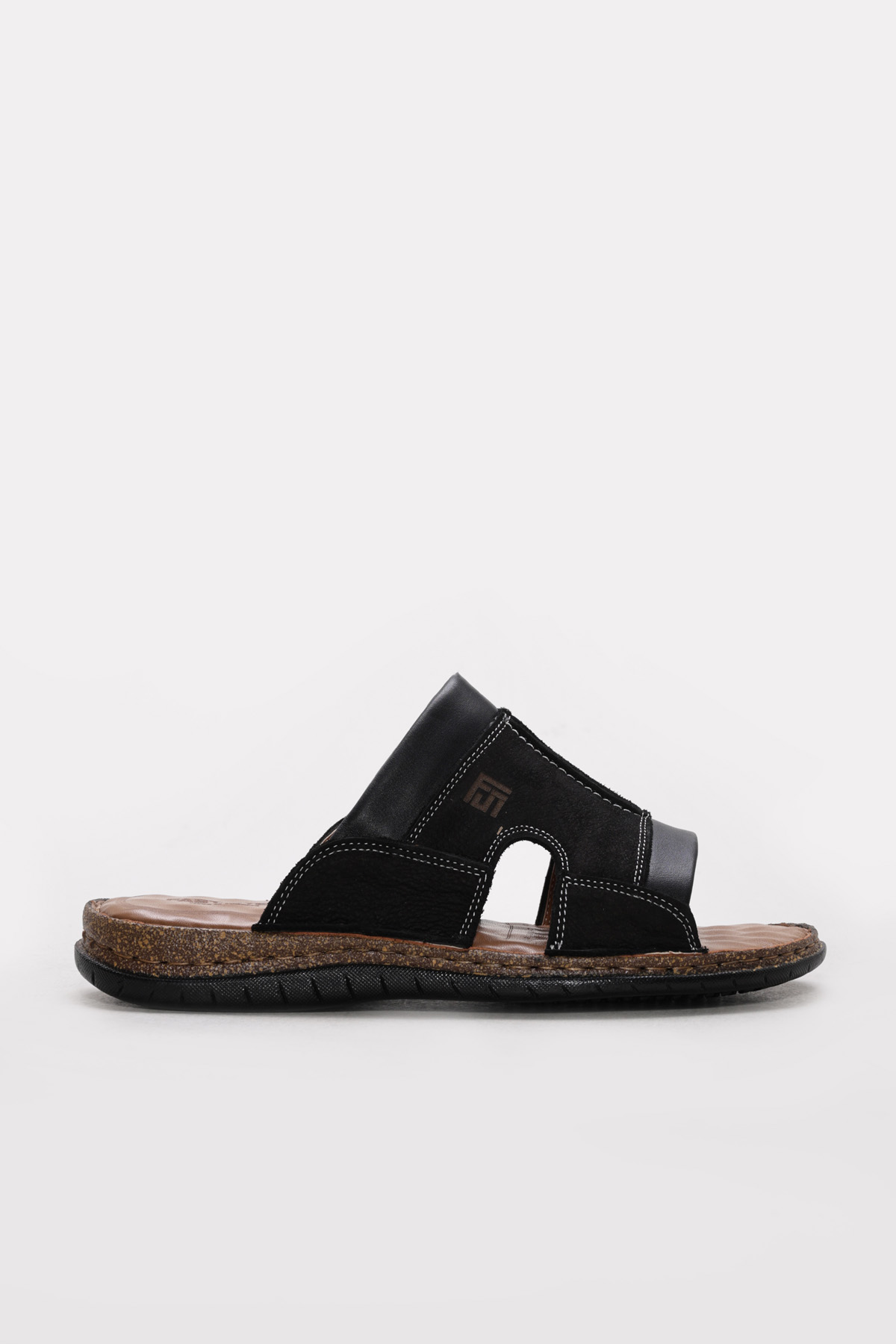 Ayakkabıhane İçi Dışı Hakiki Nubuk Deri SiyahTarz Erkek Terlik AH0830613120295