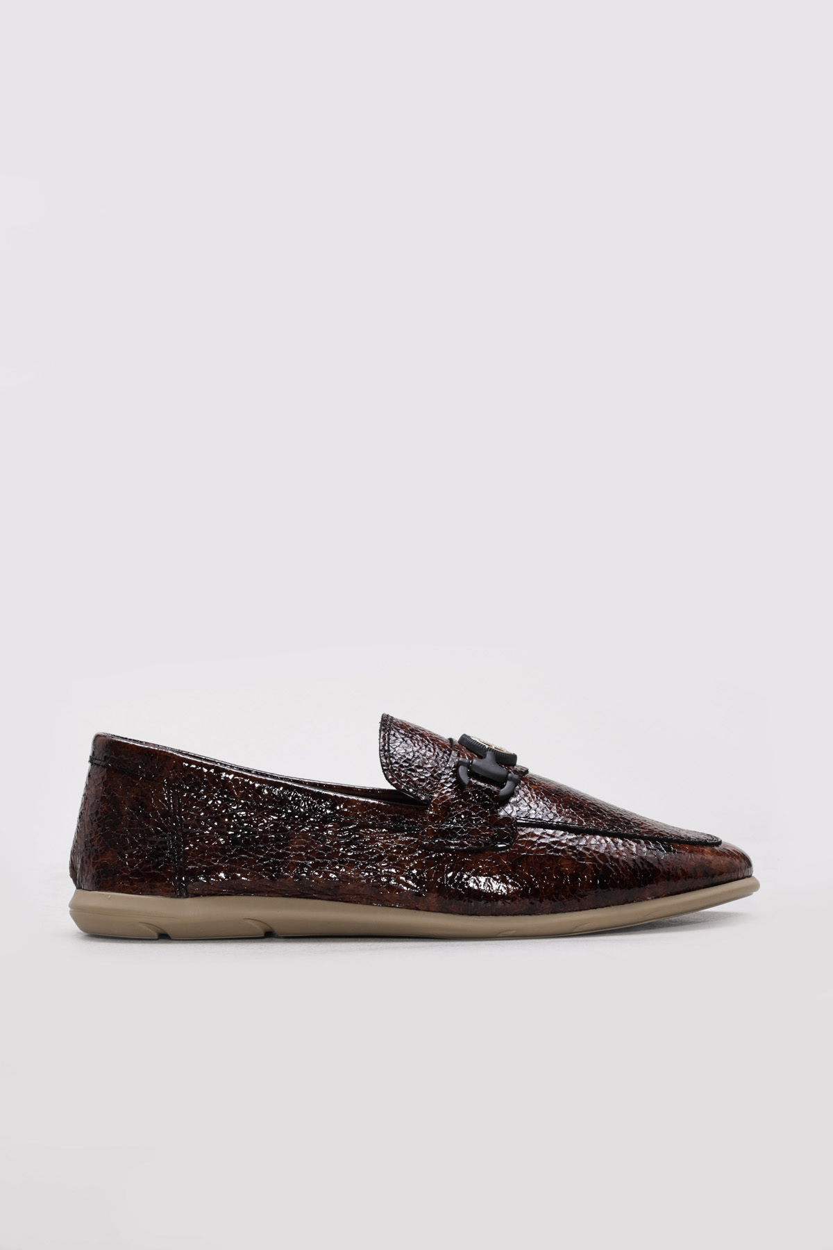 • Ayakkabıhane İçi Dışı Hakiki Rugan Deri Kahve Tokalı Kadın Casual Ayakkabı AH082382613163
