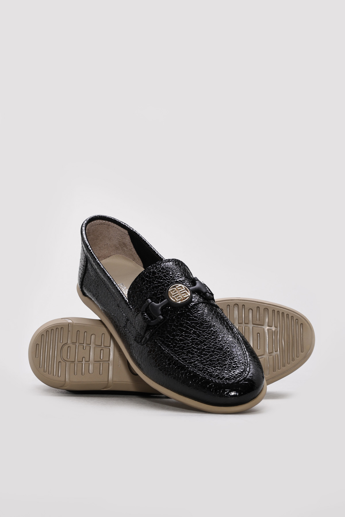 • Ayakkabıhane İçi Dışı Hakiki Rugan Deri Siyah Tokalı Kadın Casual Ayakkabı AH082382613163