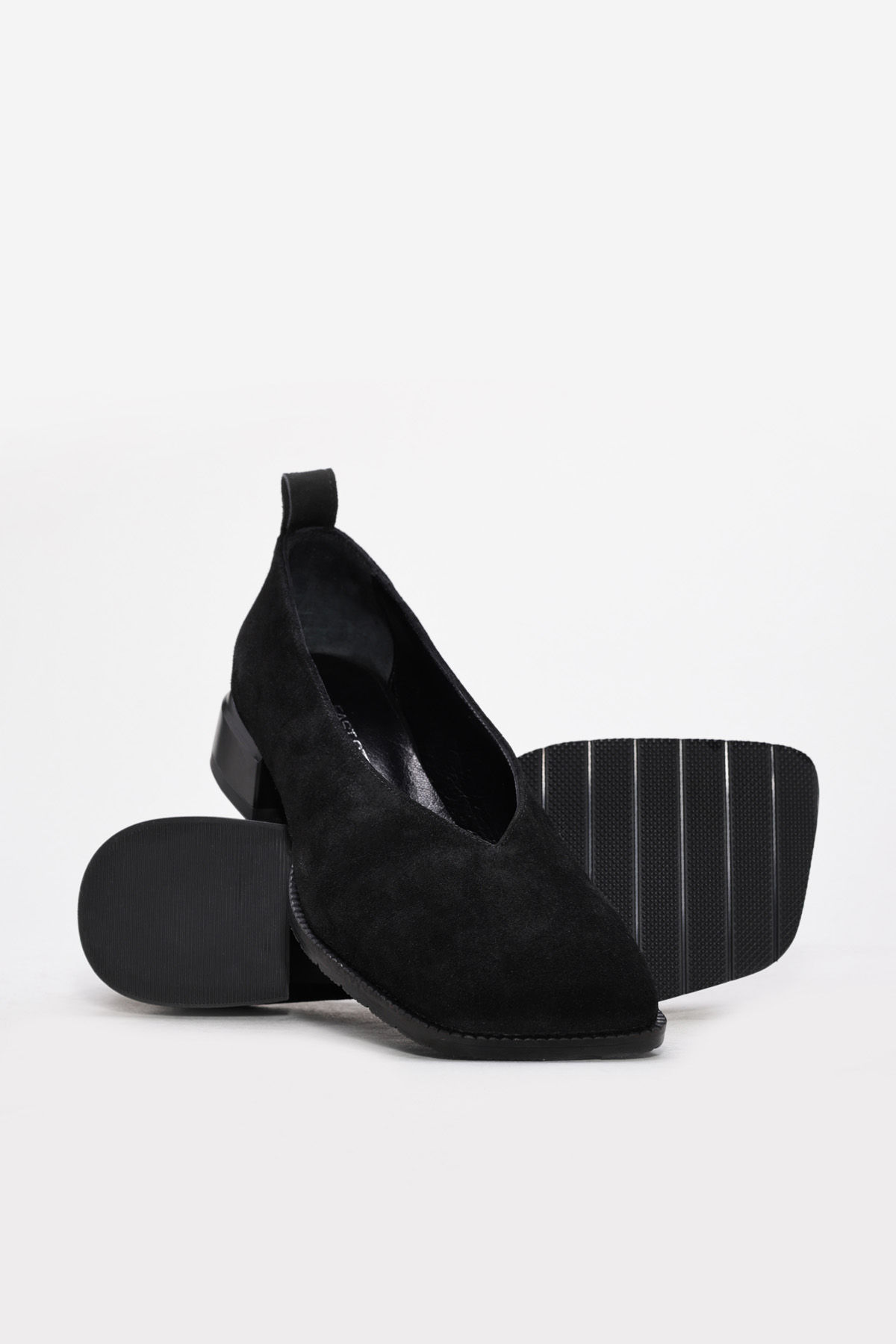Ayakkabıhane İçi Dışı Hakiki Süet Deri Siyah Kadın Kısa Topuklu Ayakkabı AH0801026181005