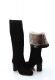 Ayakkabıhane İçi Kürklü Dışı Hakiki Süet Deri Siyah Kadın Topuklu Çizme AH08064192611104