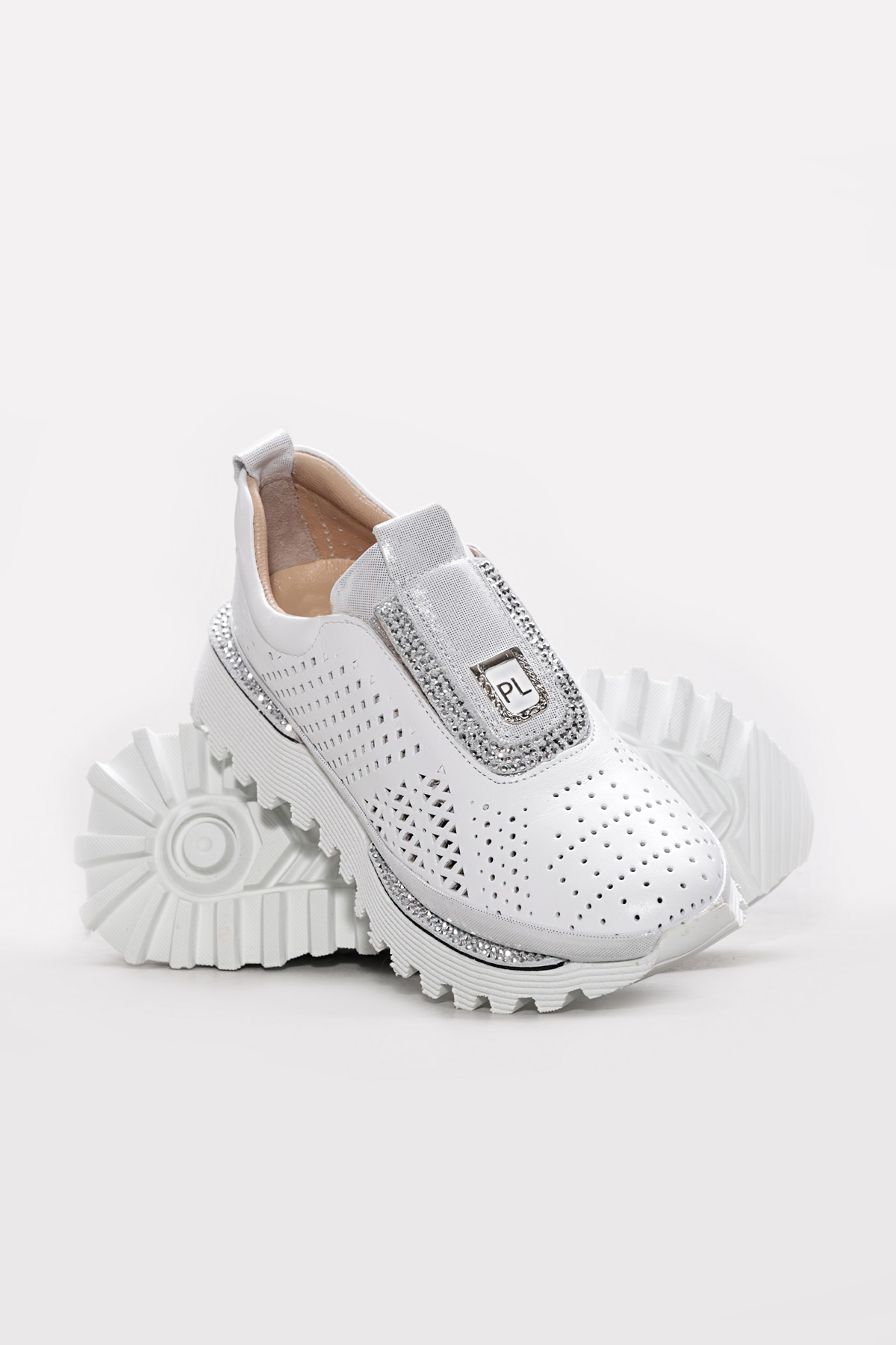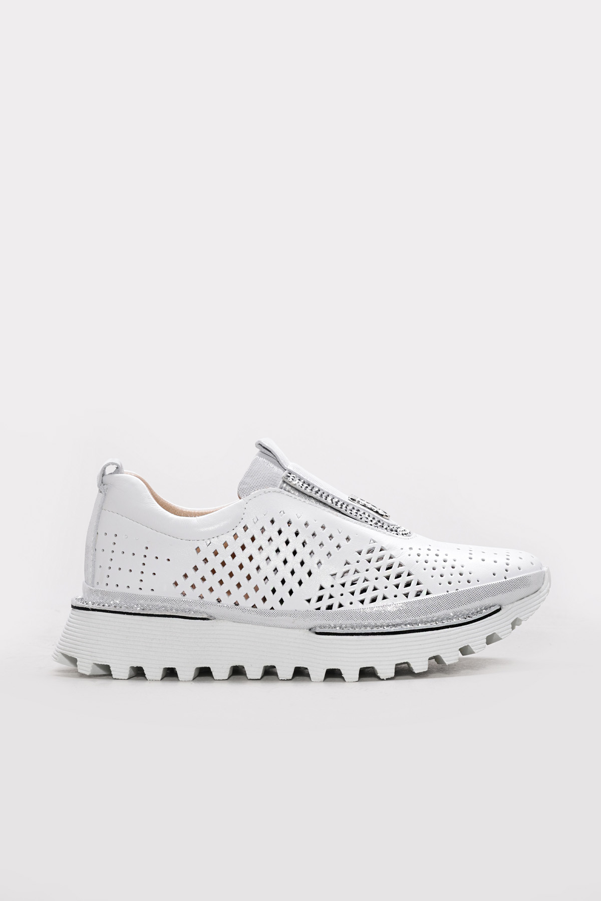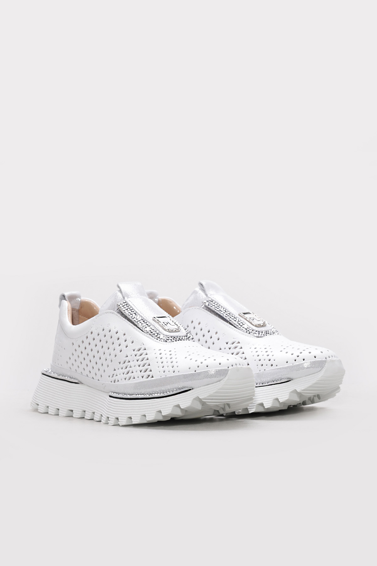 • Ayakkabıhane Kaliteli Hakiki Deri Beyaz Gümüş Kadın Spor Sneaker Ayakkabı AH08254261980