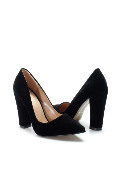 • Ayakkabıhane Siyah Süet Kadın Kalın Topuklu Ayakkabı Vinleks AH610ZA1801