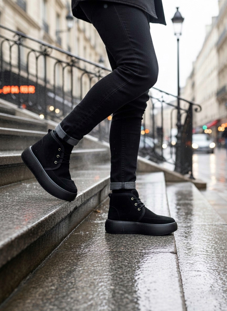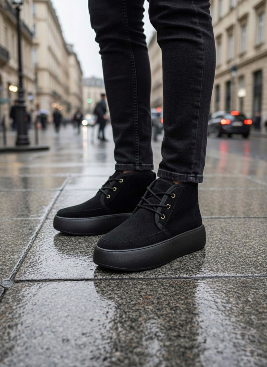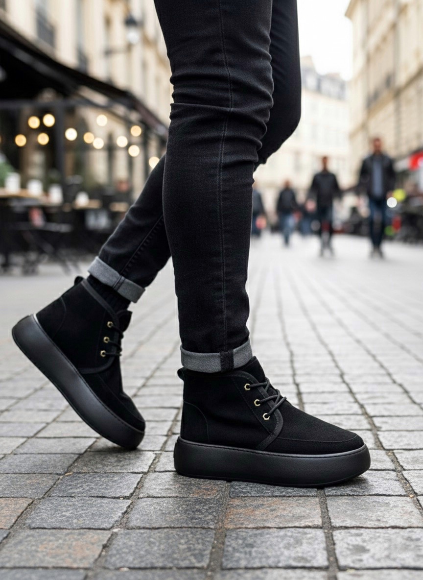 • AHN0550 İçi Kürklü Bağcıklı Siyah Taban Erkek Tarz Spor Bot