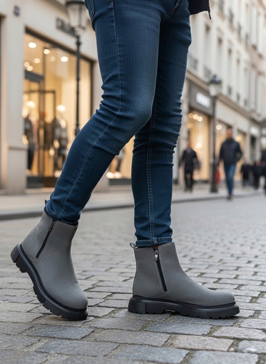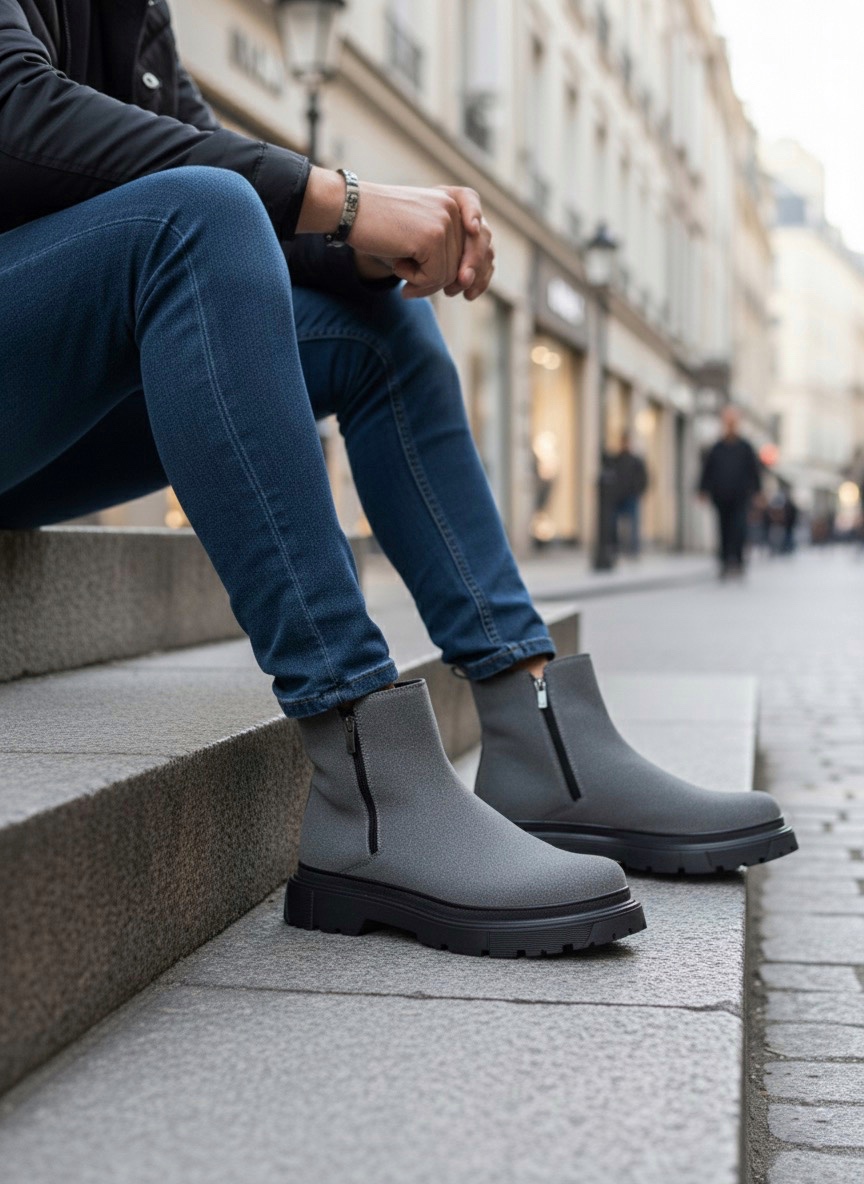 • AHN0777 Süet Füme Çift Fermuarlı Erkek Yarım Bilek Bot