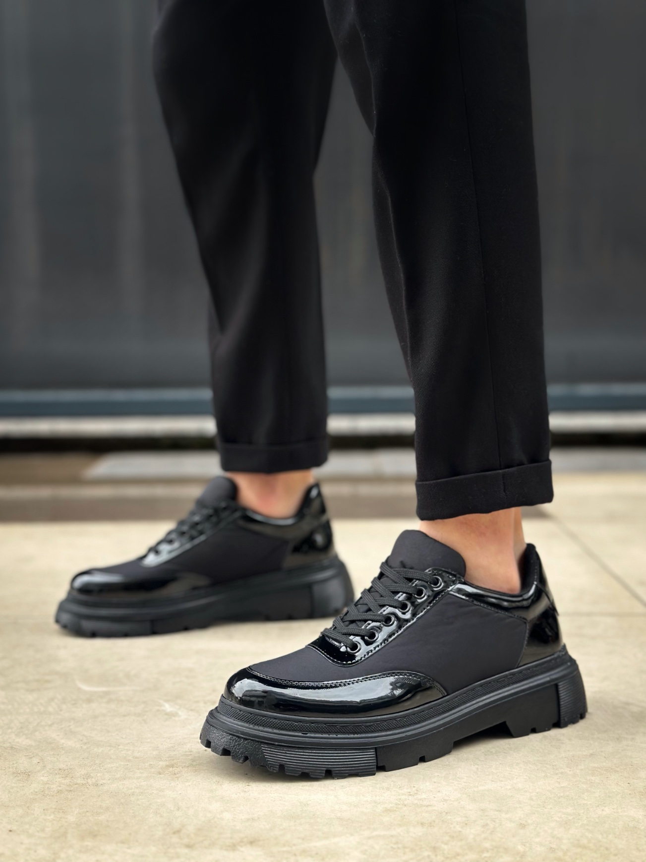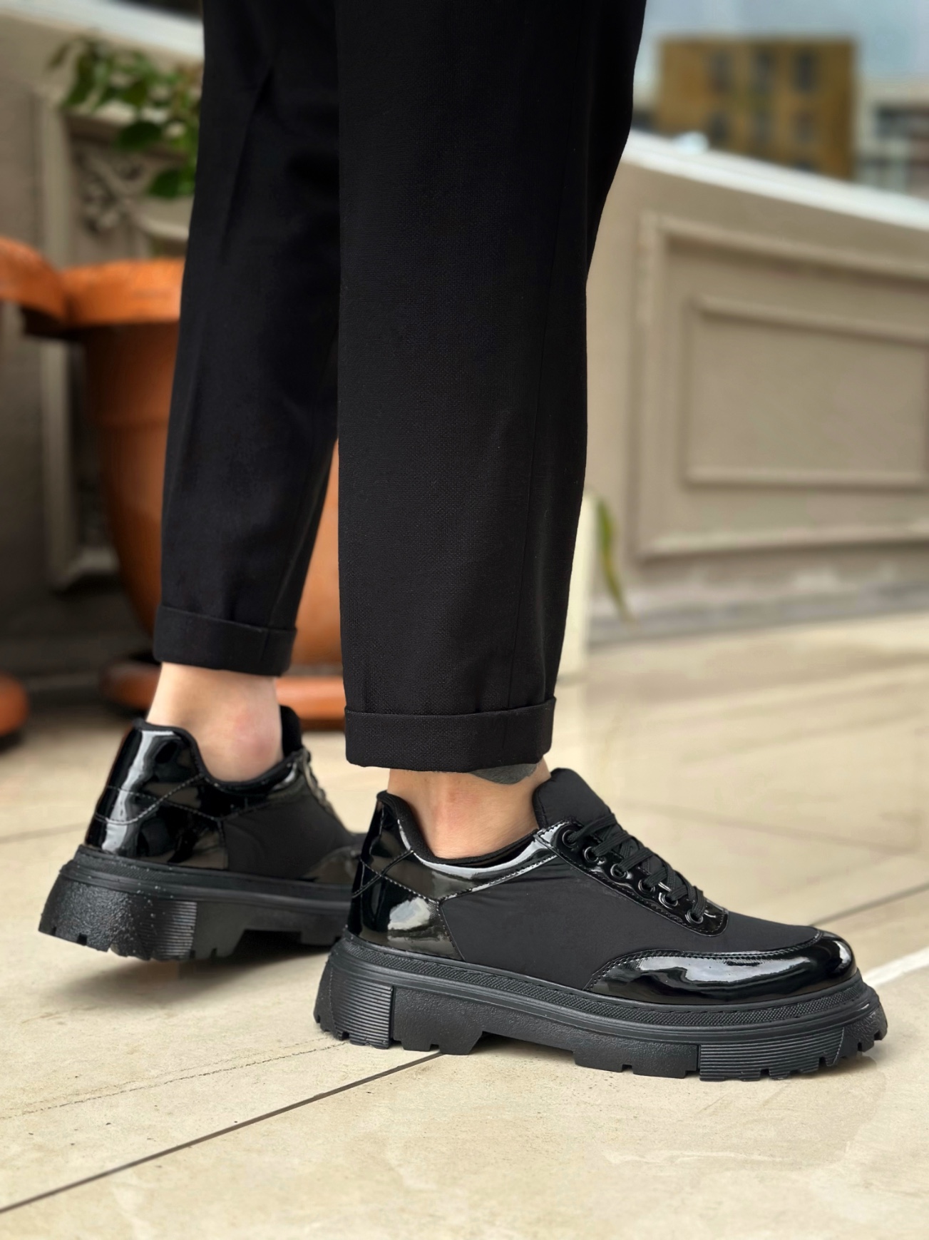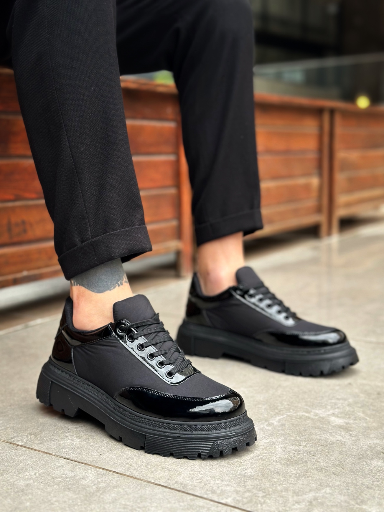 AHN0243 Bağcıklı Rugan Paraşüt Detaylı Yüksek Siyah Taban Erkek Ayakkabı