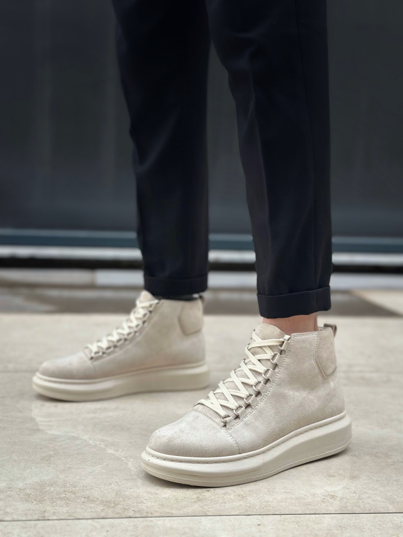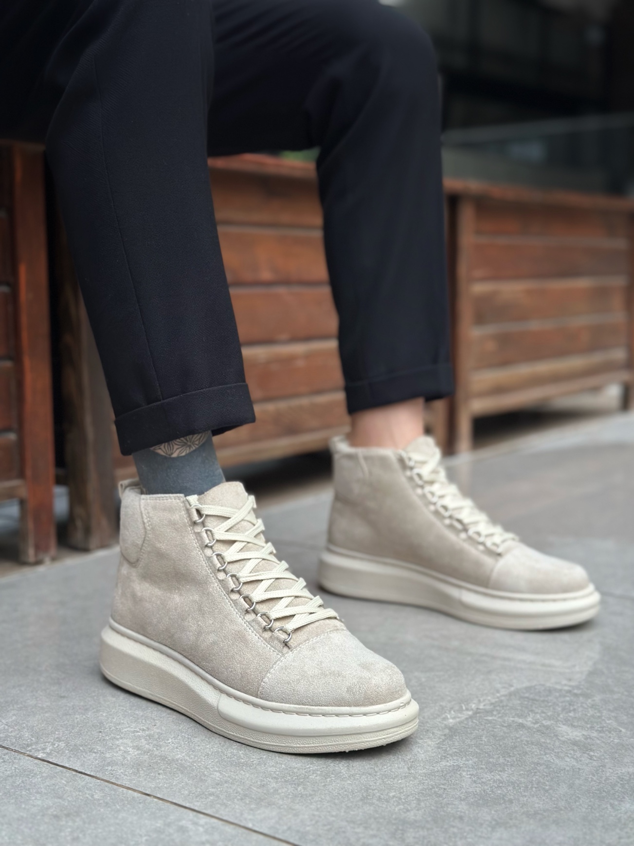 AHN0713 Bağcıklı Süet Bej Yüksek Taban Erkek Tarz Spor Bot