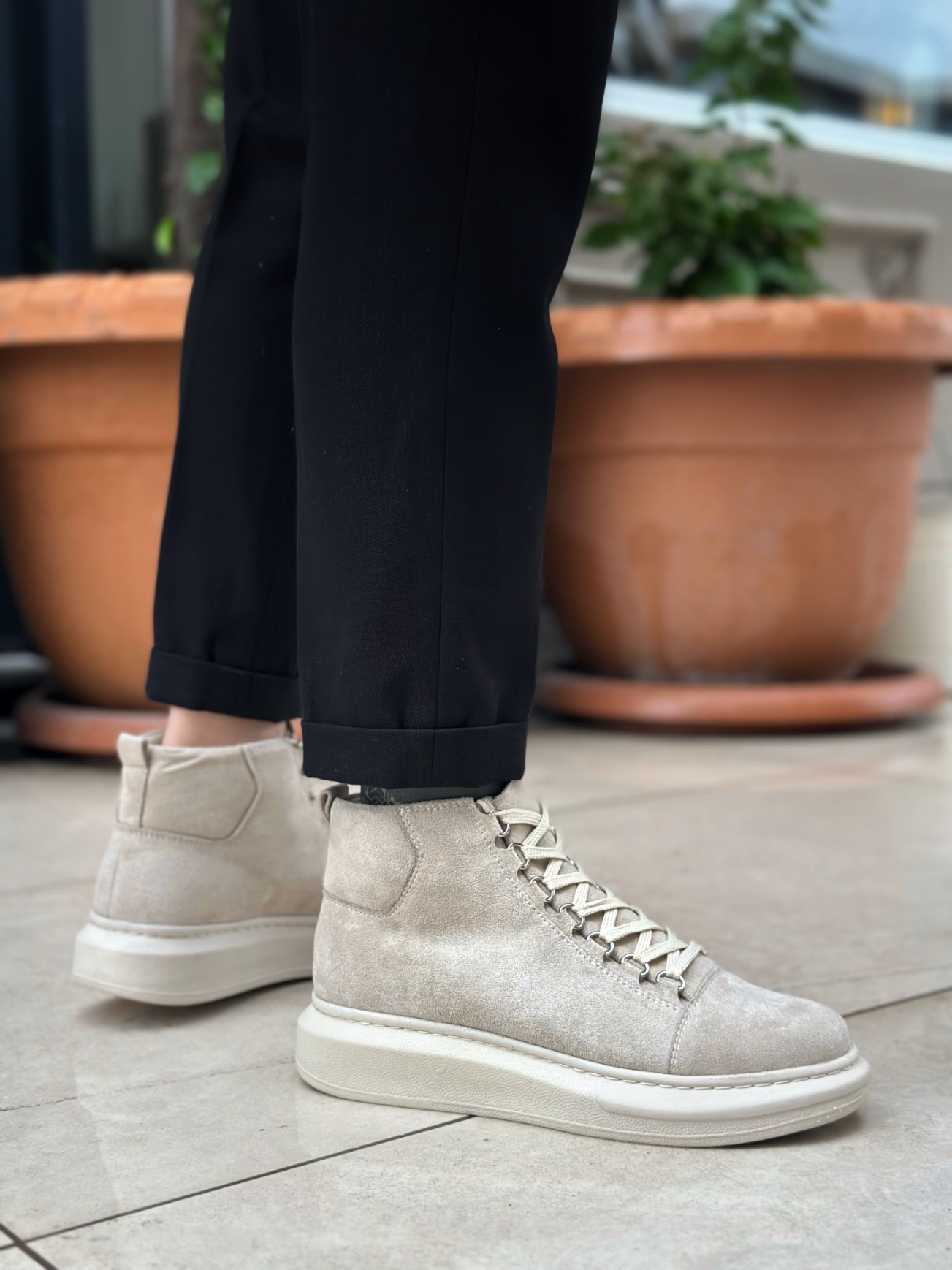 • AHN0713 Bağcıklı Süet Bej Yüksek Taban Erkek Tarz Spor Bot