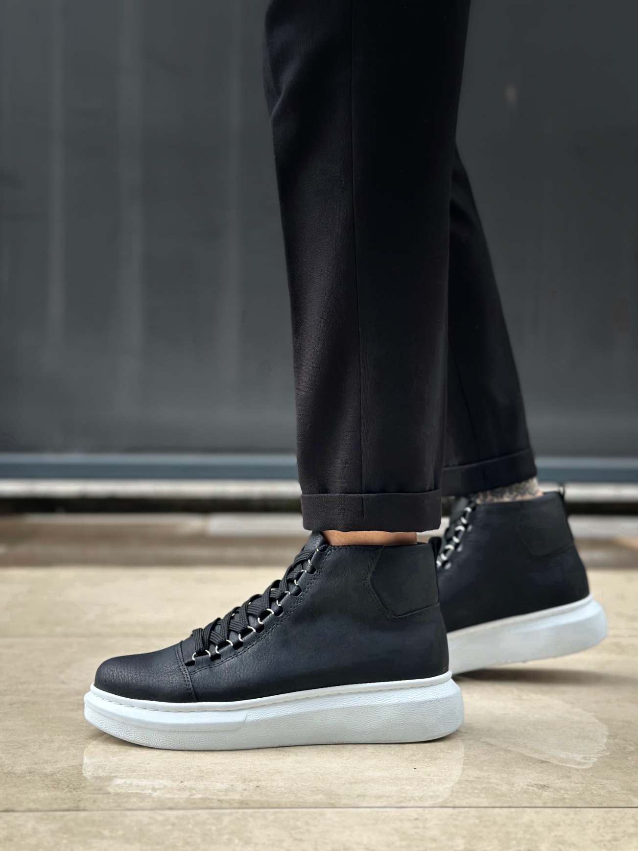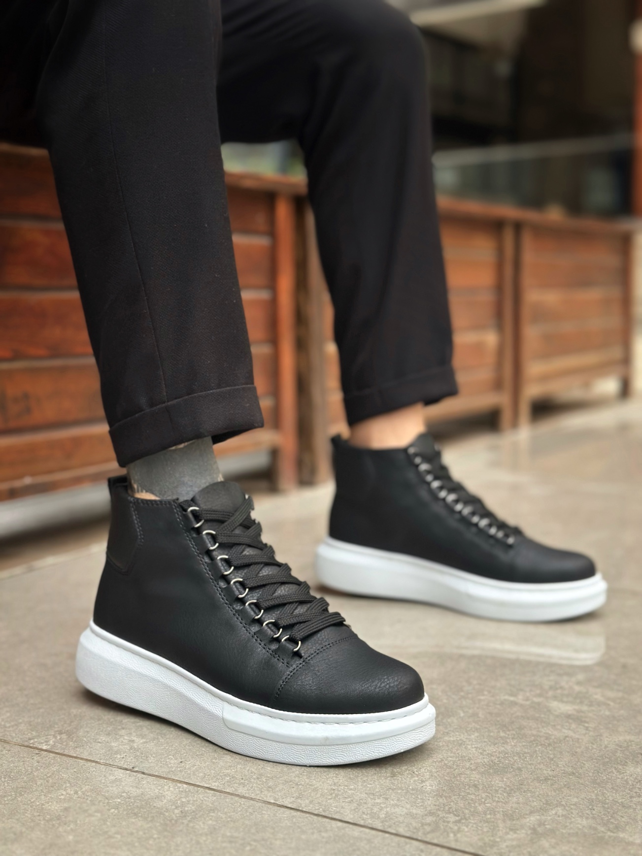 • AHN0713 Bağcıklı Yüksek Siyah Beyaz Taban Erkek Tarz Spor Bot
