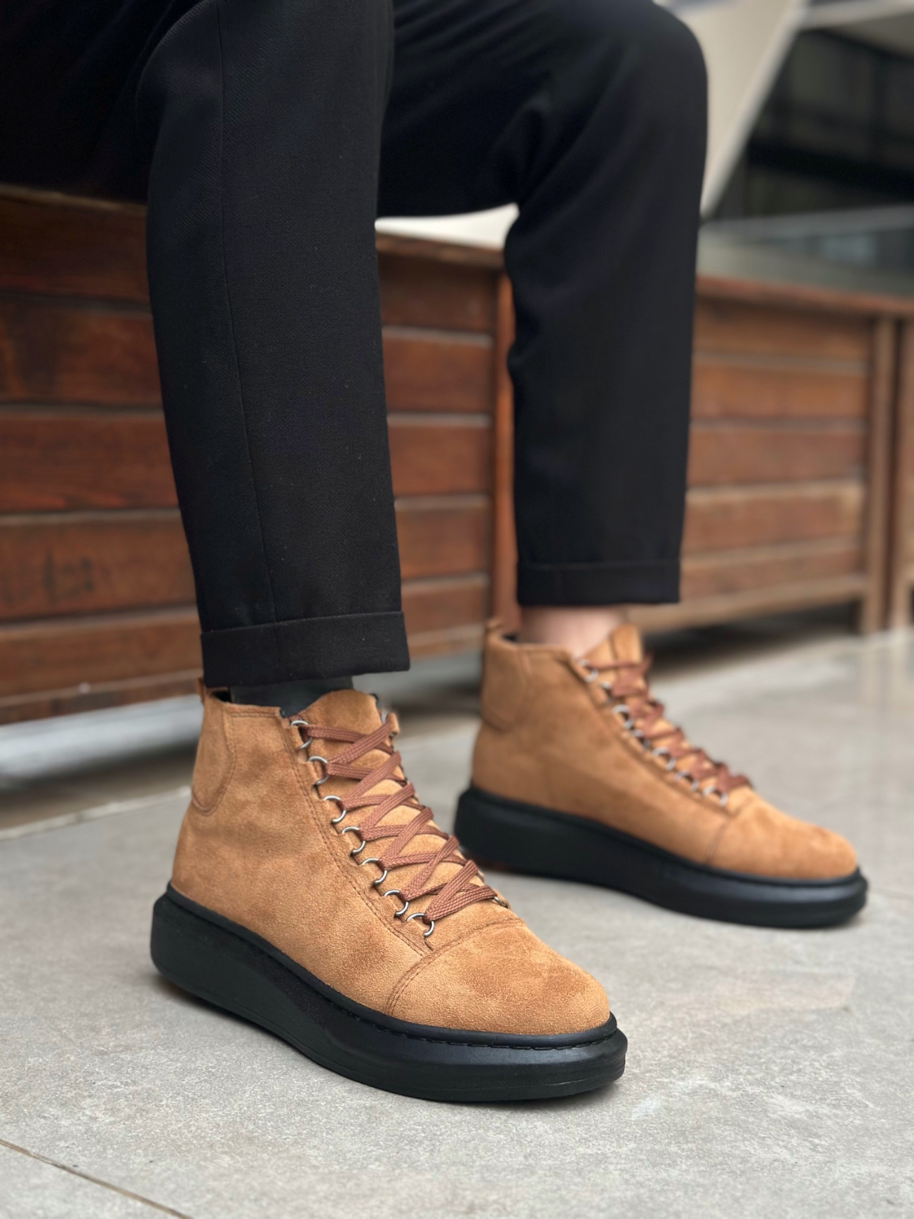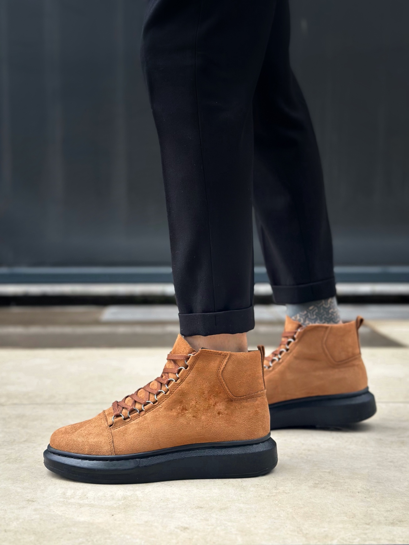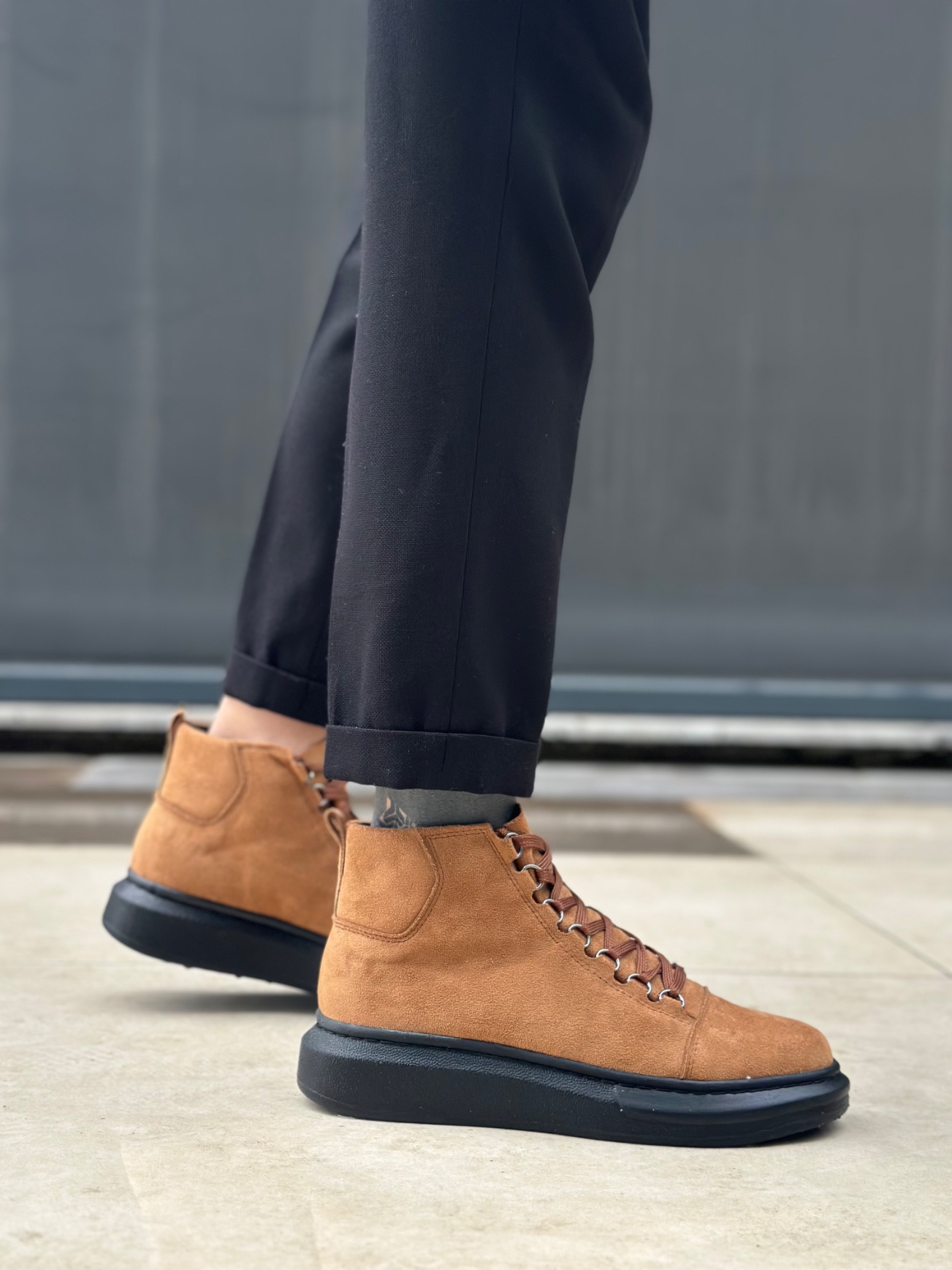 AHN0713 Bağcıklı Yüksek Taba Süet Siyah Taban Erkek Tarz Spor Bot