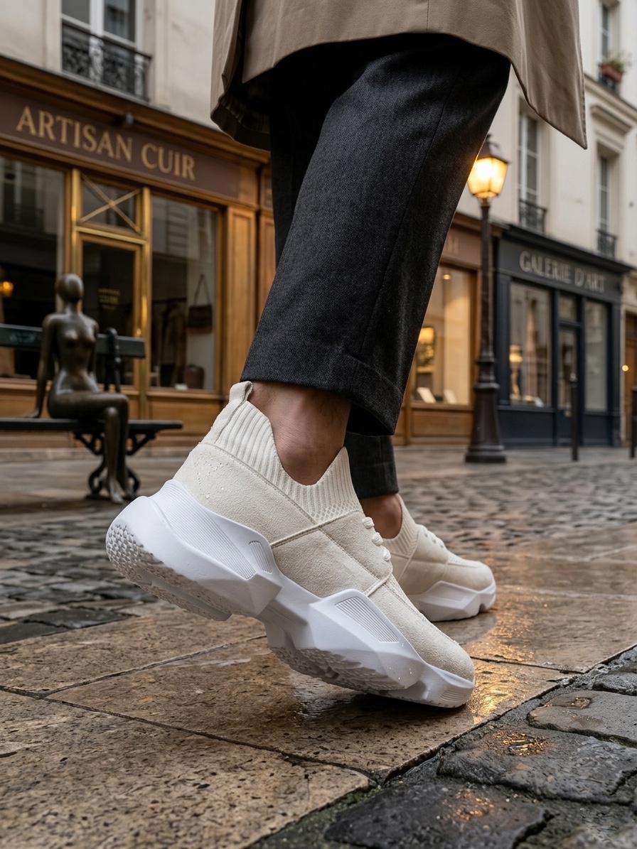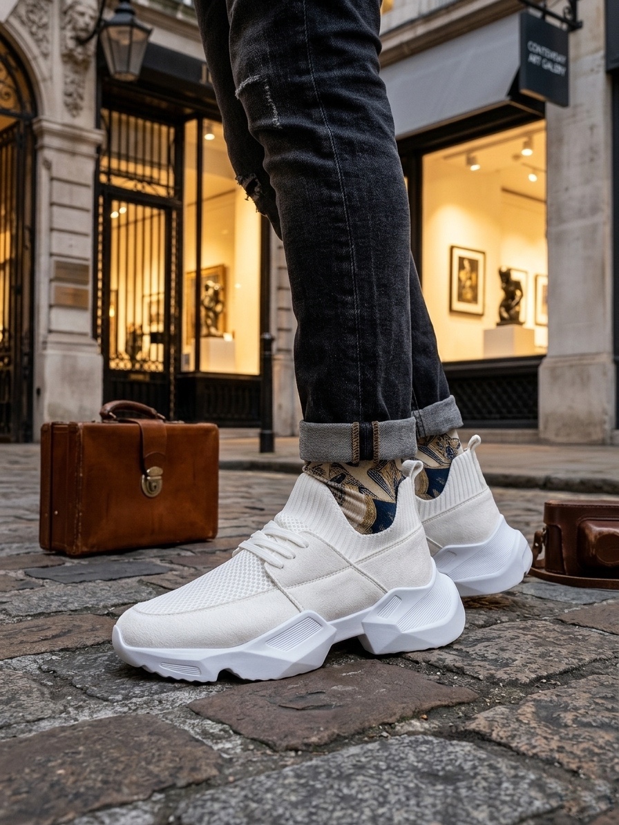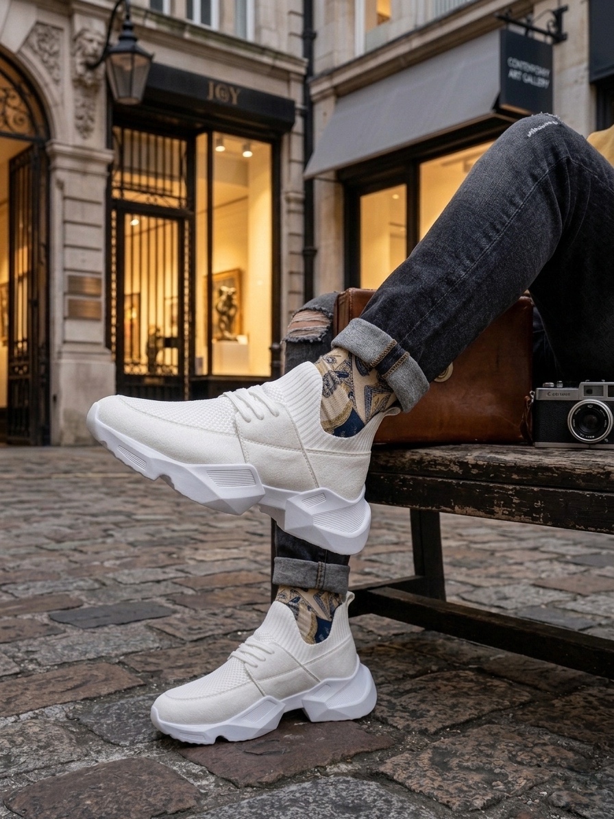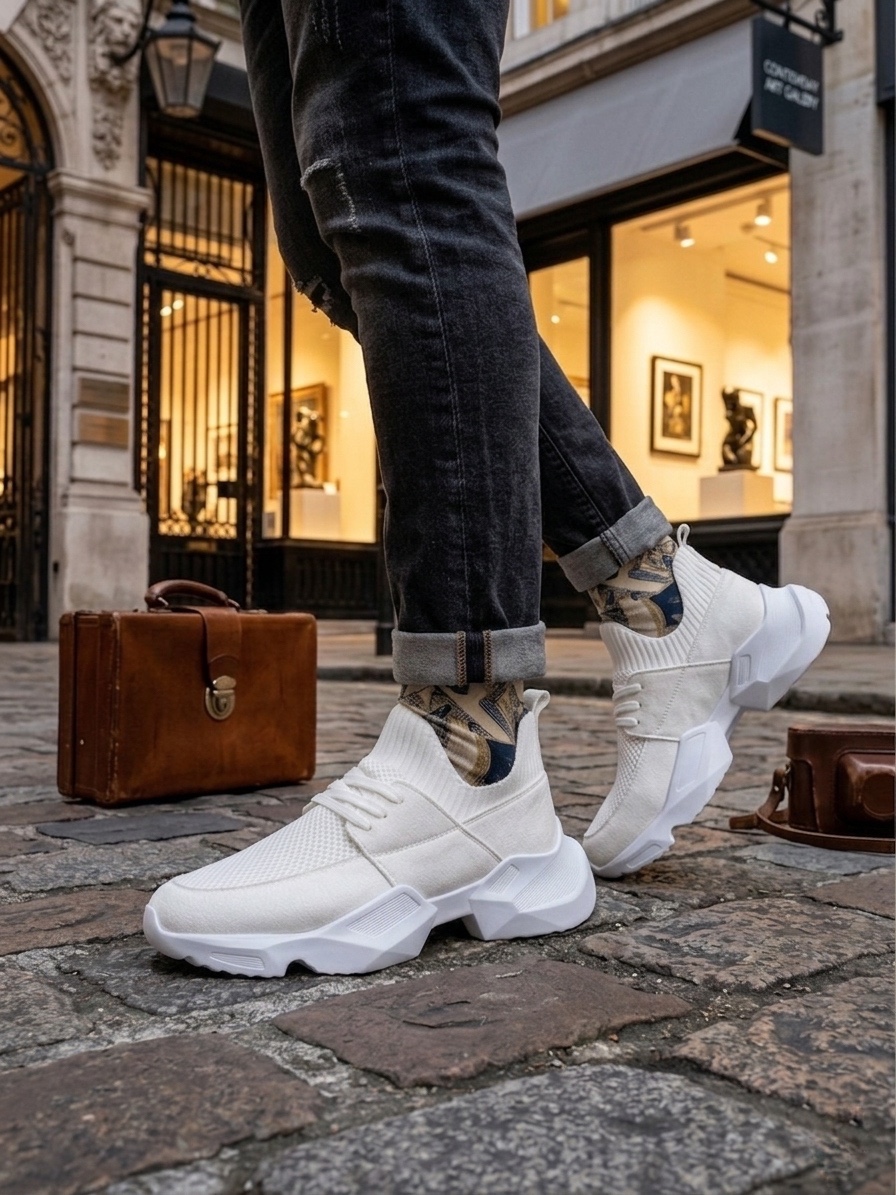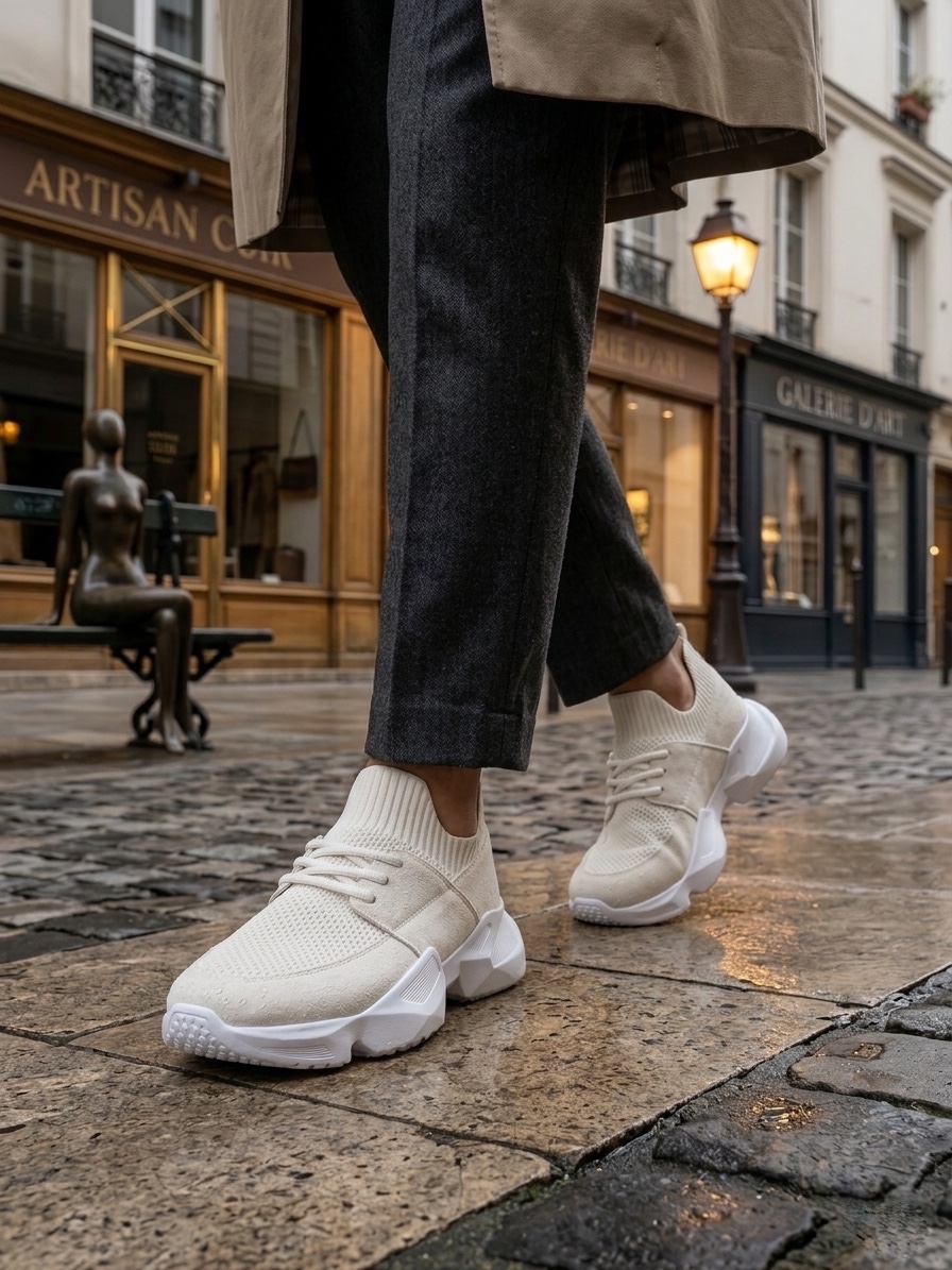 Yüksek Taban 403 Yumuşak Triko Dokulu Yüksek Taban Beyaz Spor Ayakkabı