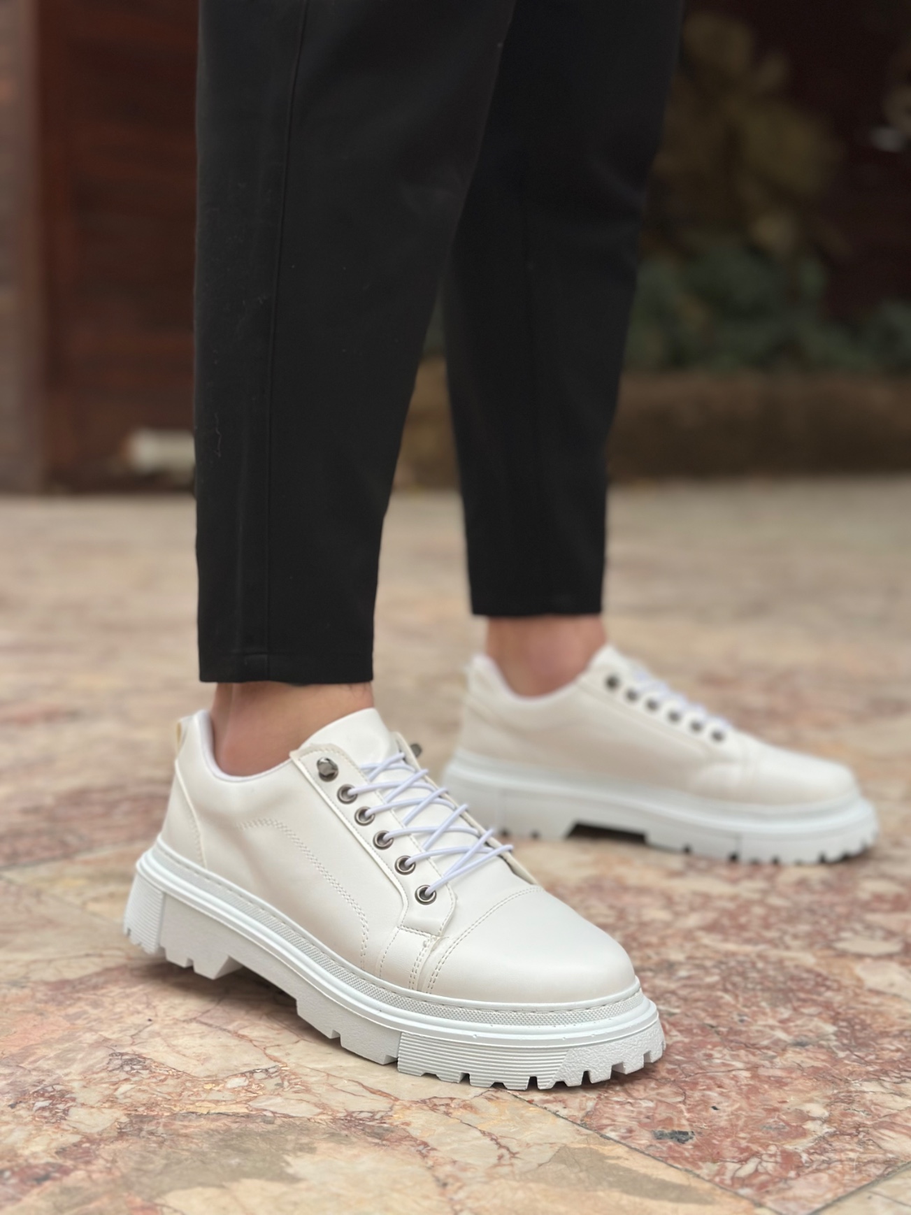 AHN0245 Beyaz Akıllı Lastik Bağcık Yüksek Siyah Taban Günlük Erkek Ayakkabı