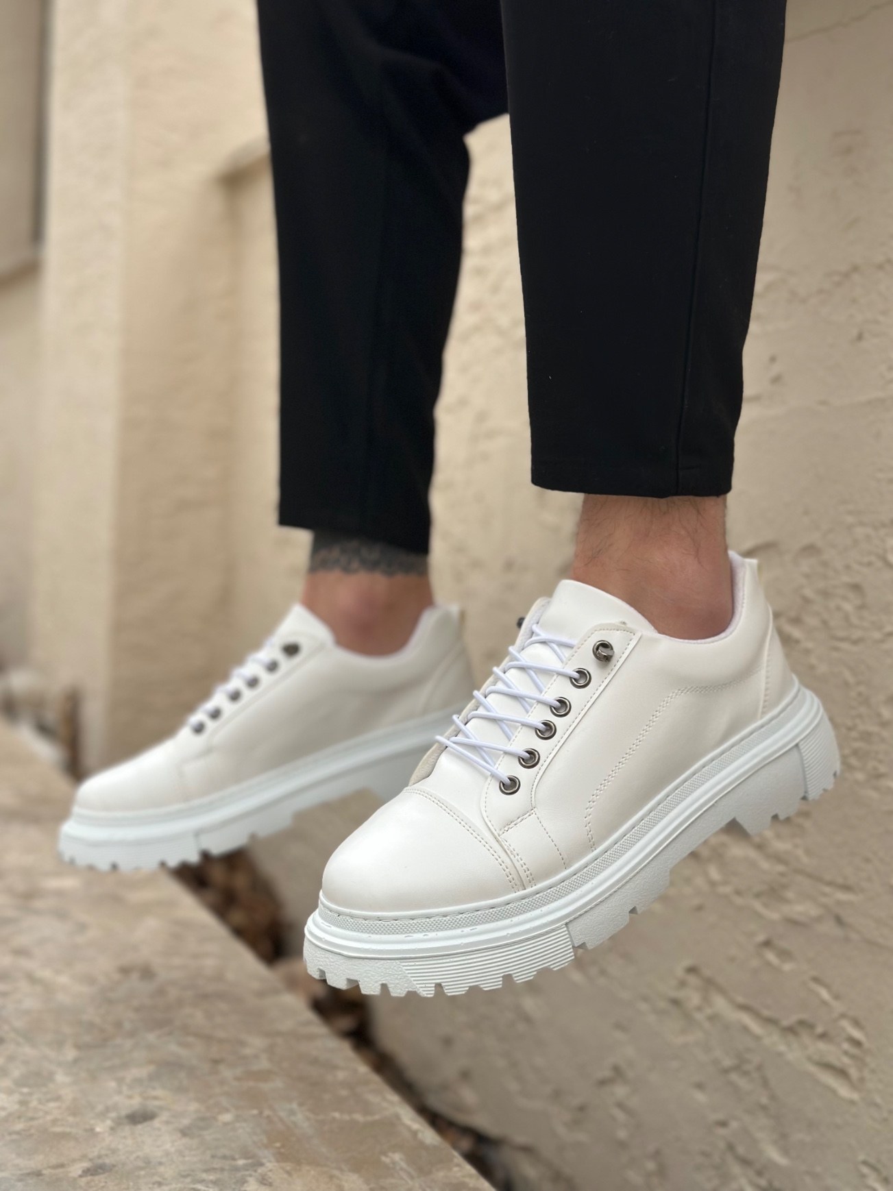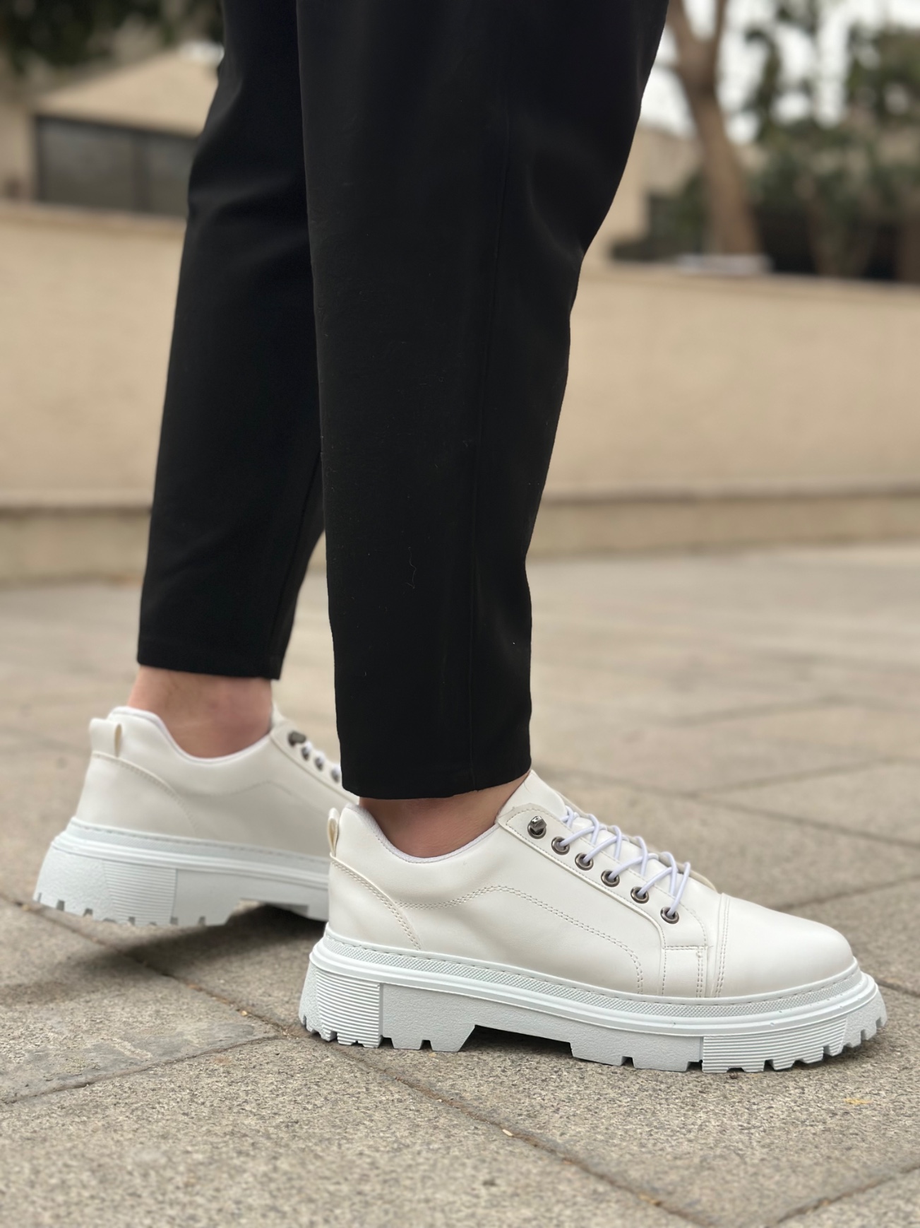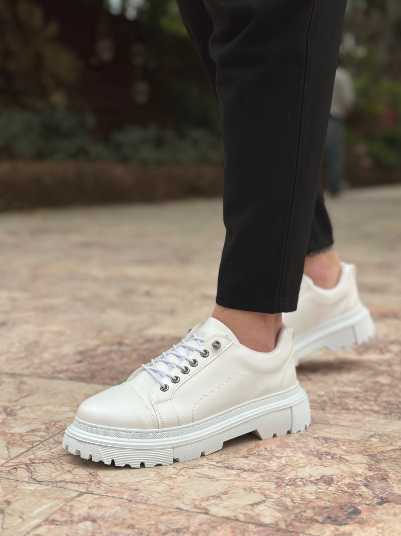 • AHN0245 Beyaz Akıllı Lastik Bağcık Yüksek Siyah Taban Günlük Erkek Ayakkabı