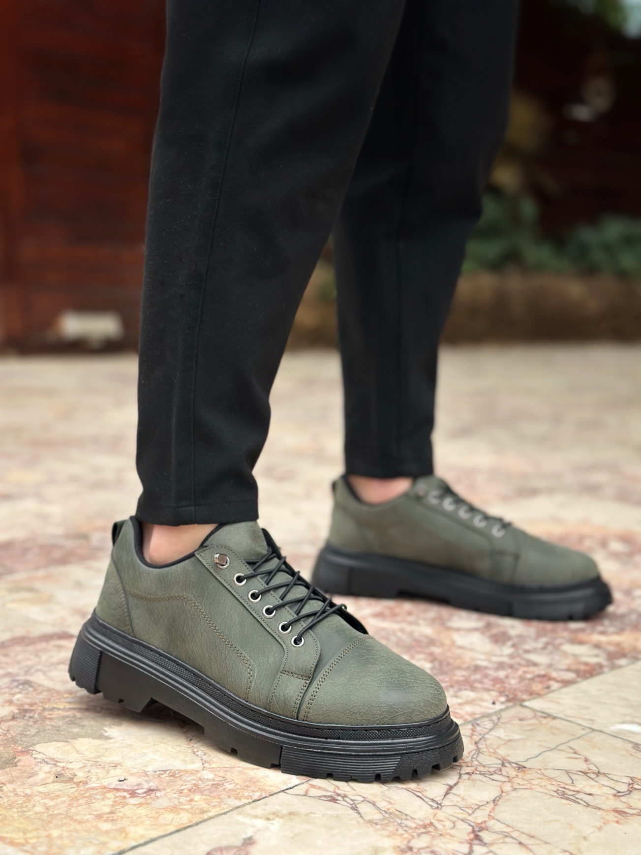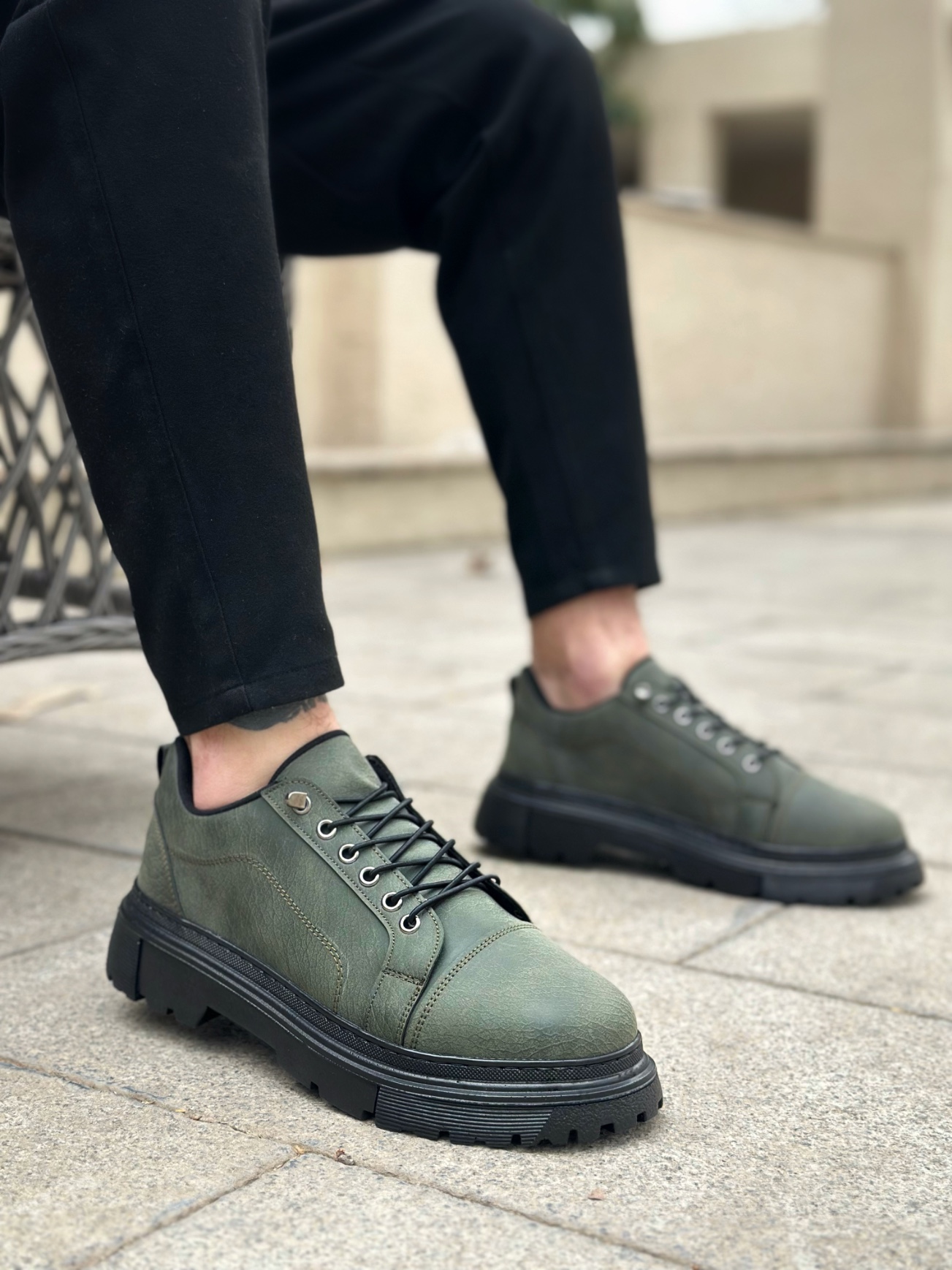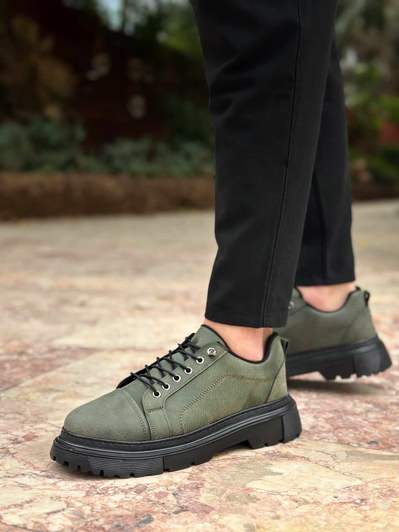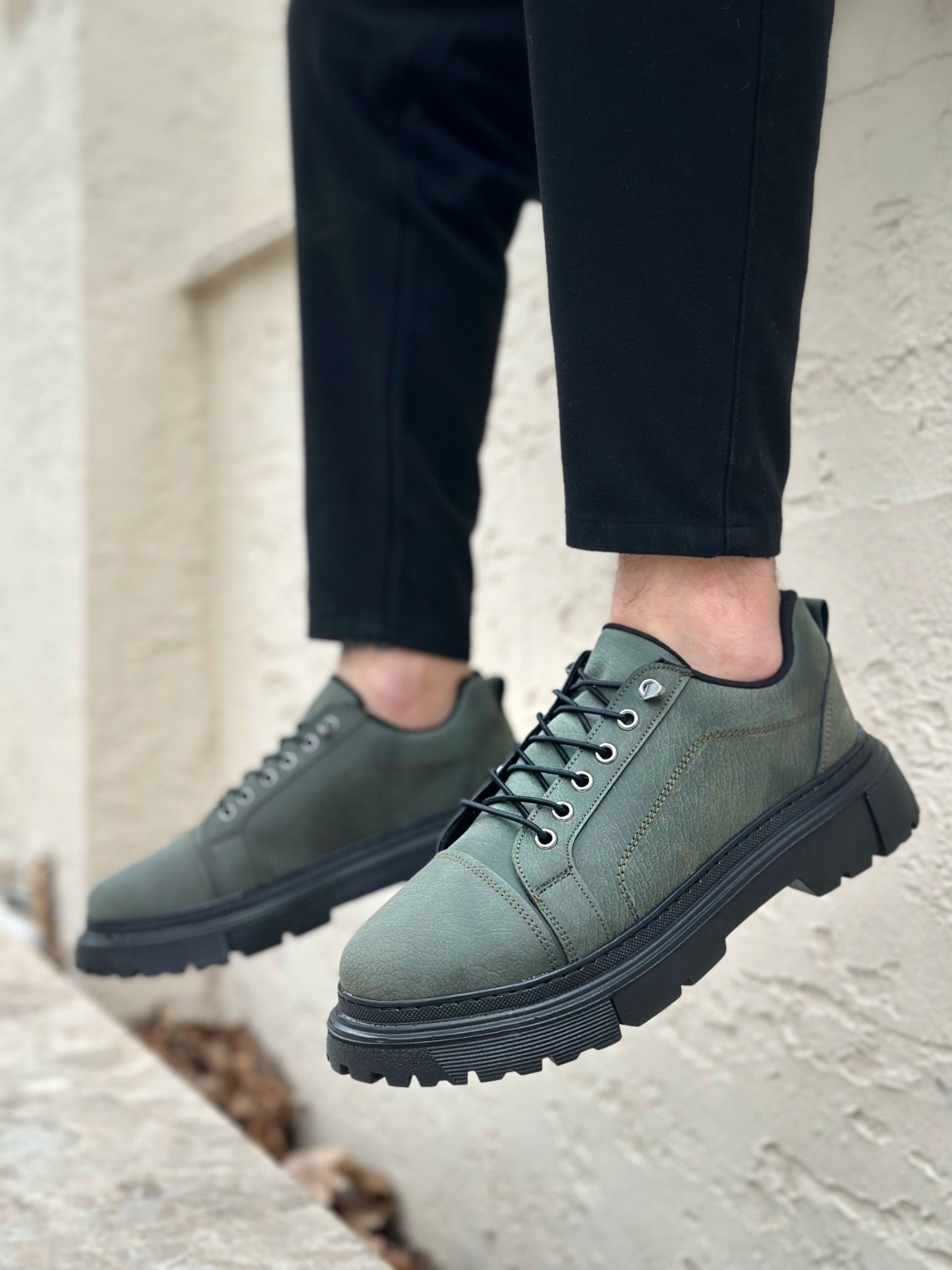 • AHN0245 Haki Akıllı Lastik Bağcık Yüksek Taban Günlük Erkek Ayakkabı