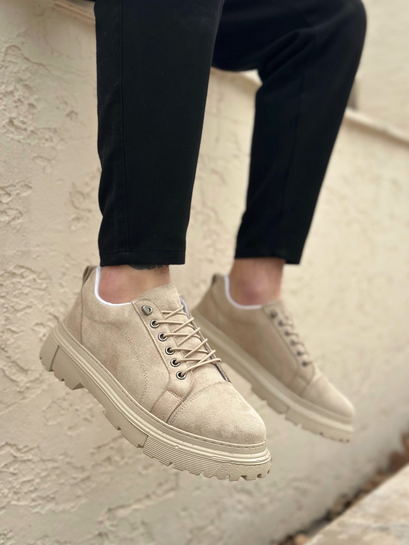 • AHN0245 Krem Süet Akıllı Lastik Bağcık Yüksek Taban Günlük Erkek Ayakkabı