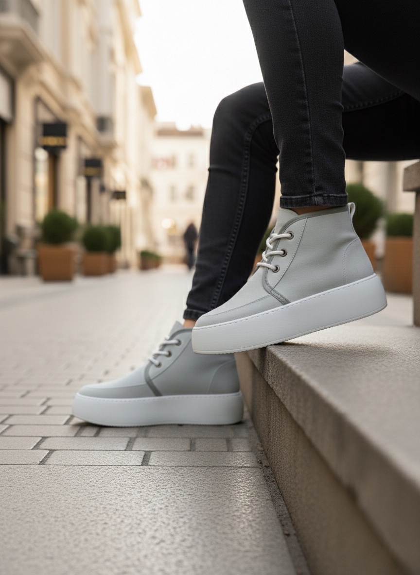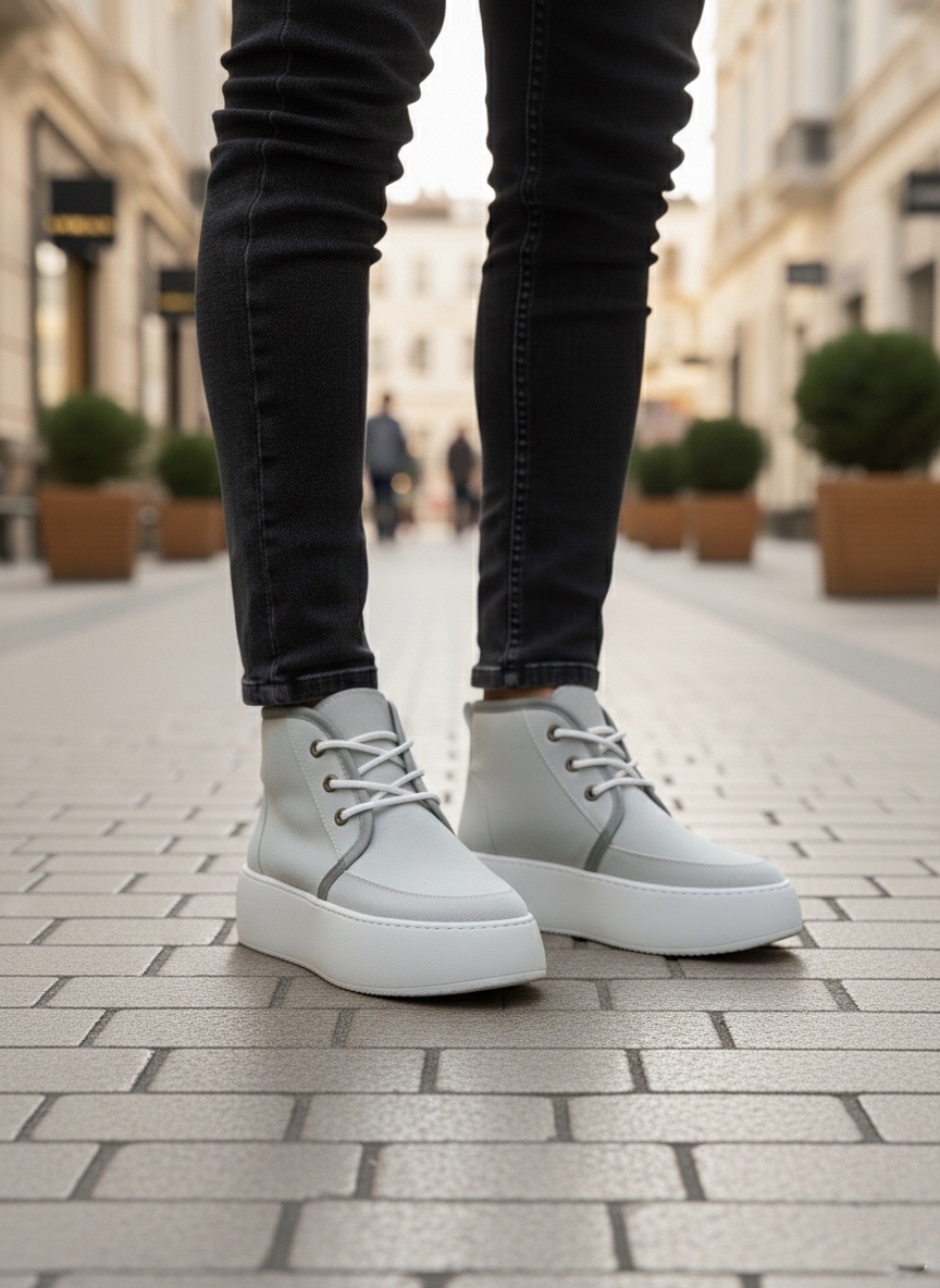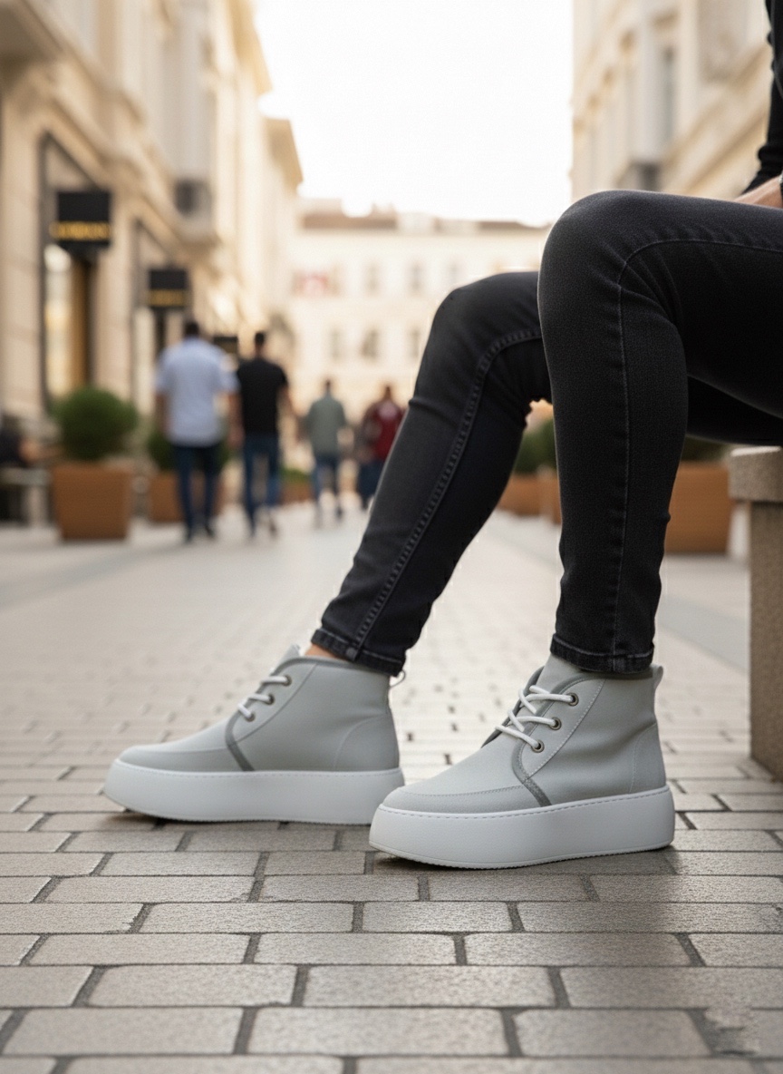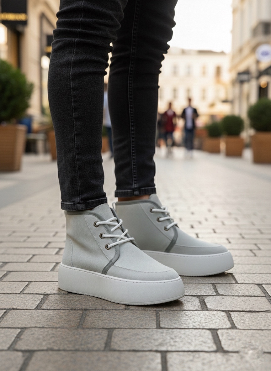 • AHN0550 İçi Kürklü Bağcıklı Gri Erkek Tarz Spor Bot