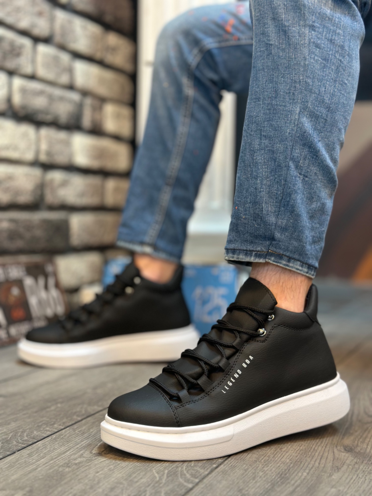 • AHN0312 Bağcıklı Yüksek Siyah Beyaz Taban Erkek Tarz Spor Bot