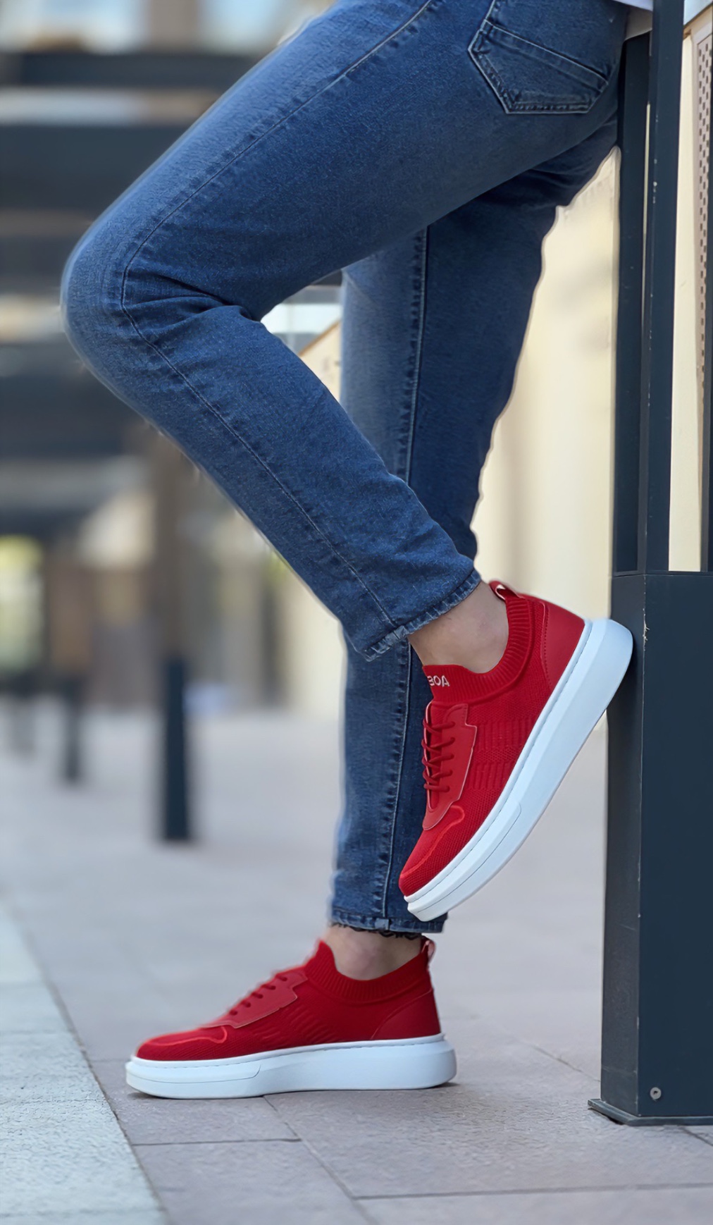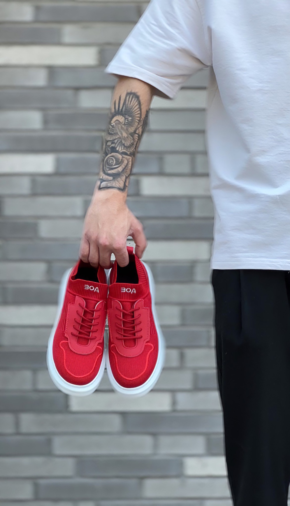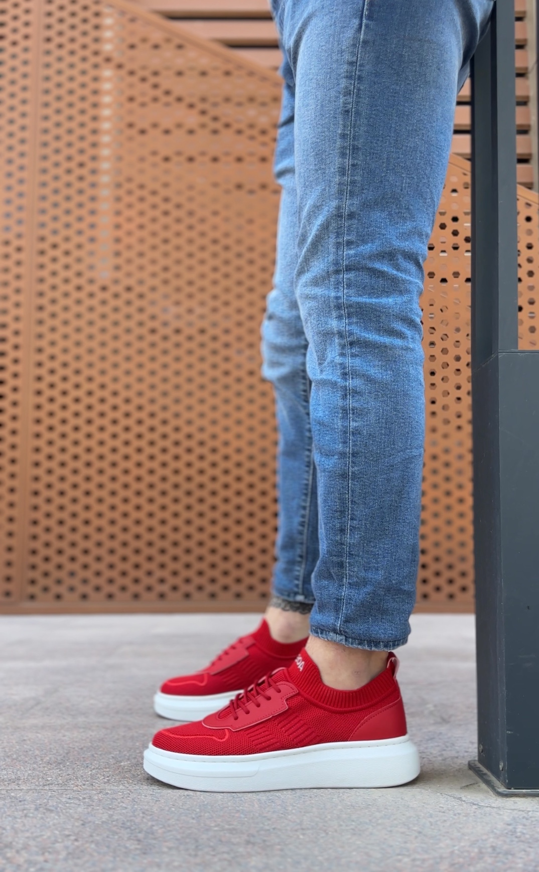 Tarz Erkek Ayakkabı Erkek Spor AHN0812 Özel Örme Triko Tarz Kırmızı Beyaz Renk Spor Ayakkabı
