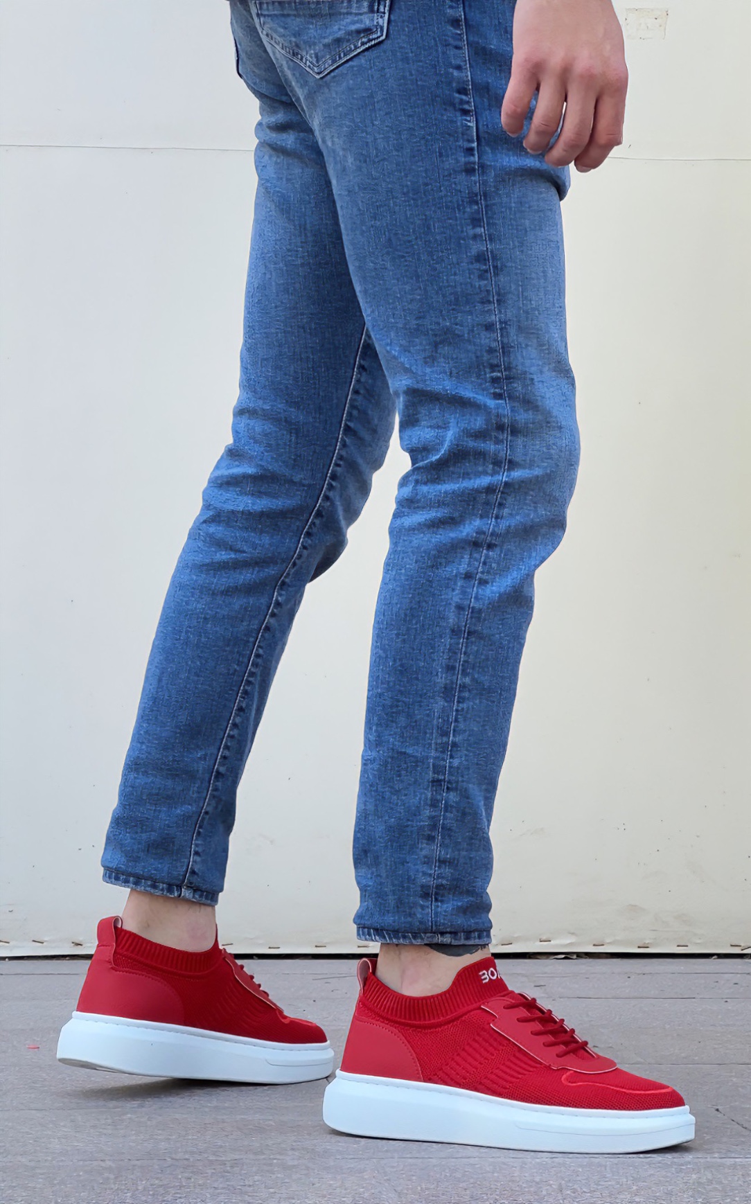 • AHN0812 Özel Örme Triko Tarz Kırmızı Beyaz Renk Spor Ayakkabı